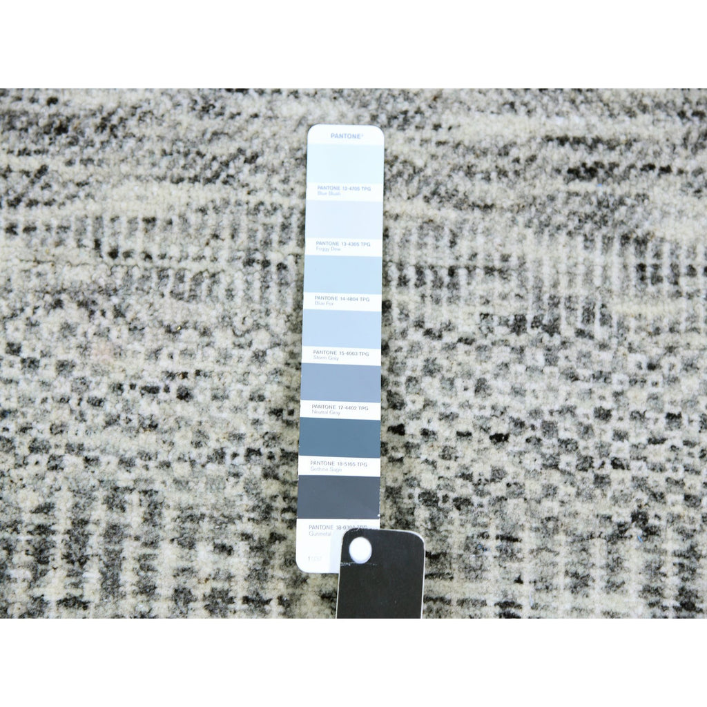 4'x6'4" Platinum Gray, Pure Undyed Wool, Hand Knotted, Tone On Tone, Modern Grass Design, Oriental RugFWR477138
