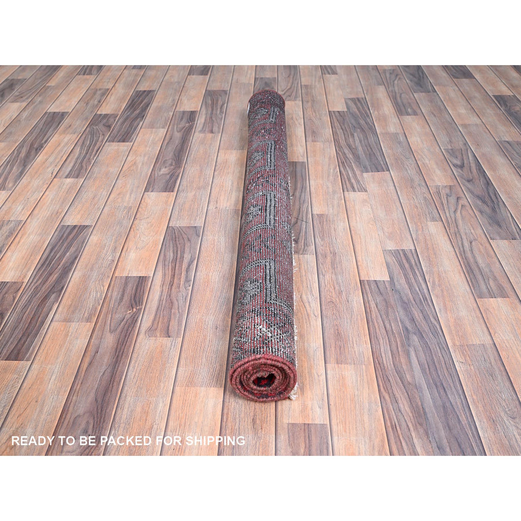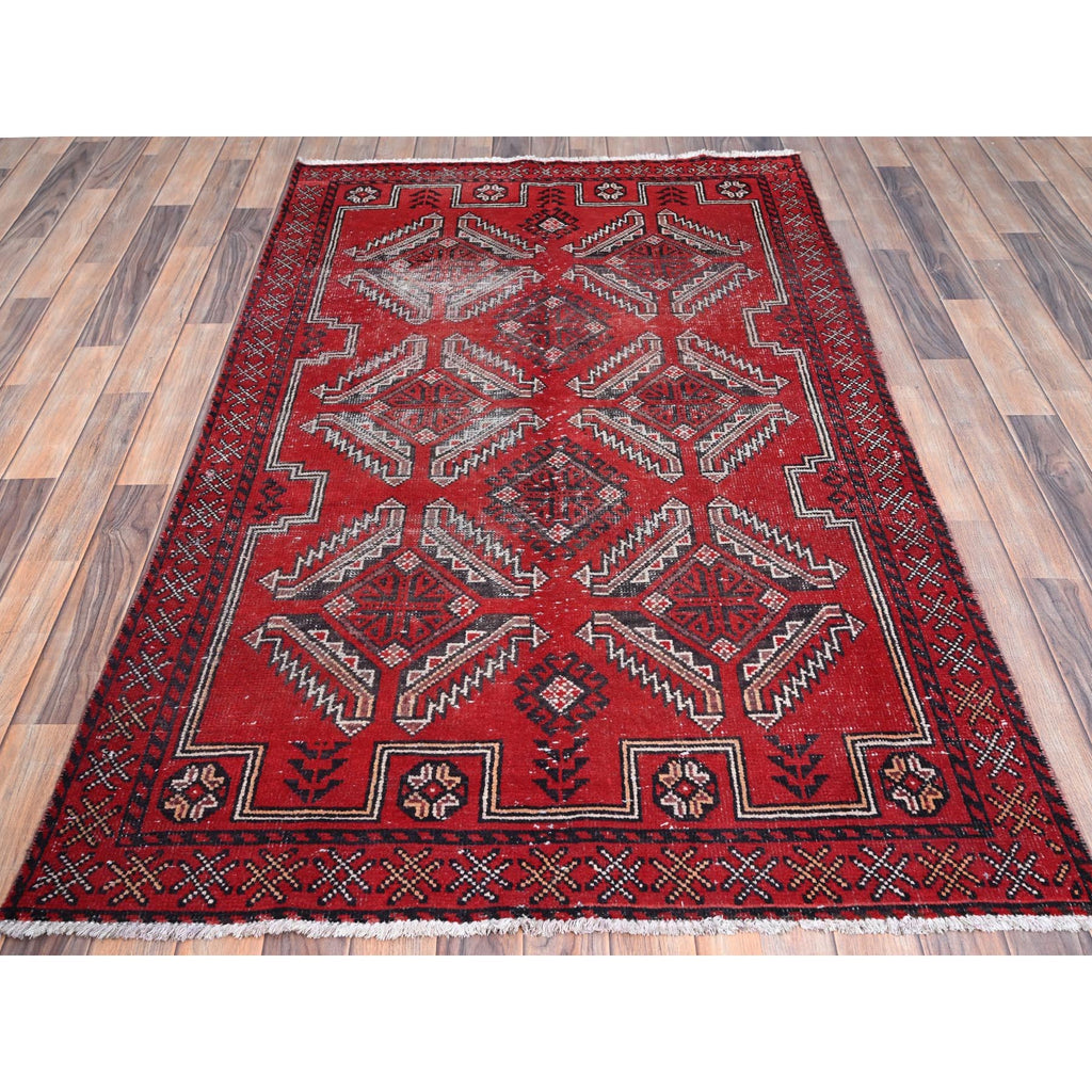 4'x6'5" Tomato Red, Hand Knotted 100% Wool Vintage Persian Baluch, Abrash, Evenly Worn Sheared Low, Distressed And Sides And Ends Secured, Professionally Cleaned, Cropped Thin, Oriental Rug FWR516408