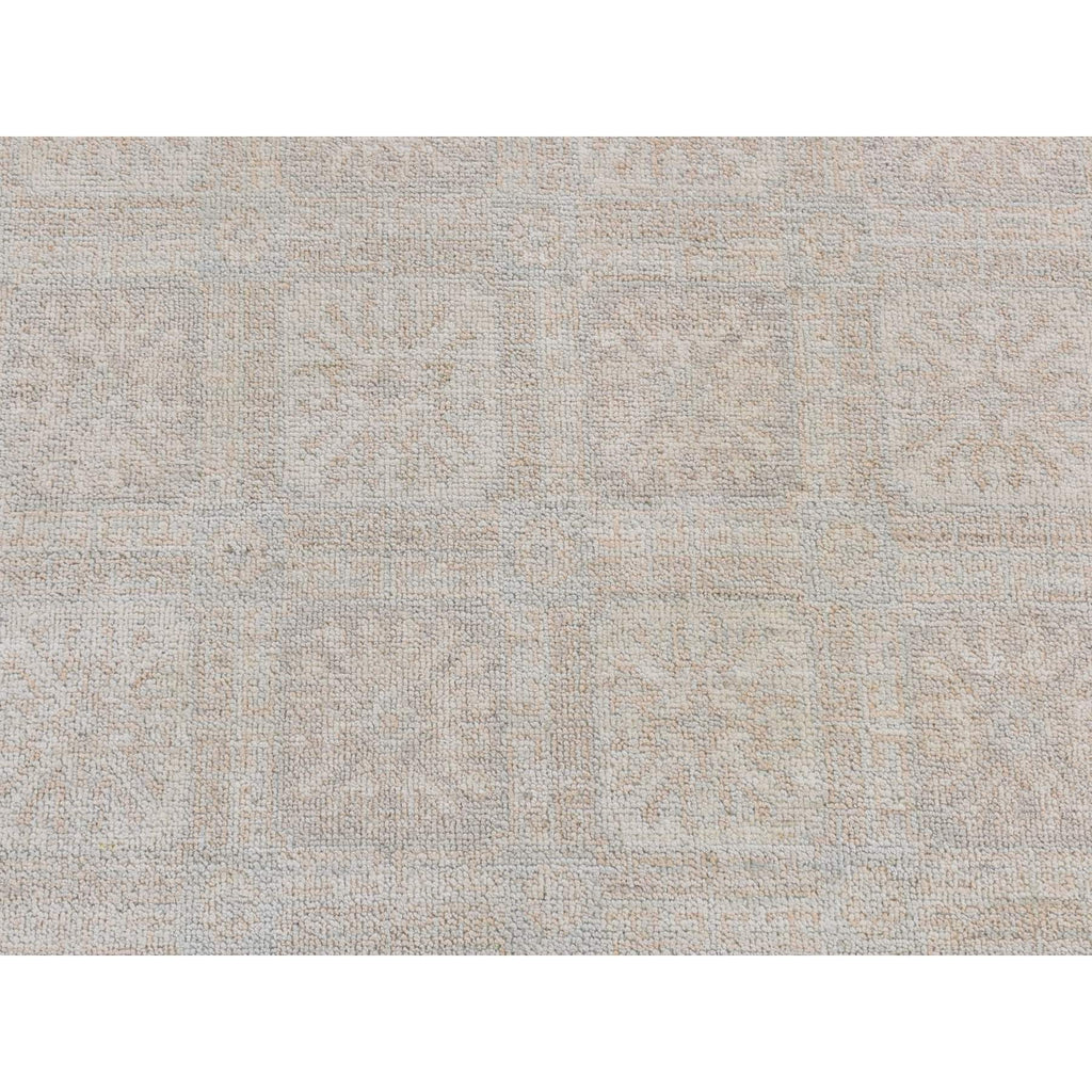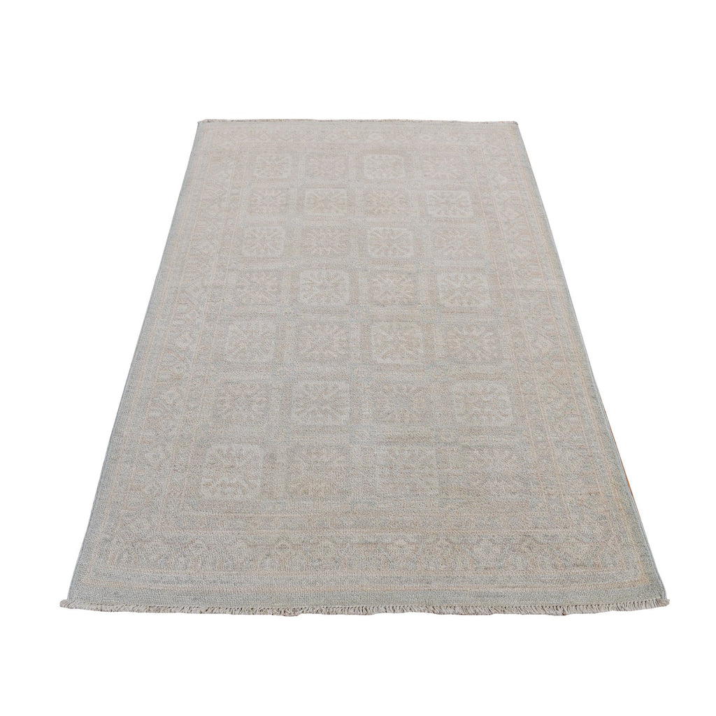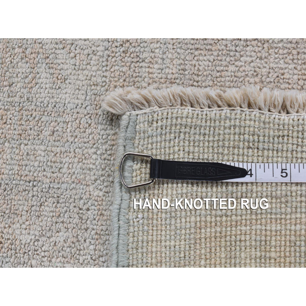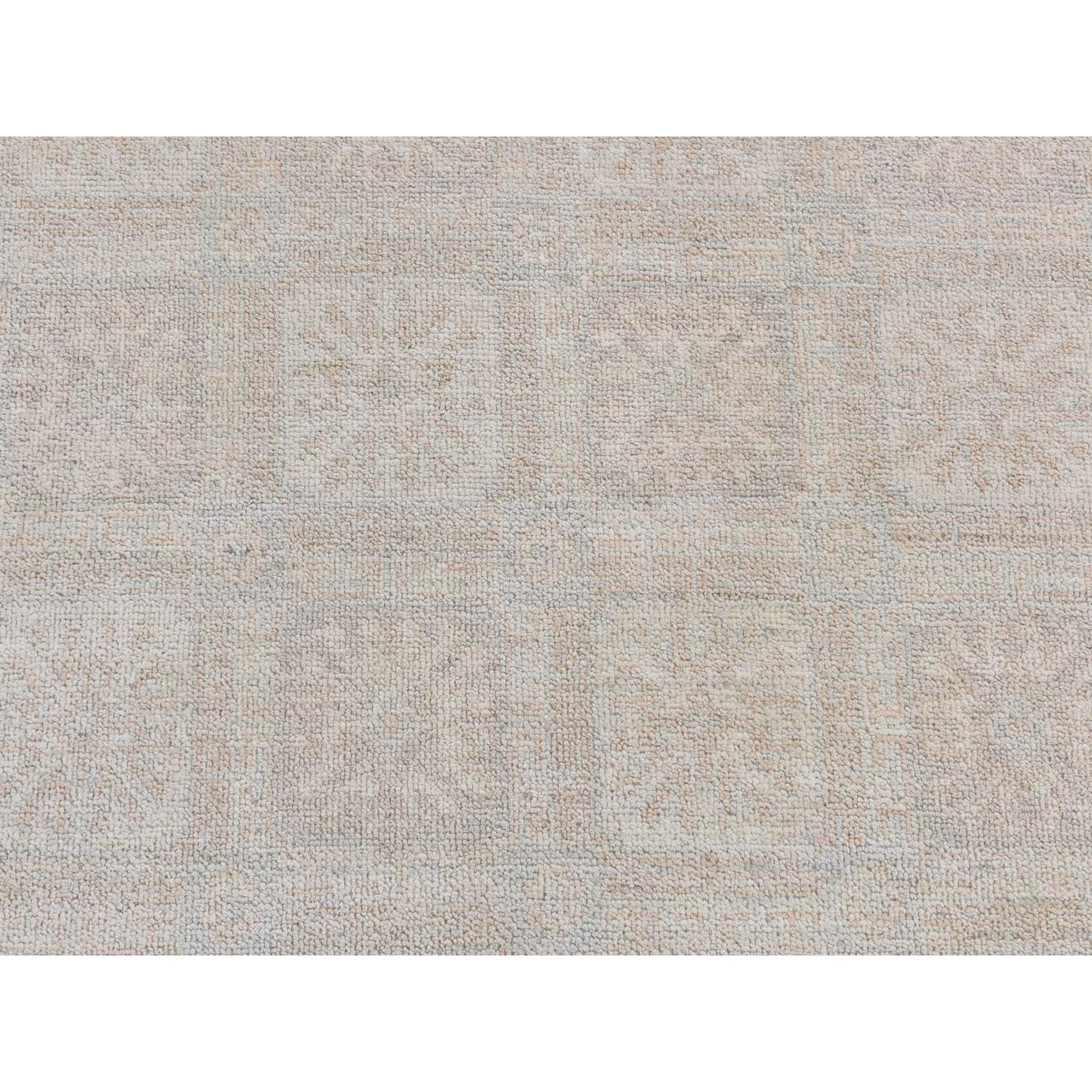 4'x6' Cream Color, Hand Knotted, Washed Out Khotan, Block Rosette Design, Pure Wool, Oriental Rug FWR525696