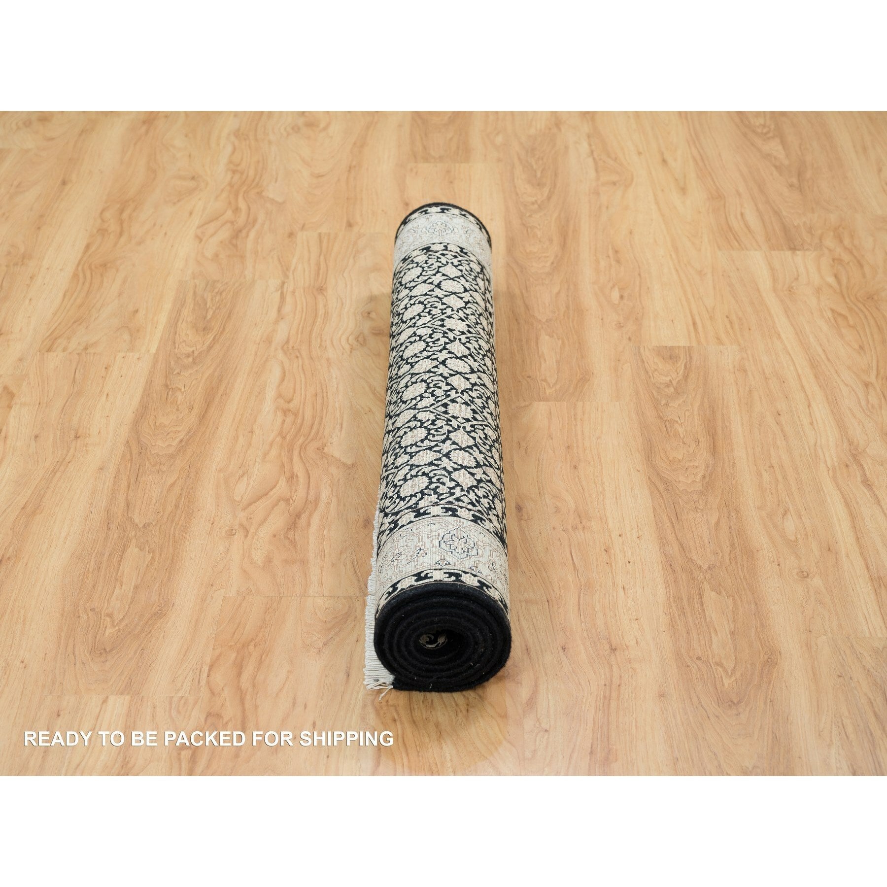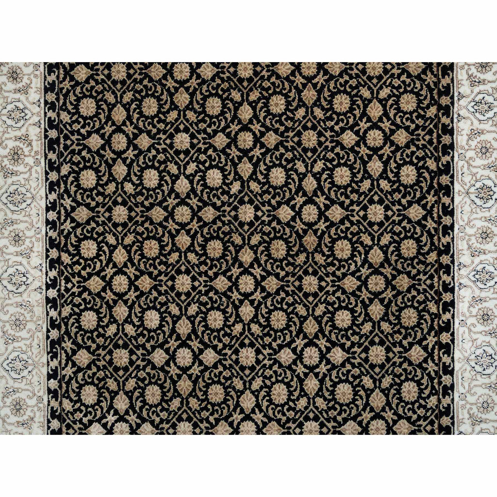4'x6' Eerie Black, Herati With All Over Fish Mahi Design, 250 Kpsi Super Fine Weave, Extra Soft Wool Hand Knotted, Oriental Rug FWR392358