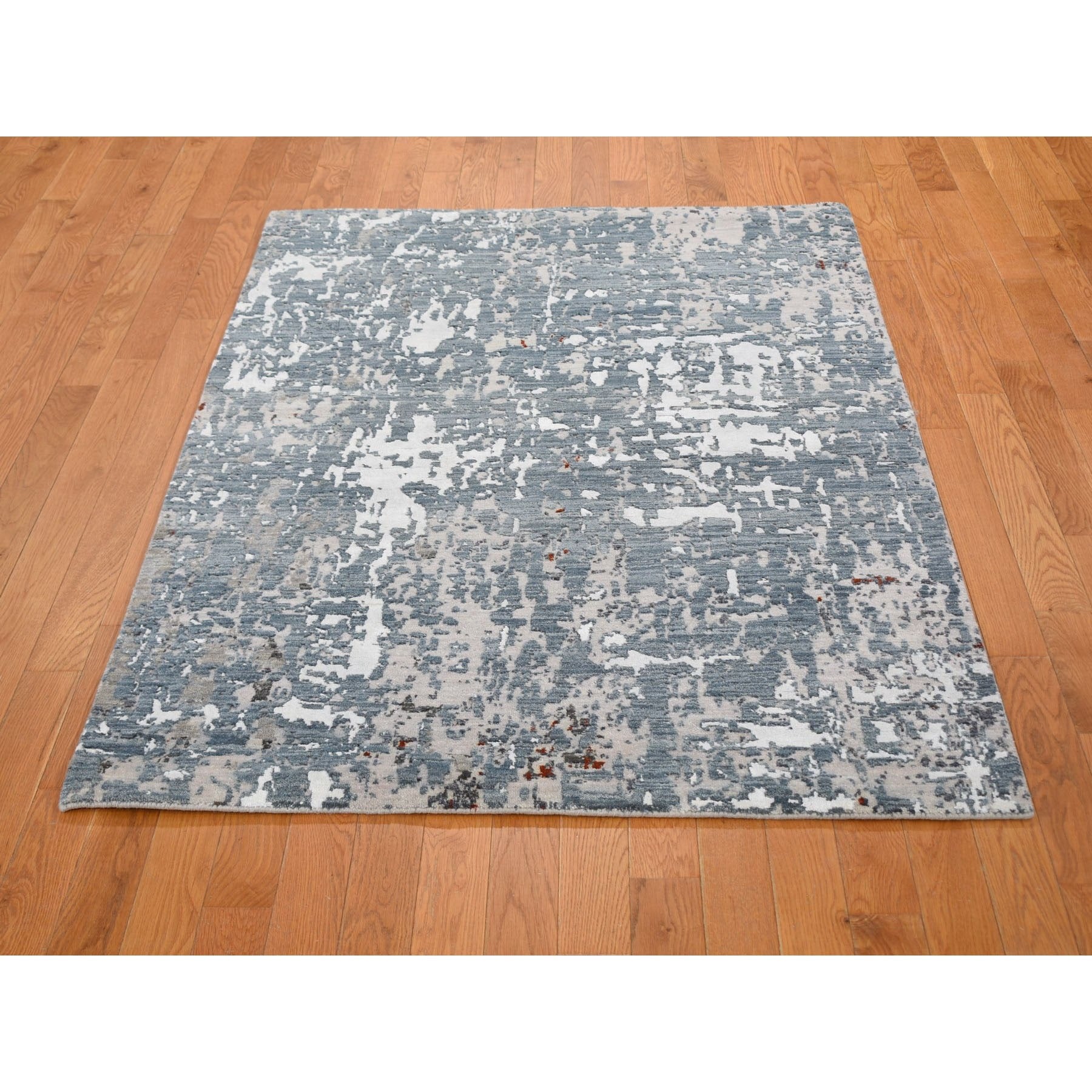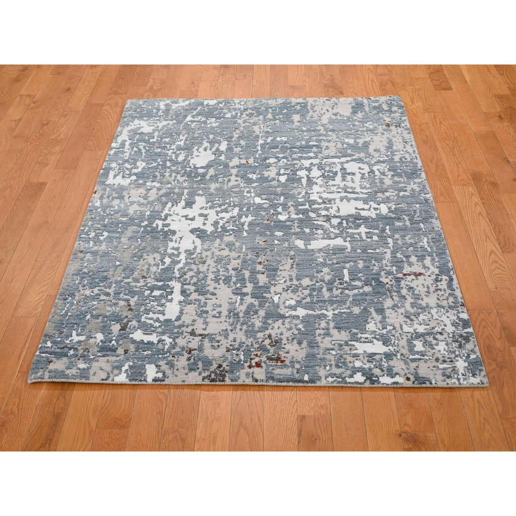 4'x6' Gray Abstract Design Wool And Silk Hi-low Pile Denser Weave Hand Knotted Oriental Rug FWR354492