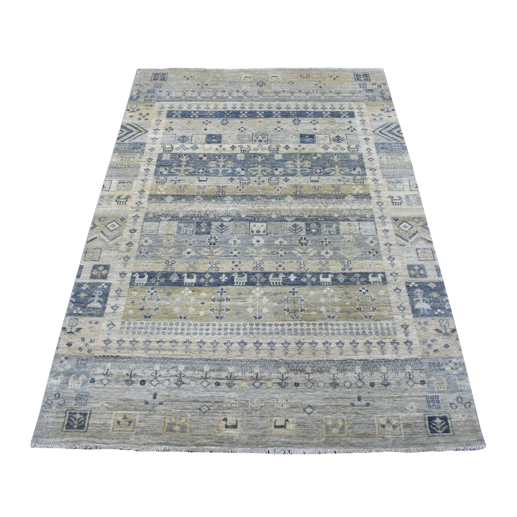 4'x6' Hand-knotted Taupe Kashkuli Gabbeh With Small Animal Figurines Organic Wool Village Rug FWR338556