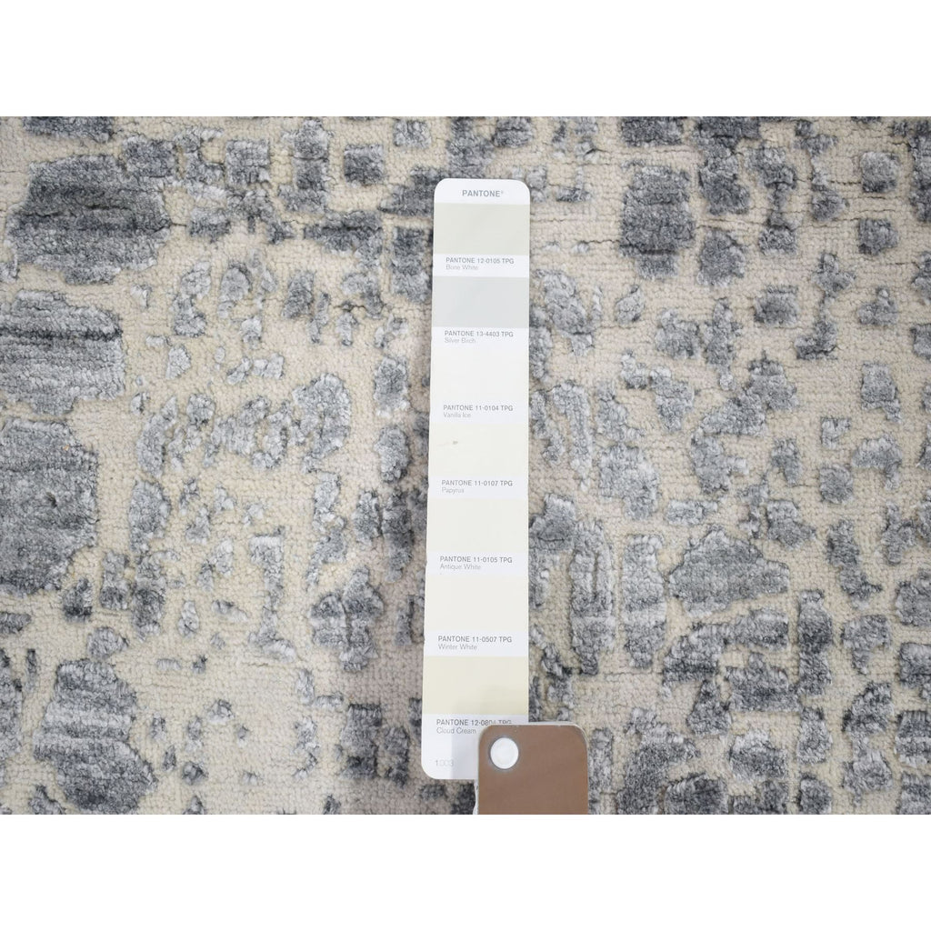 4'x6' Ivory, Modern Design, Hand Knotted Tone On Tone Plant Based Silk With Textured Wool, Oriental Rug FWR480462