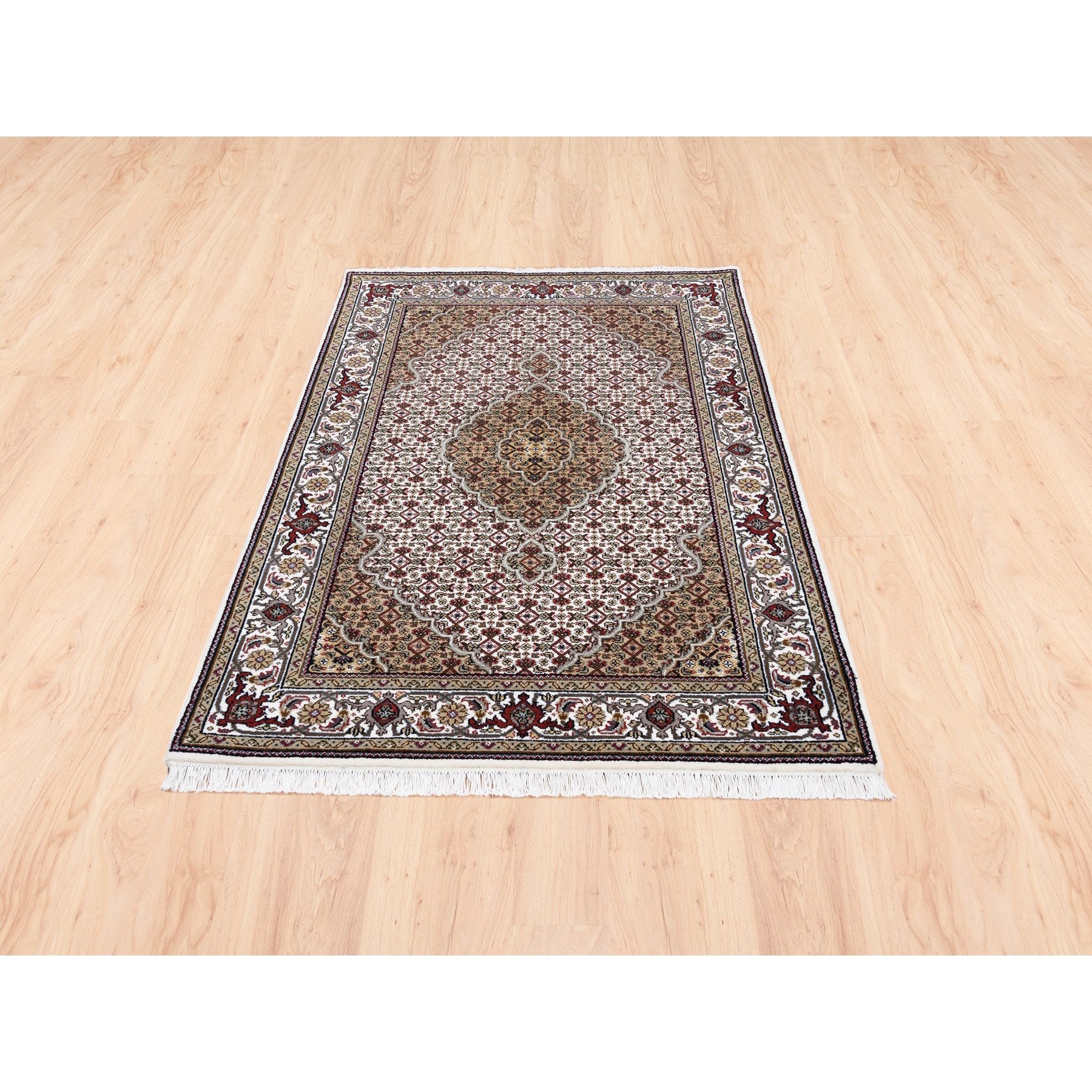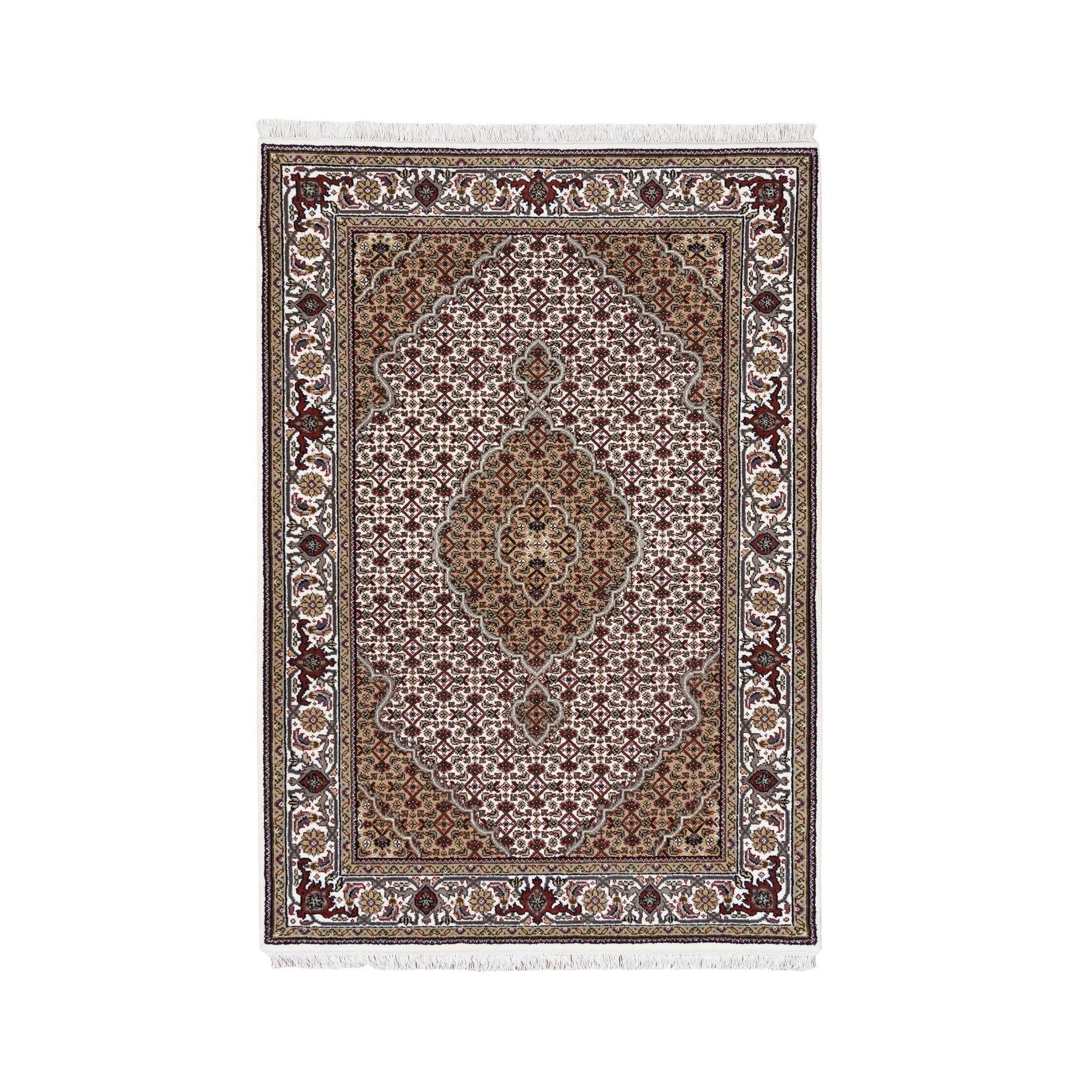 4'x6' Ivory Tabriz Mahi Fish Medallion Design Wool Hand Knotted Oriental Rug FWR374940