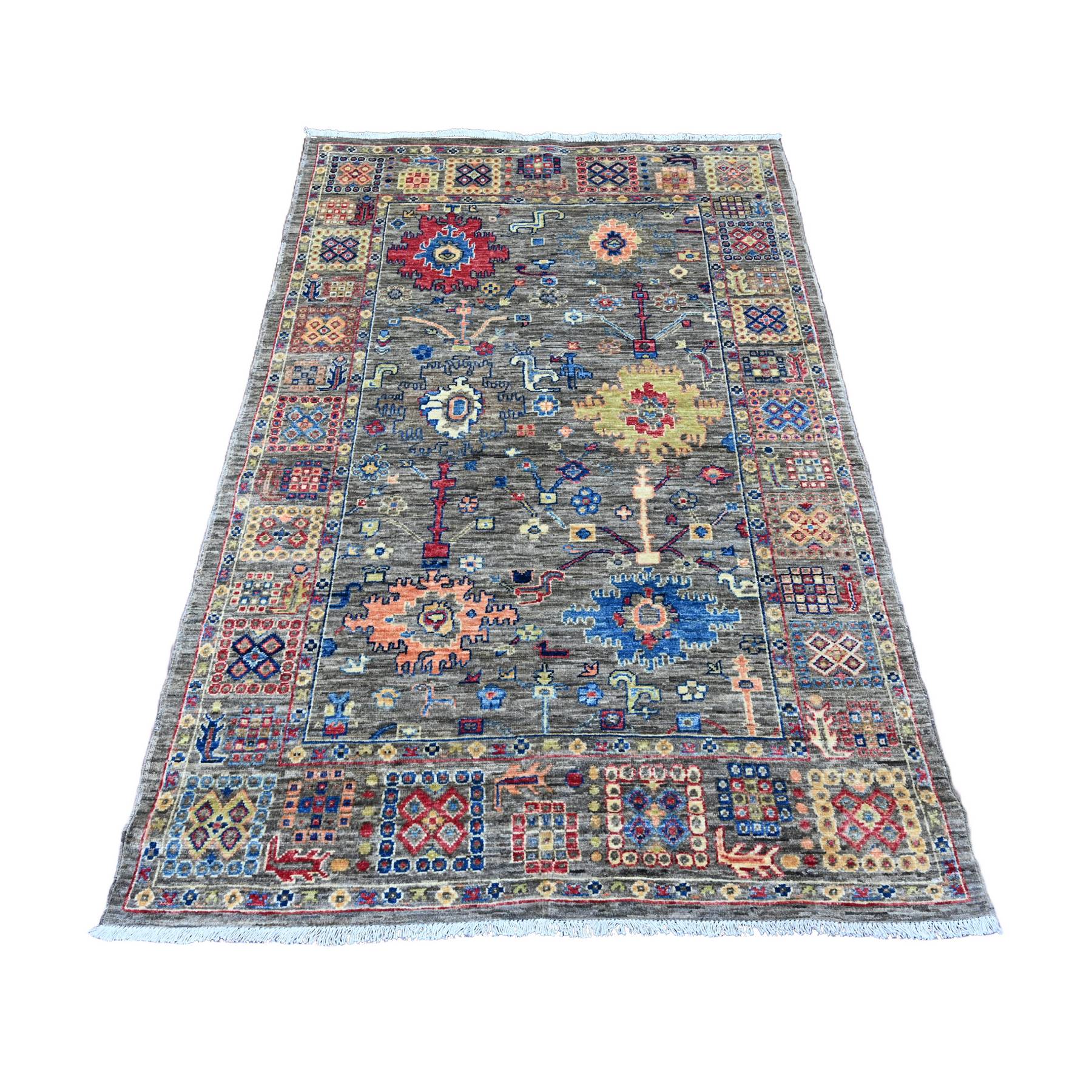 4'x6' Nickel Gray, Aryana Collection, Peshawar With Ziegler Mahal All Over Design, Hand Knotted, High Mountain Wool, Vegetable Dyes, Oriental Rug FWR124176