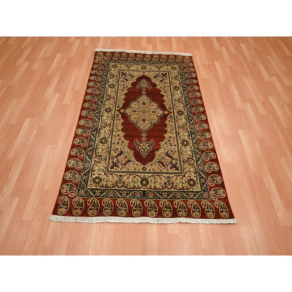 4'x6' Wine Red, Pure Silk, Tabriz Haji Jalili Paisley Design, Hand Knotted, Soft Pile, Oriental Rug FWR453882