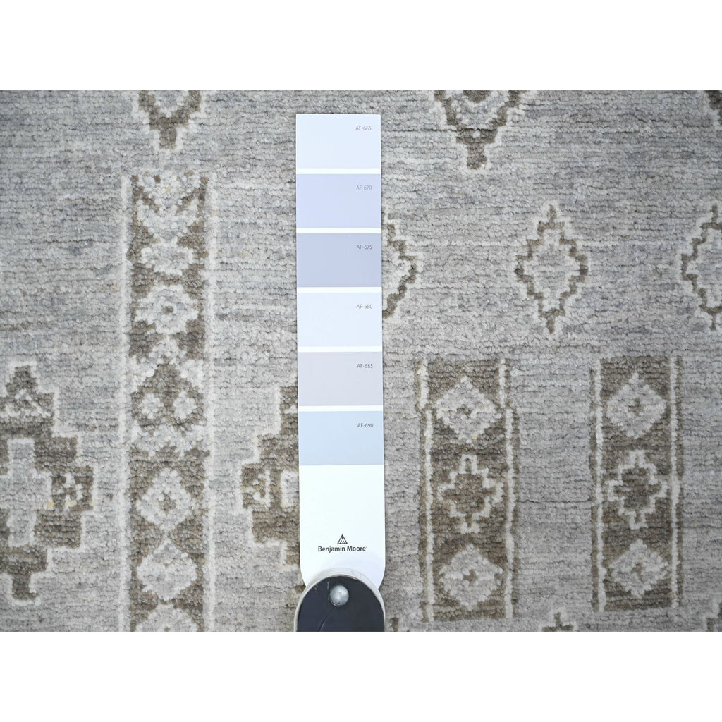 4'x9'1" Dim Gray, Vegetable Dyes Fine Peshawar With Intricate Geometric Motifs, 100% Wool Hand Knotted, Wide Runner Oriental Rug FWR445968