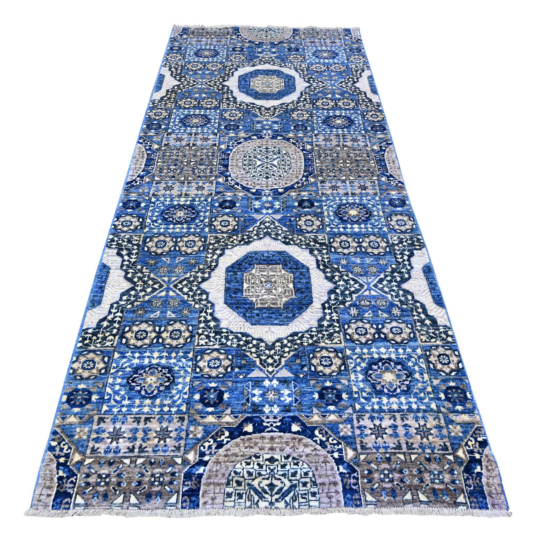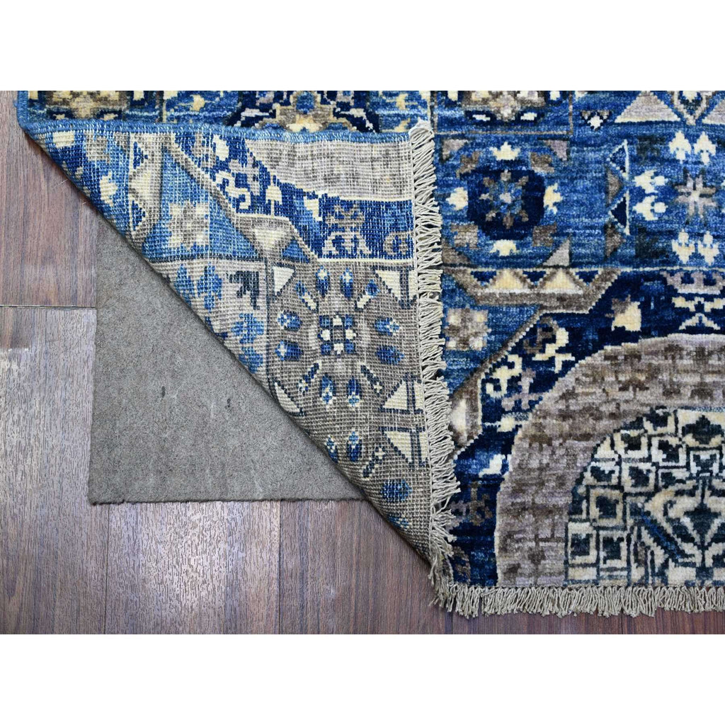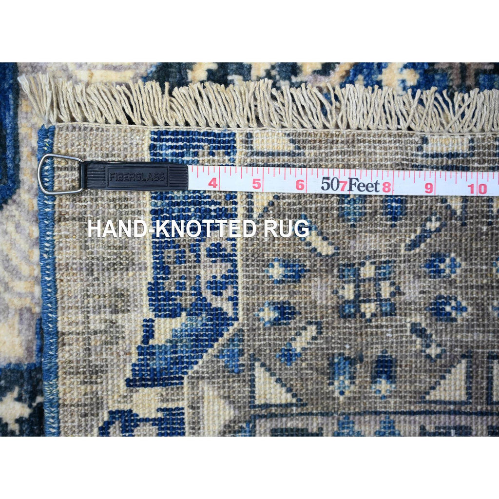 4'x9'10" Air Force Blue, Dense Weave Vegetable Dyes, Soft Wool Hand Knotted, Fine Aryana With Mamluk Borderless Design, Wide Runner Oriental Rug FWR529974