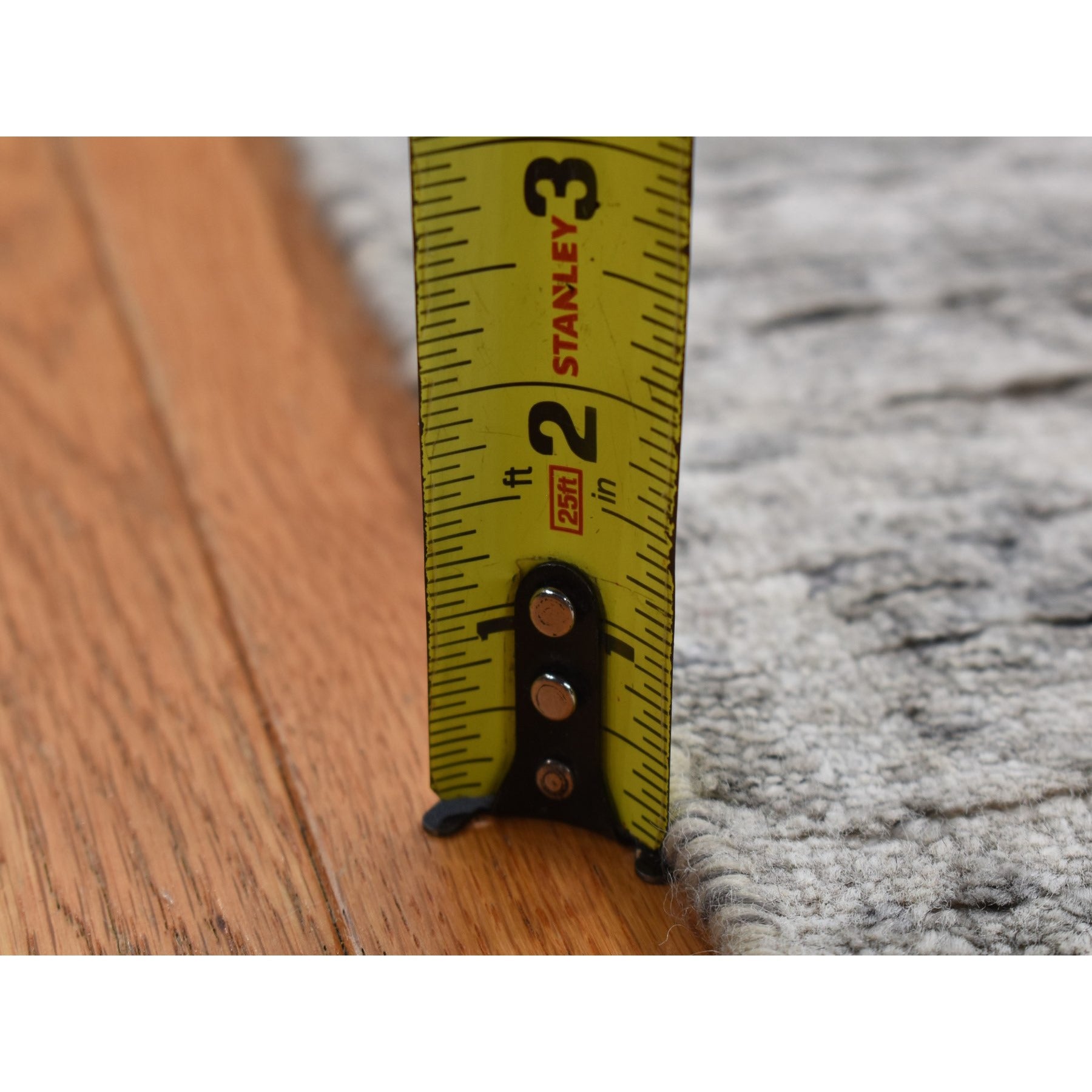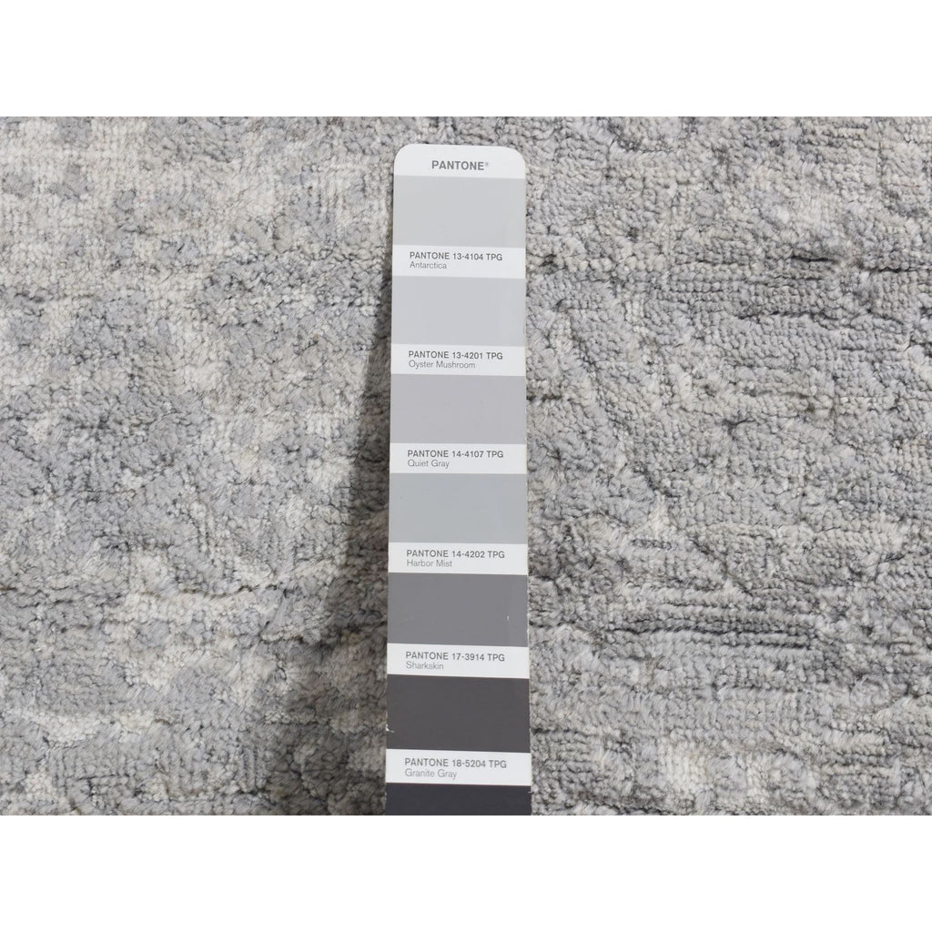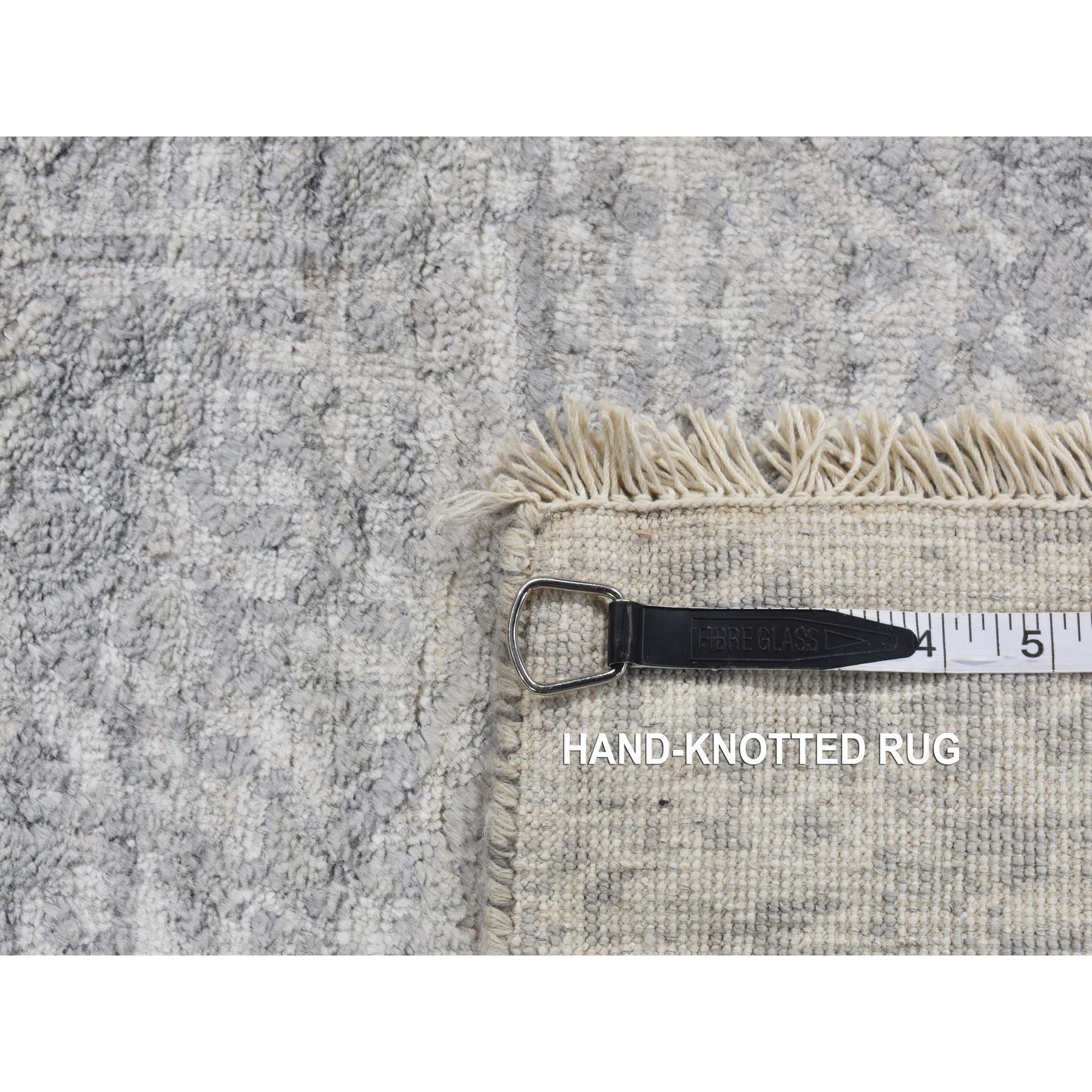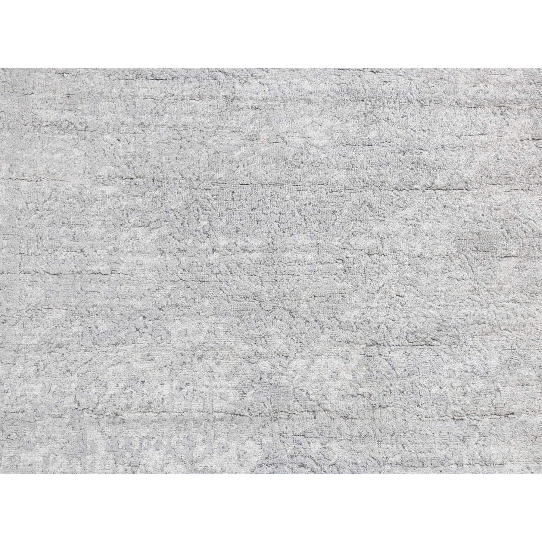 4'x9'8" Coin Gray, Broken And Erased Persian Design, Wide Runner, Wool And Silk, Hand Knotted Oriental Rug FWR526074