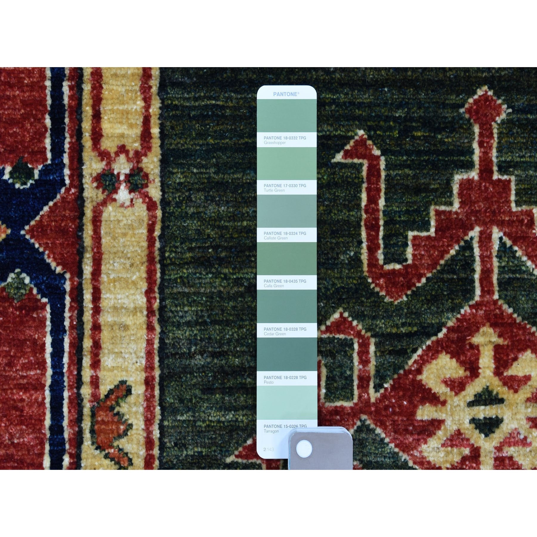 4'x9'8" Green Afghan Turkoman Ersari Geometric Design Organic Wool Hand Knotted Oriental Wide Runner Rug FWR340710