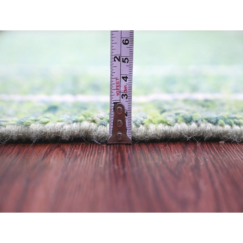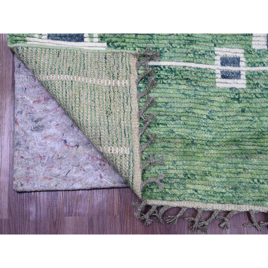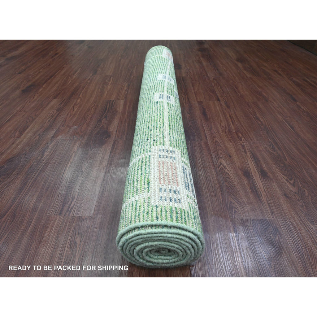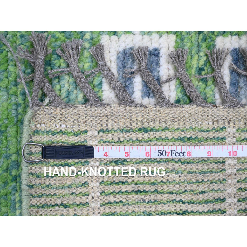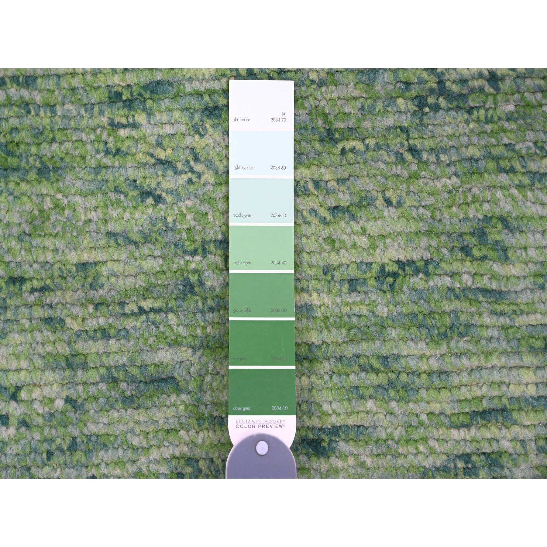 5'1"x12'3" Fern Green, Moroccan Weave With Line Design, Tone On Tone, Soft Wool, Hand Knotted, Textured Pile, Wide Runner, Oriental Rug FWR123288