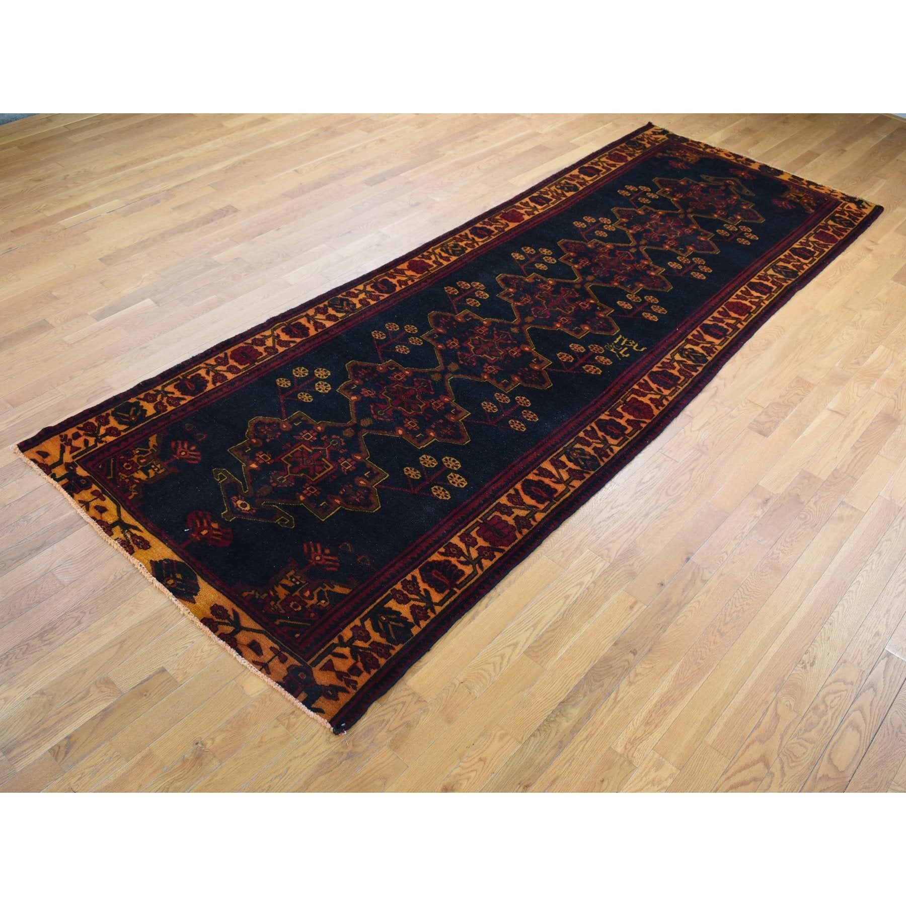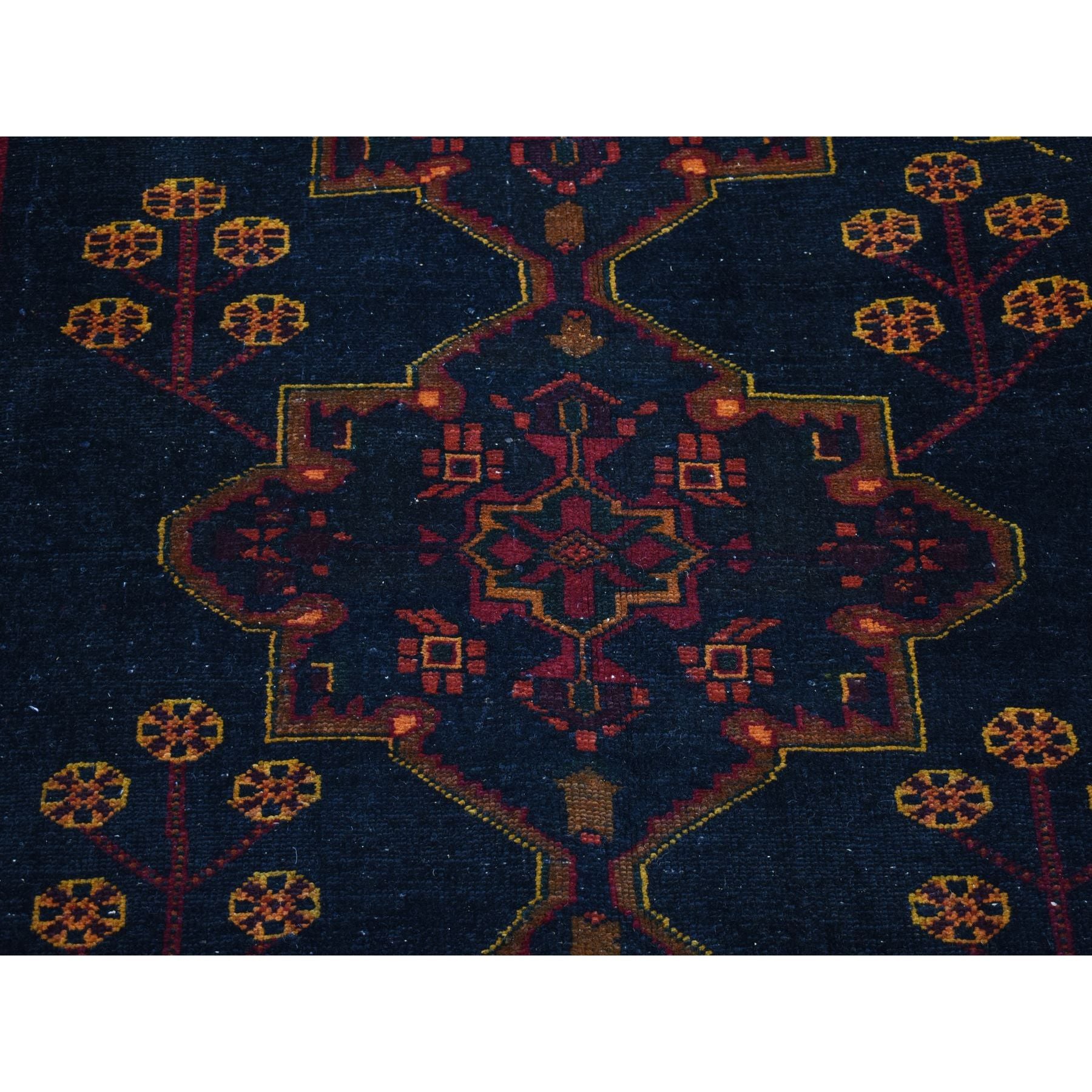 5'1"x13'3" Overdyed Midnight Blue, Vintage Persian Bakhtiari, Hand Knotted Pure Wool, Wide Runner Oriental Rug FWR484008