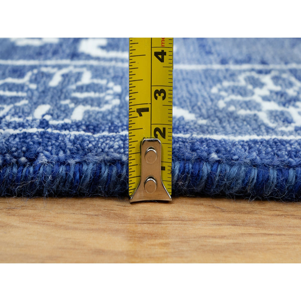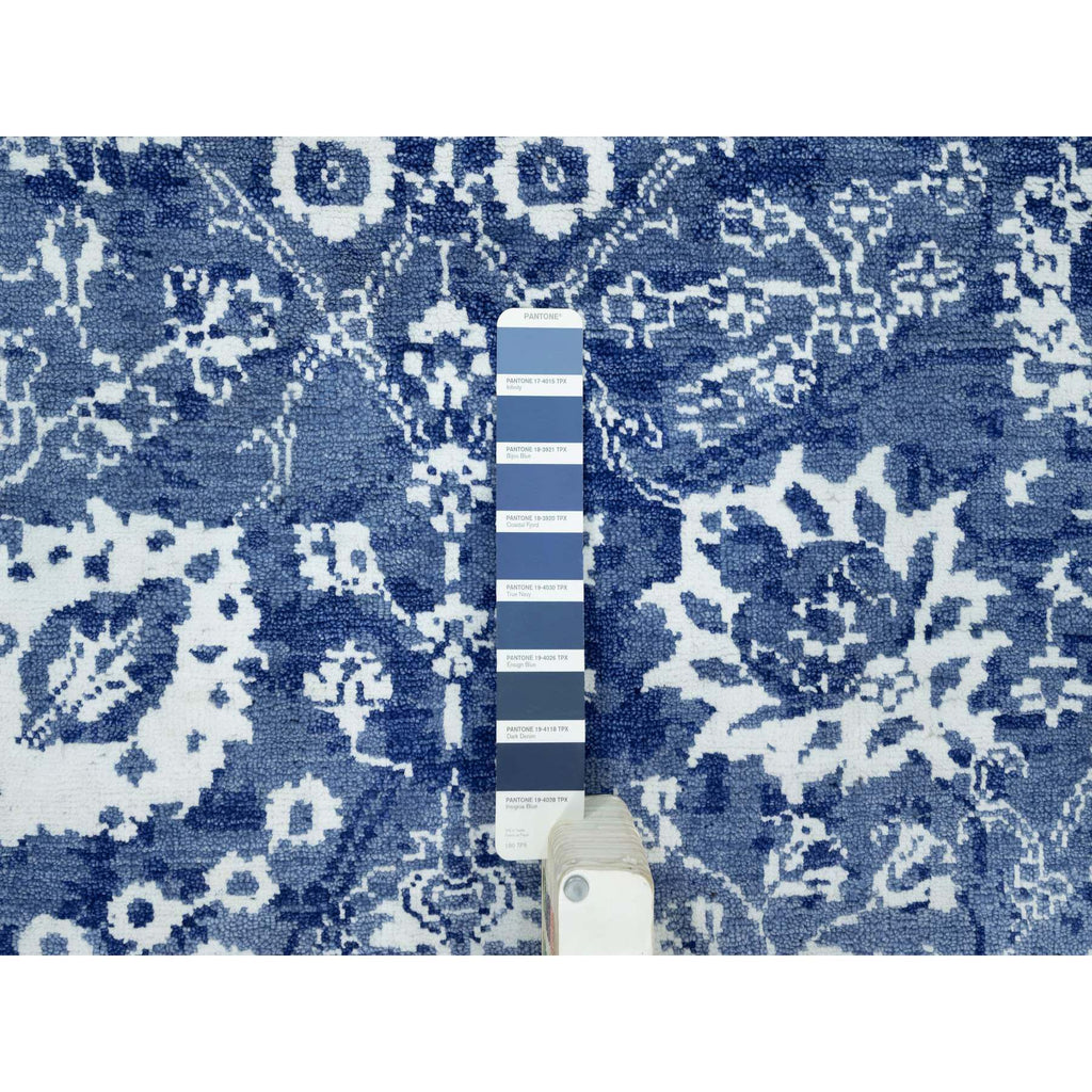 5'1"x6'10" Revel Blue, Tone On Tone, Hand Knotted Borderless Tabriz All Over Leaf Design, Wool And Silk, Oriental Rug FWR544038