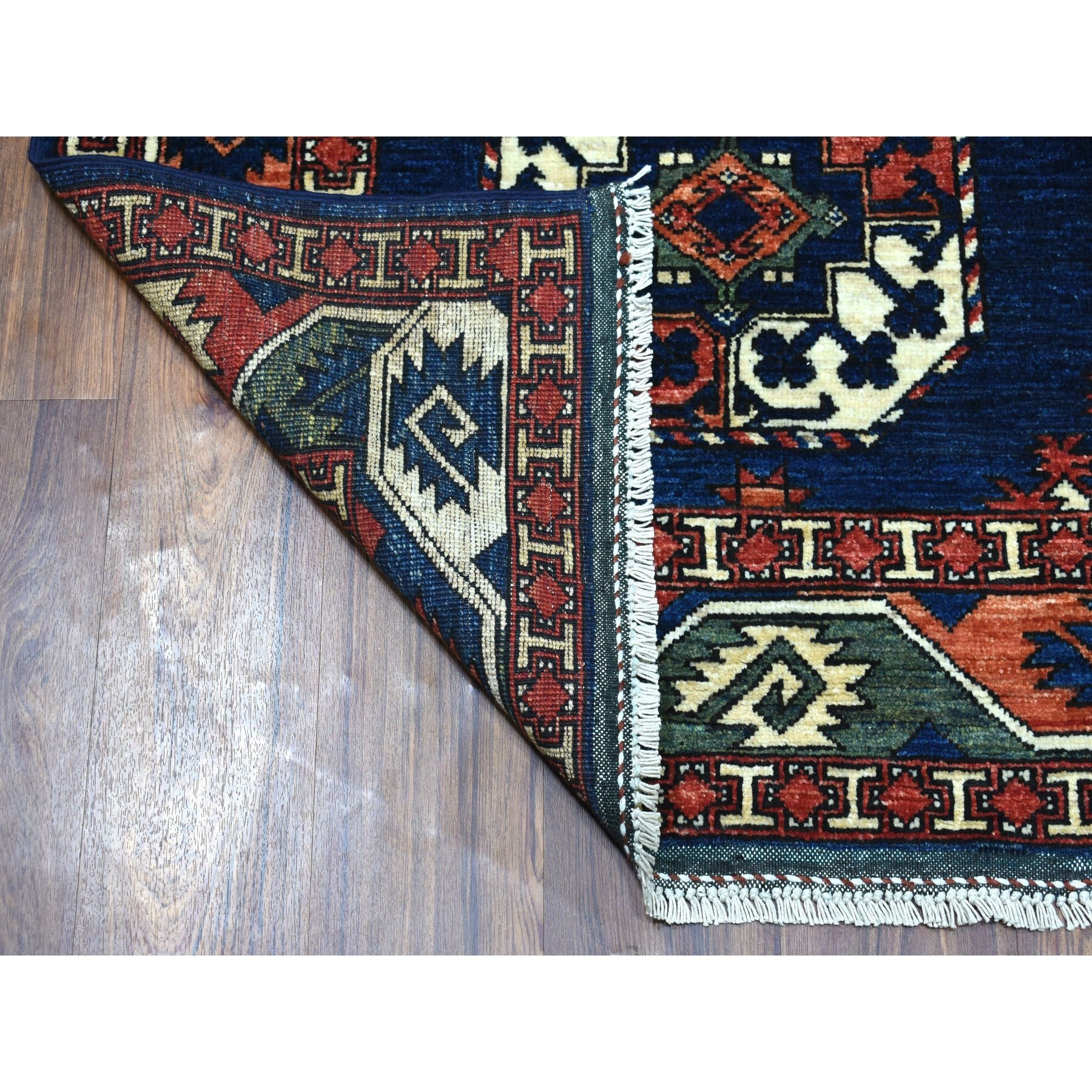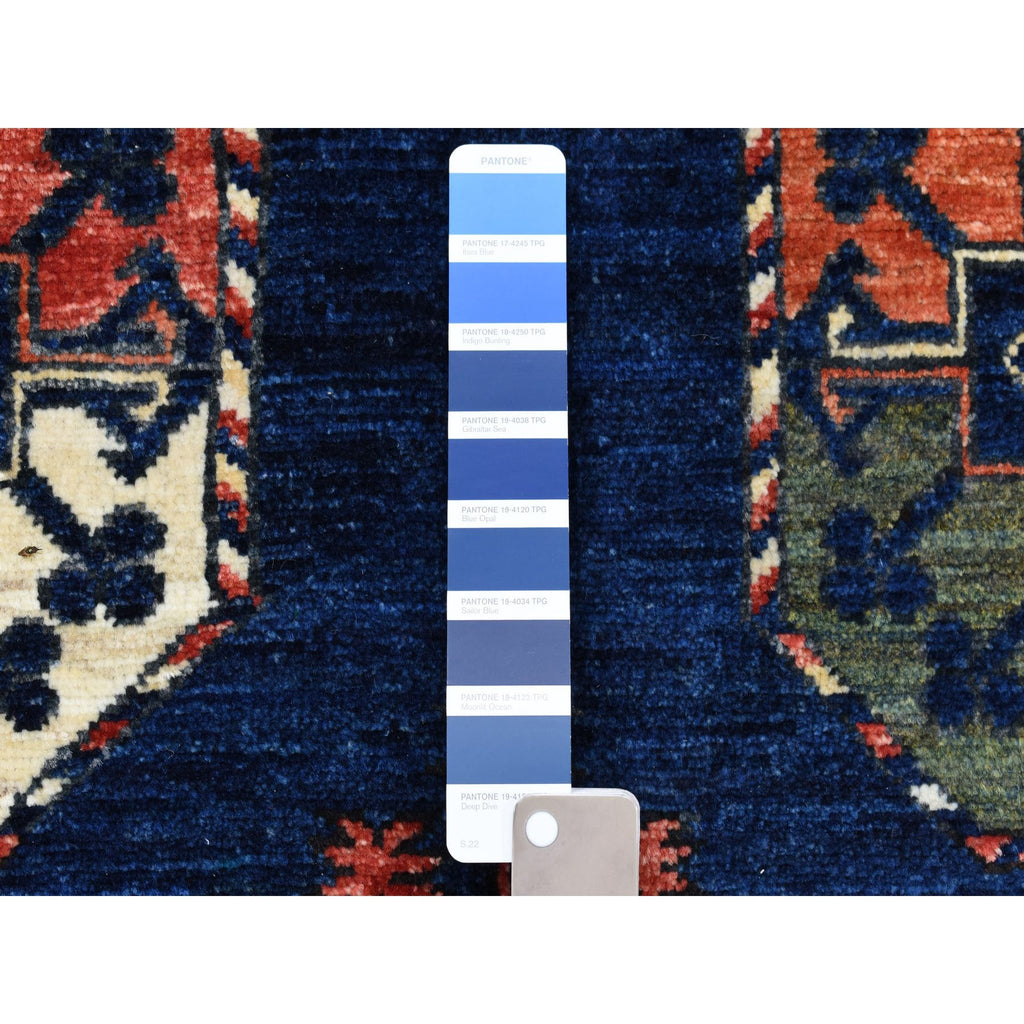 5'1"x6'8" Blue Afghan Ersari Natural Dyes Elephant Feet Design Pure Wool Hand Knotted Oriental Rug FWR318018