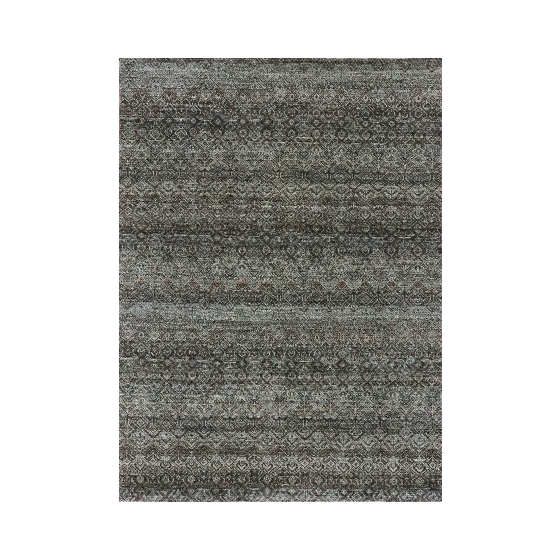 5'1"x7'1" Ash Gray, Kohinoor Herat Pattern, Small Geometric Repetitive Diamond Design, Soft Wool, Tone On Tone, Hand Knotted, Oriental Rug FWR461022