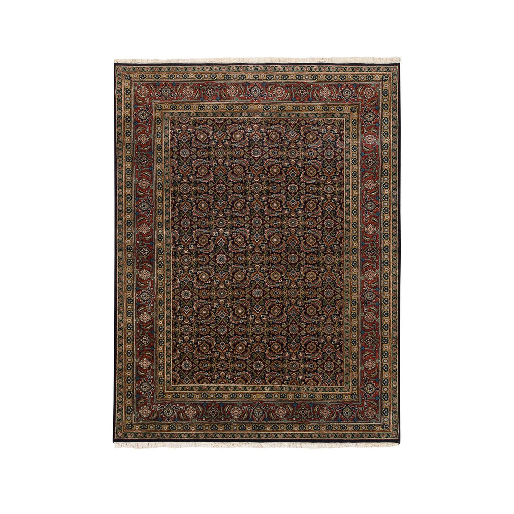 5'1"x7'1" Ink Black Hand Spun Wool All Over Herat Fish Design Hand Knotted Oriental Rug FWR374058