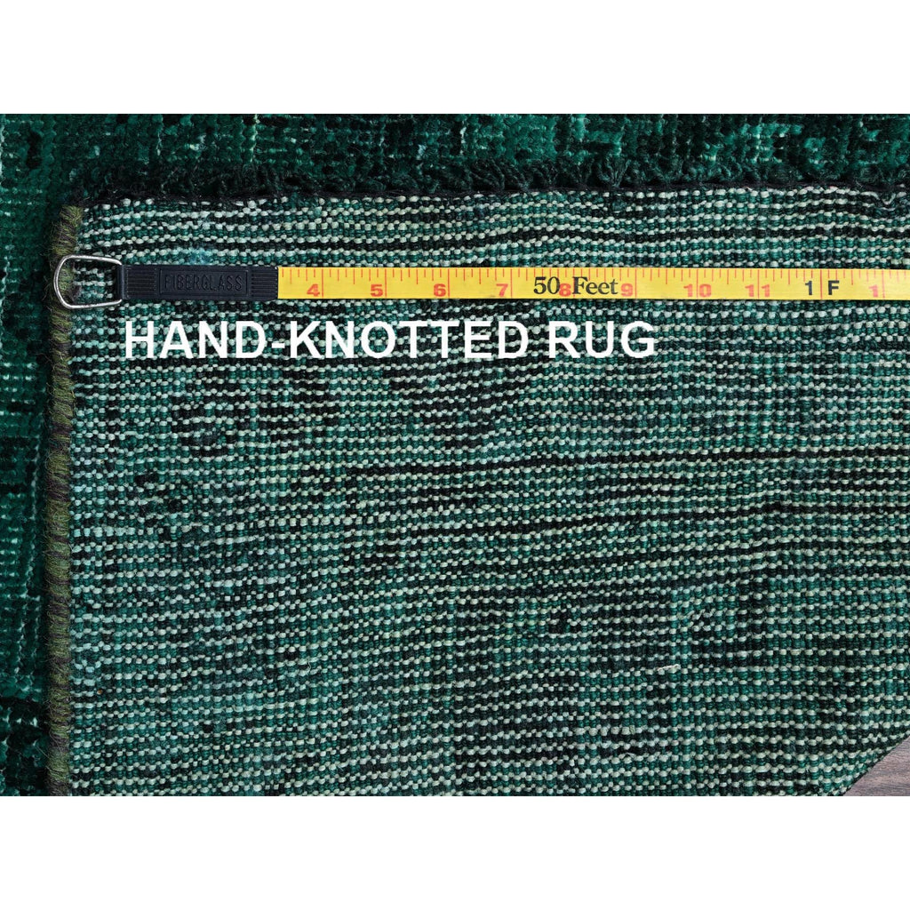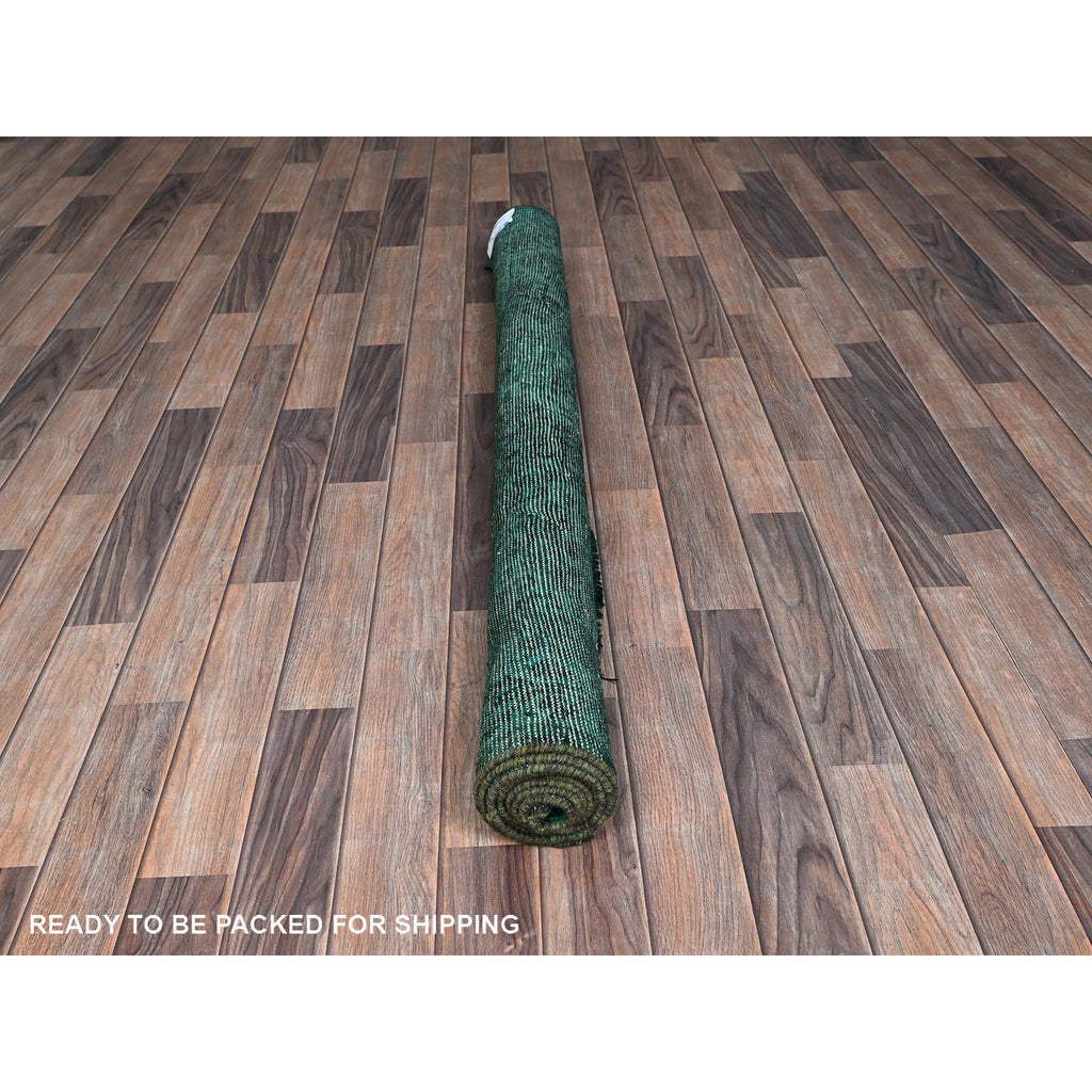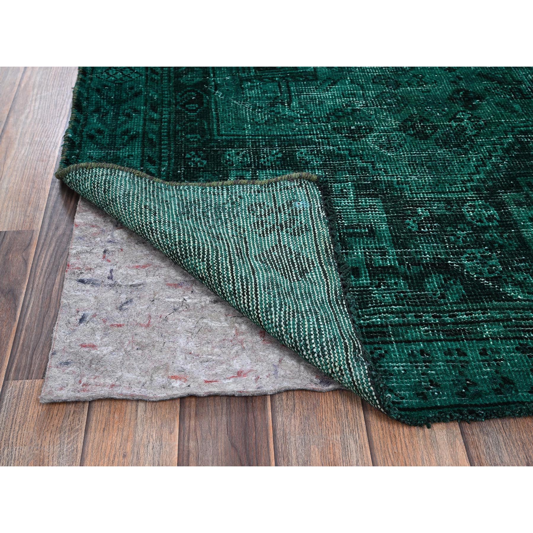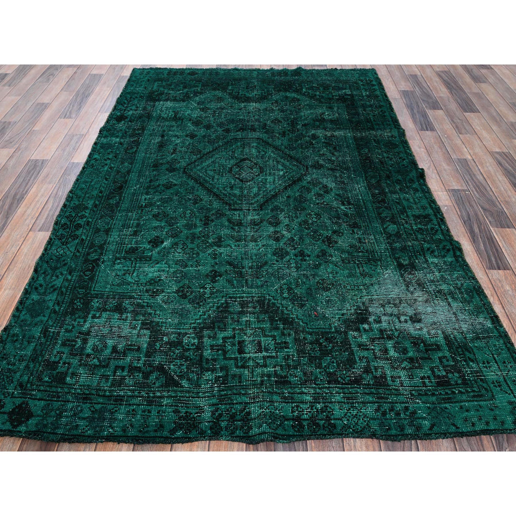 5'1"x7'10" Bottle Green, Vintage Overdyed Persian Shiraz With Geometric Medallion, Worn And Distressed, Shaved Low, Zero Pile, Sides And Ends Professionally Secured, Hand Knotted, 100% Wool, Oriental Rug FWR6108