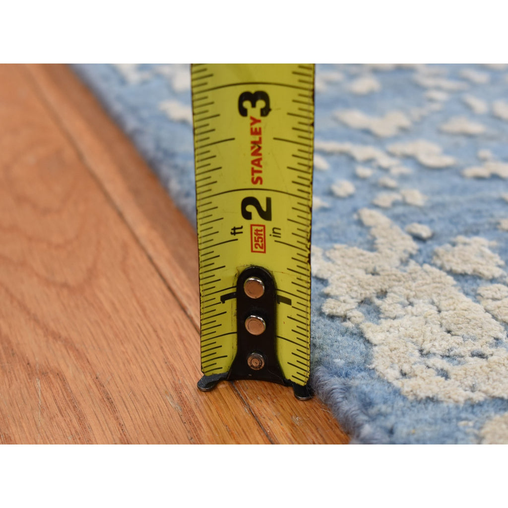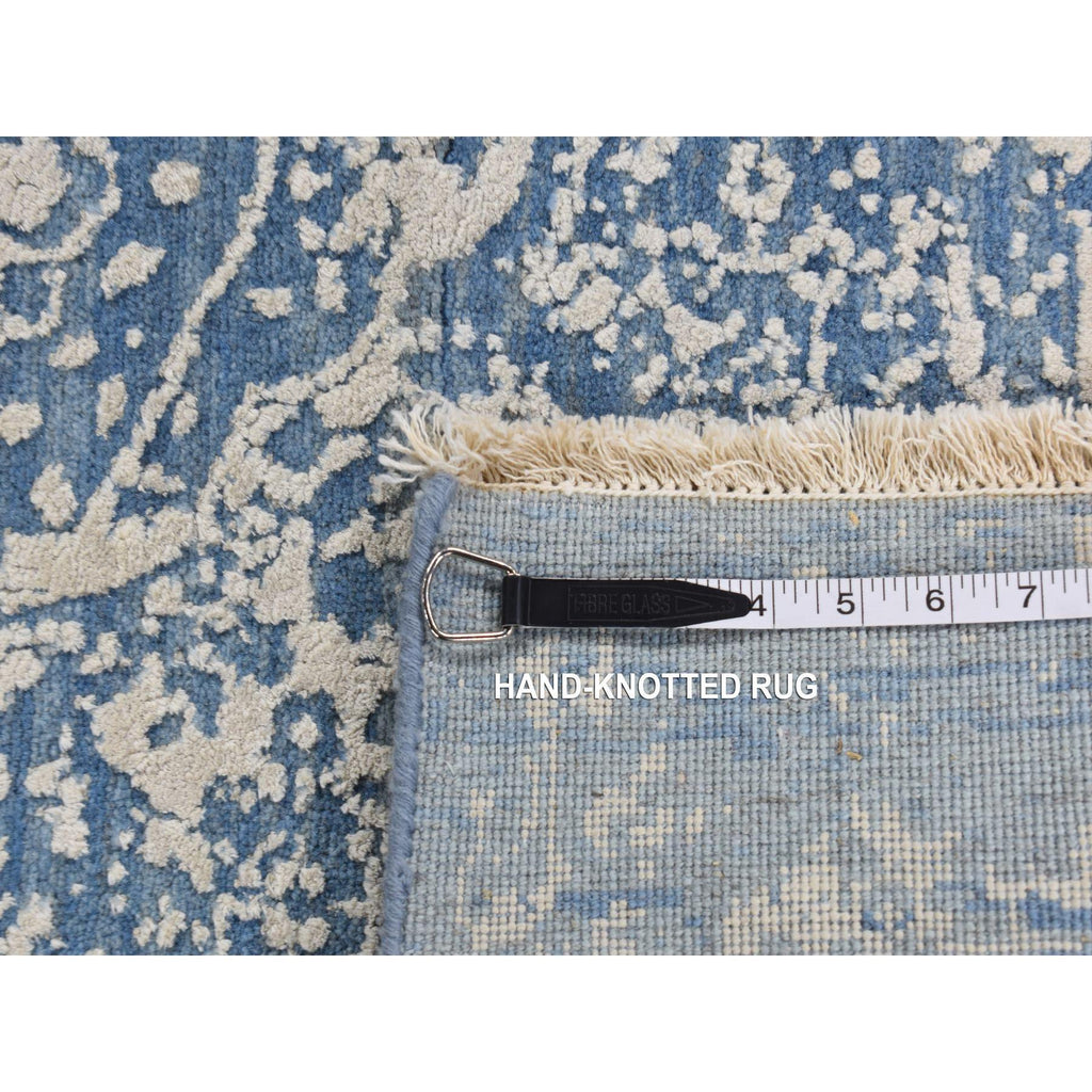 5'1"x7' Air Force Blue, Hand Knotted, Broken And Erased Persian Medallion Design, Wool And Pure Silk, Oriental Rug FWR485748