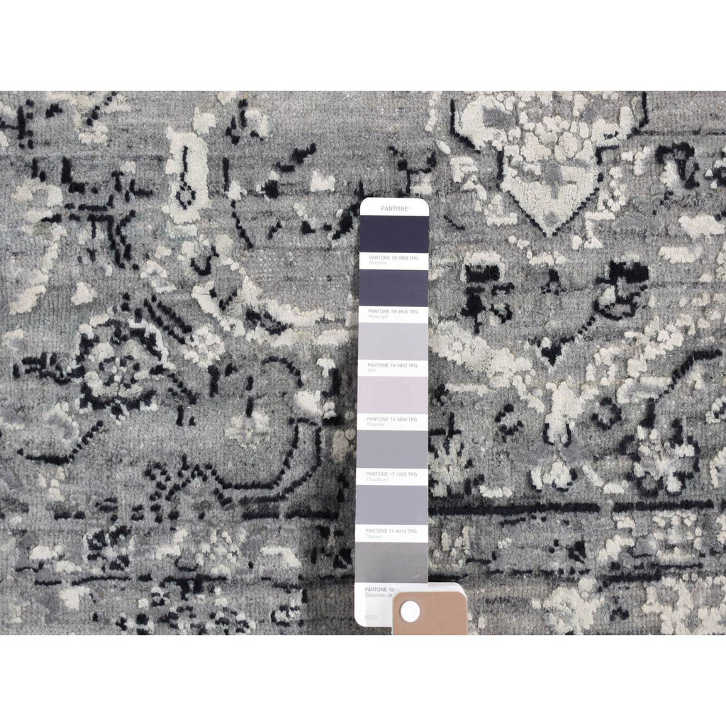 5'1"x7' Black Coral, Broken Persian, Erased Design, Silk With Textured Wool, Hand Knotted, Oriental Rug FWR484632