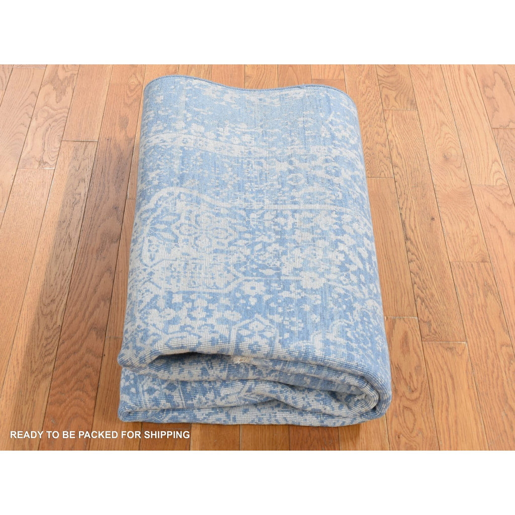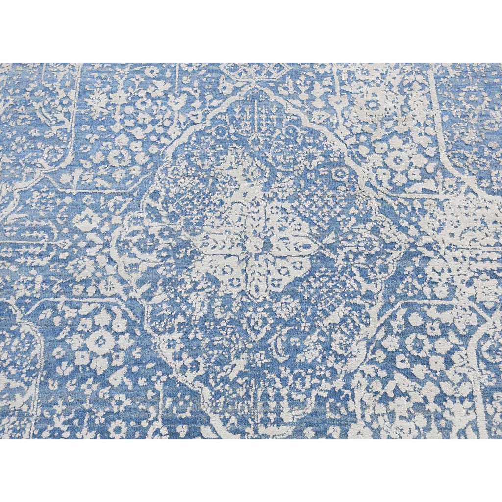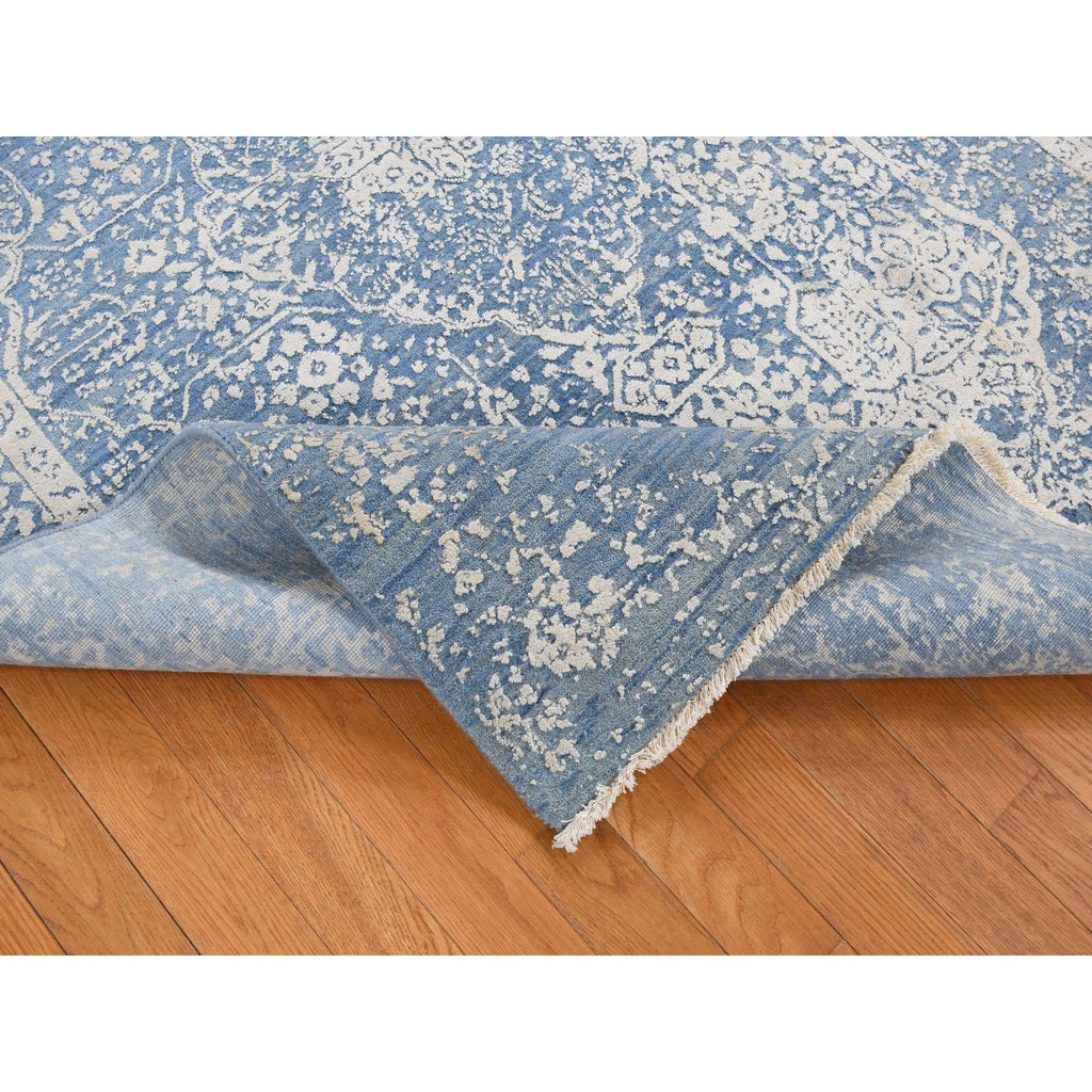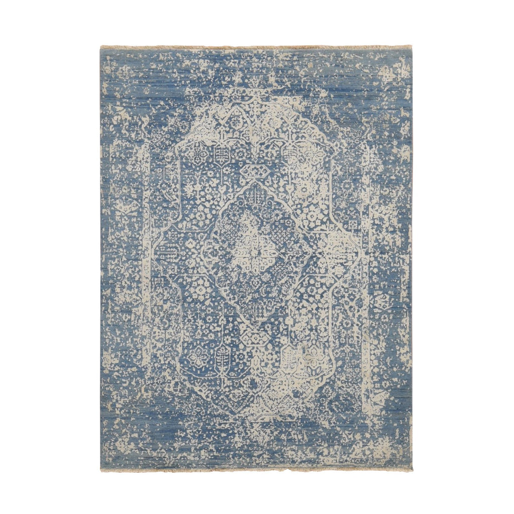 5'1"x7' Denim Blue, Wool And Pure Silk, Hand Knotted, Broken And Erased Persian Design, Oriental Rug FWR485562