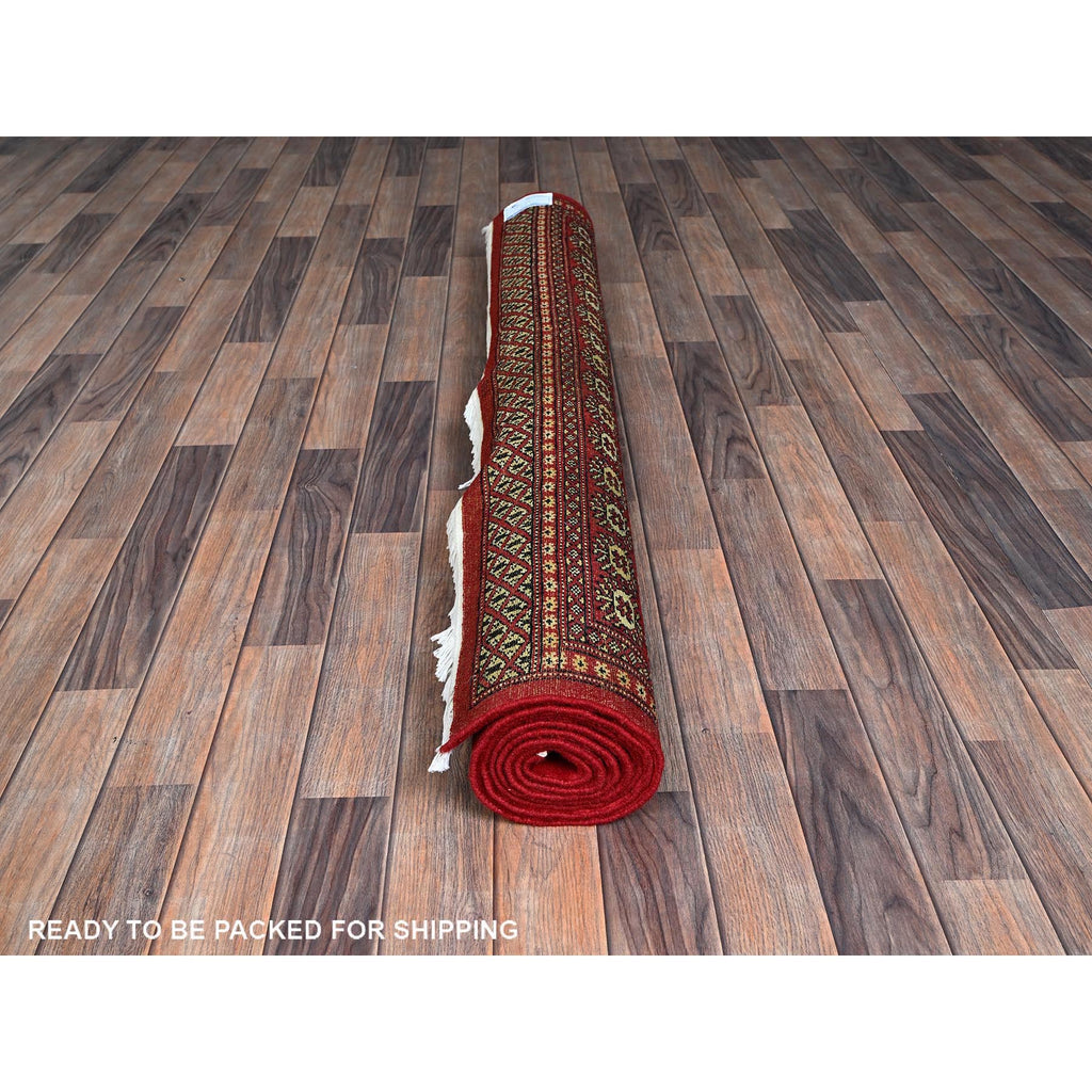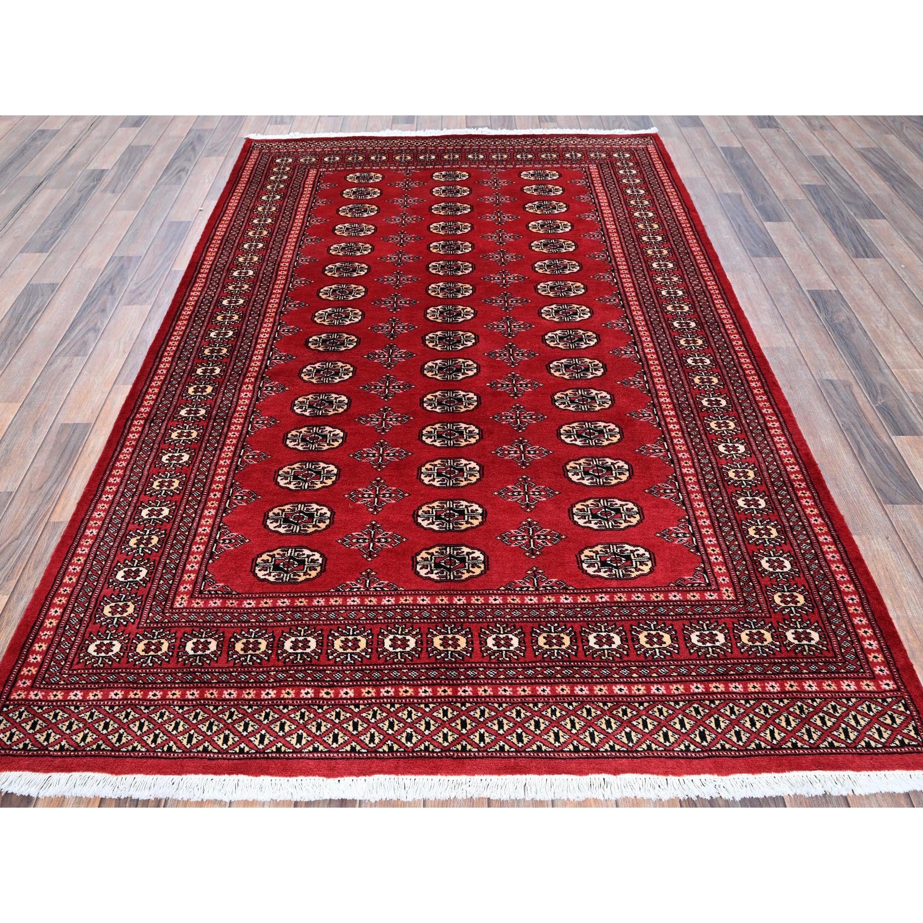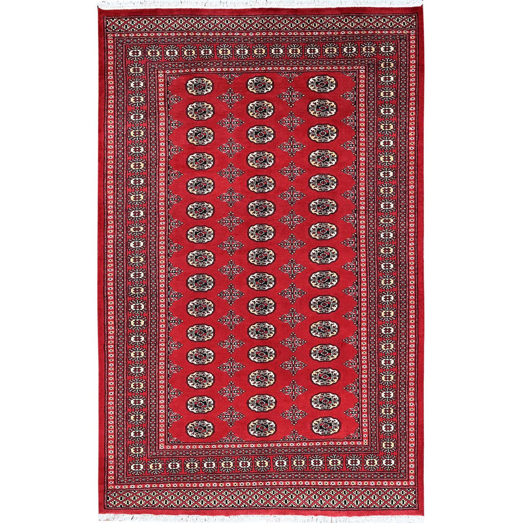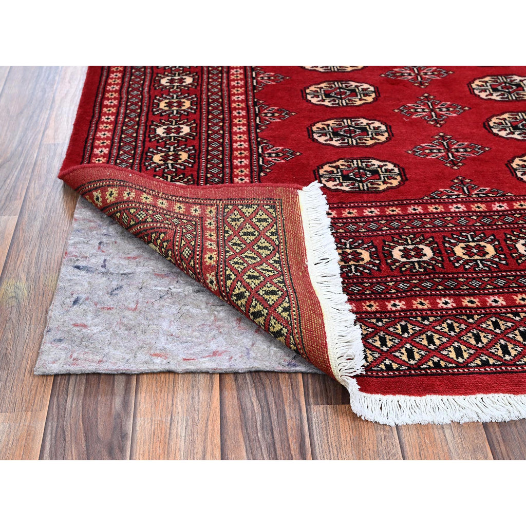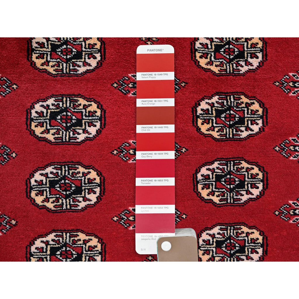5'1"x8'1" Chili Red, Princess Bokara With Geometric Medallions, Vegetable Dyes, Soft And Shiny Wool, Hand Knotted, Mat, Sample, Oriental Rug FWR7932