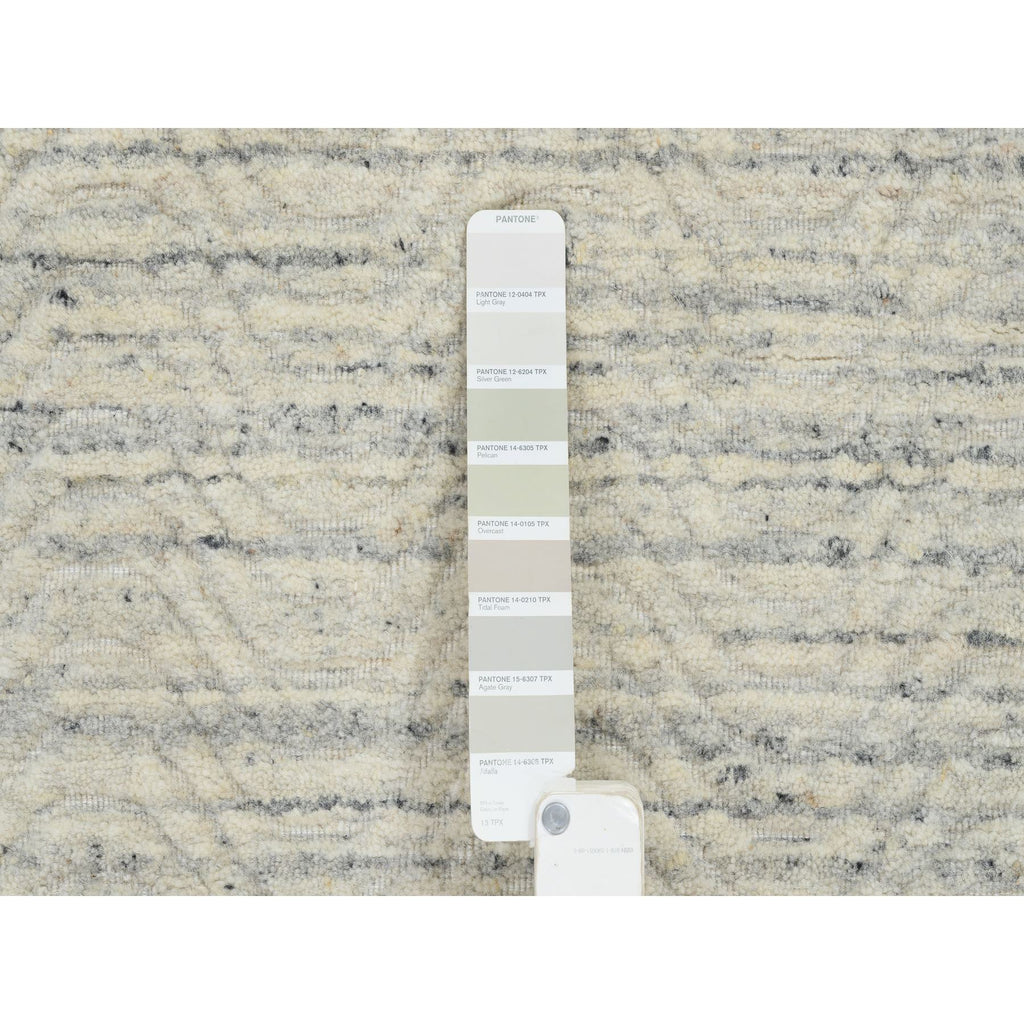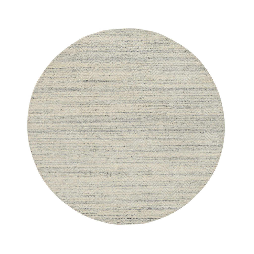 5'10"x5'10" Beige, Variegated Textured Modern Design, Hand Loomed Soft Wool, Round Oriental Rug FWR390144