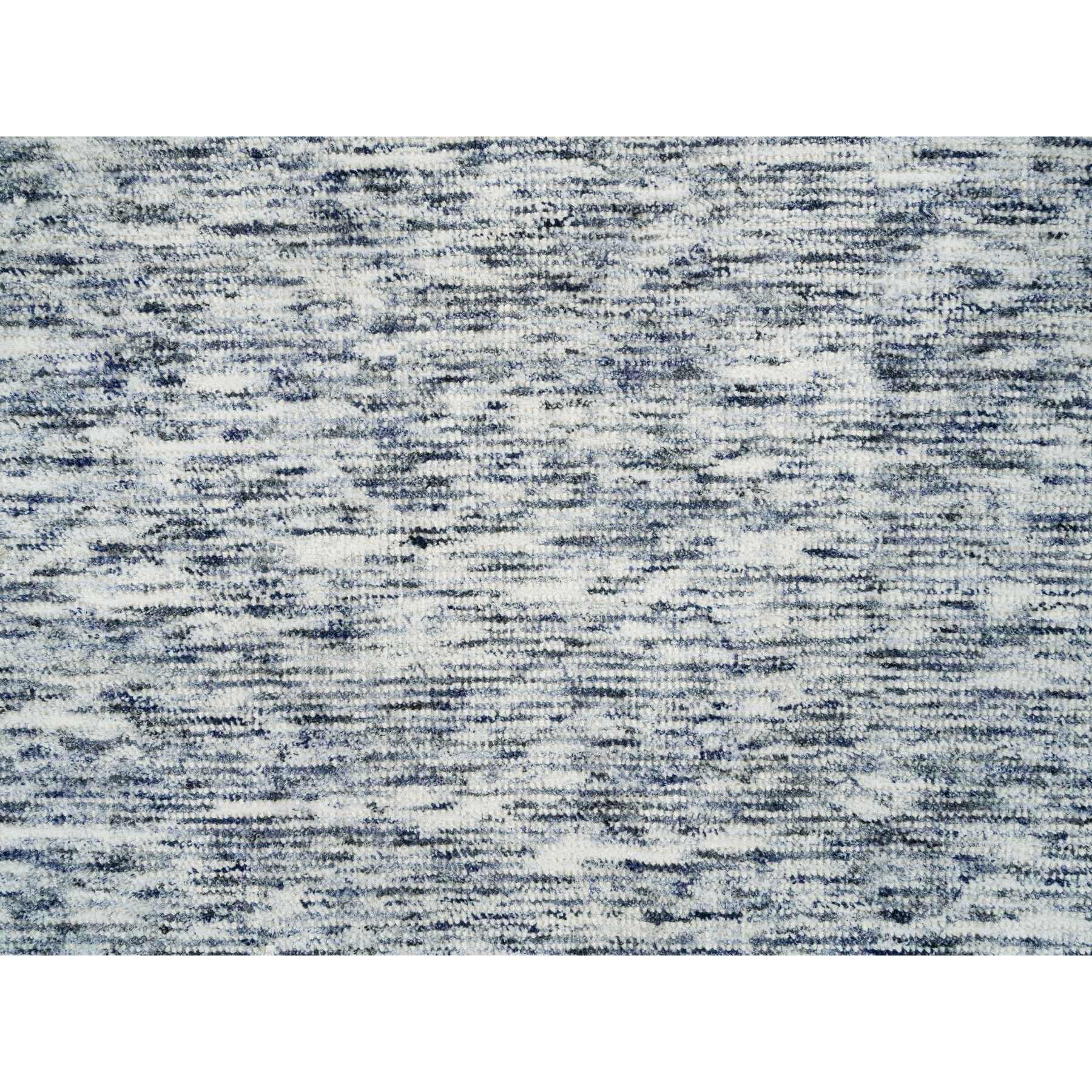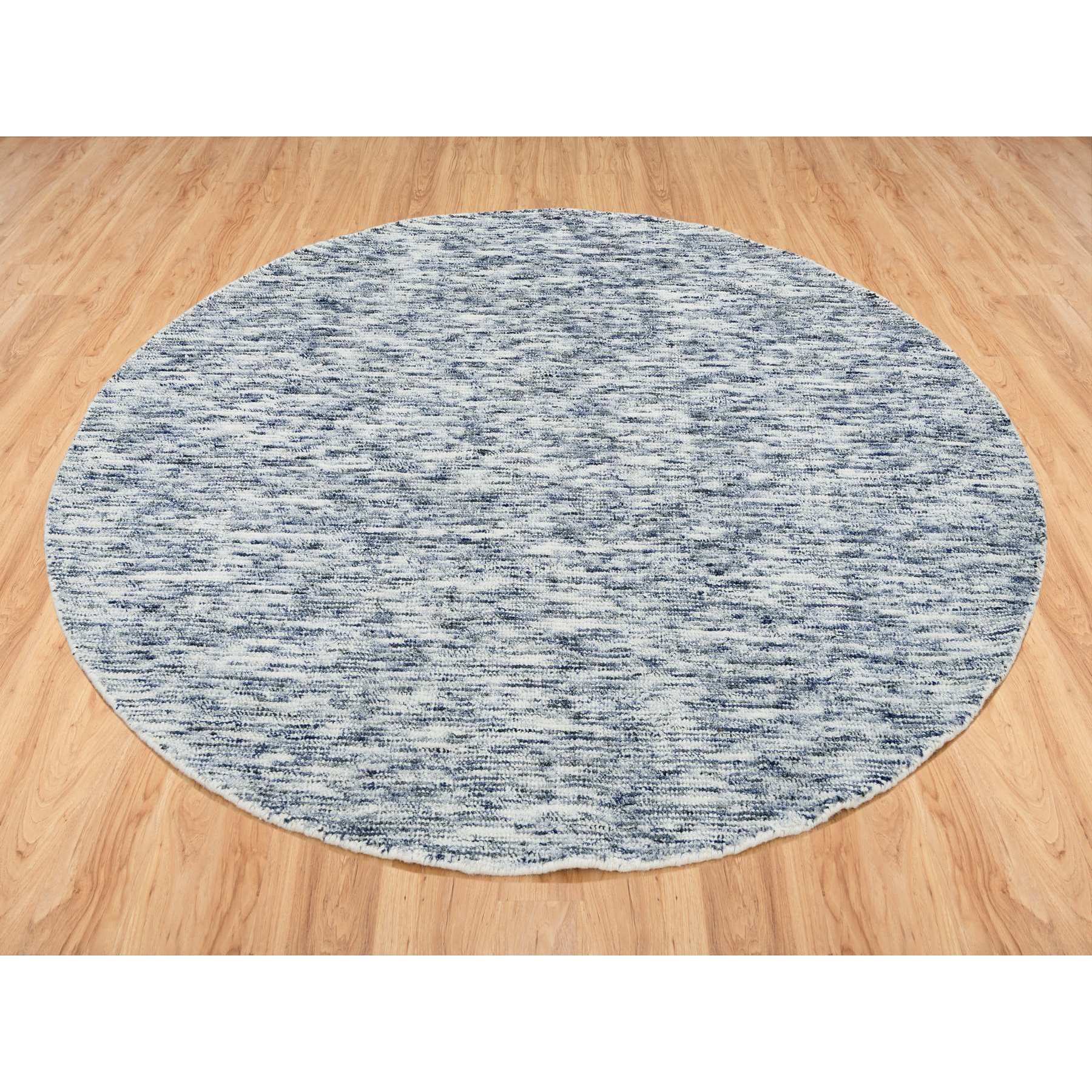 5'10"x5'10" Blue And Ivory, Modern Striae Design Soft Pile, Pure Wool Hand Loomed, Round Oriental Rug FWR391518