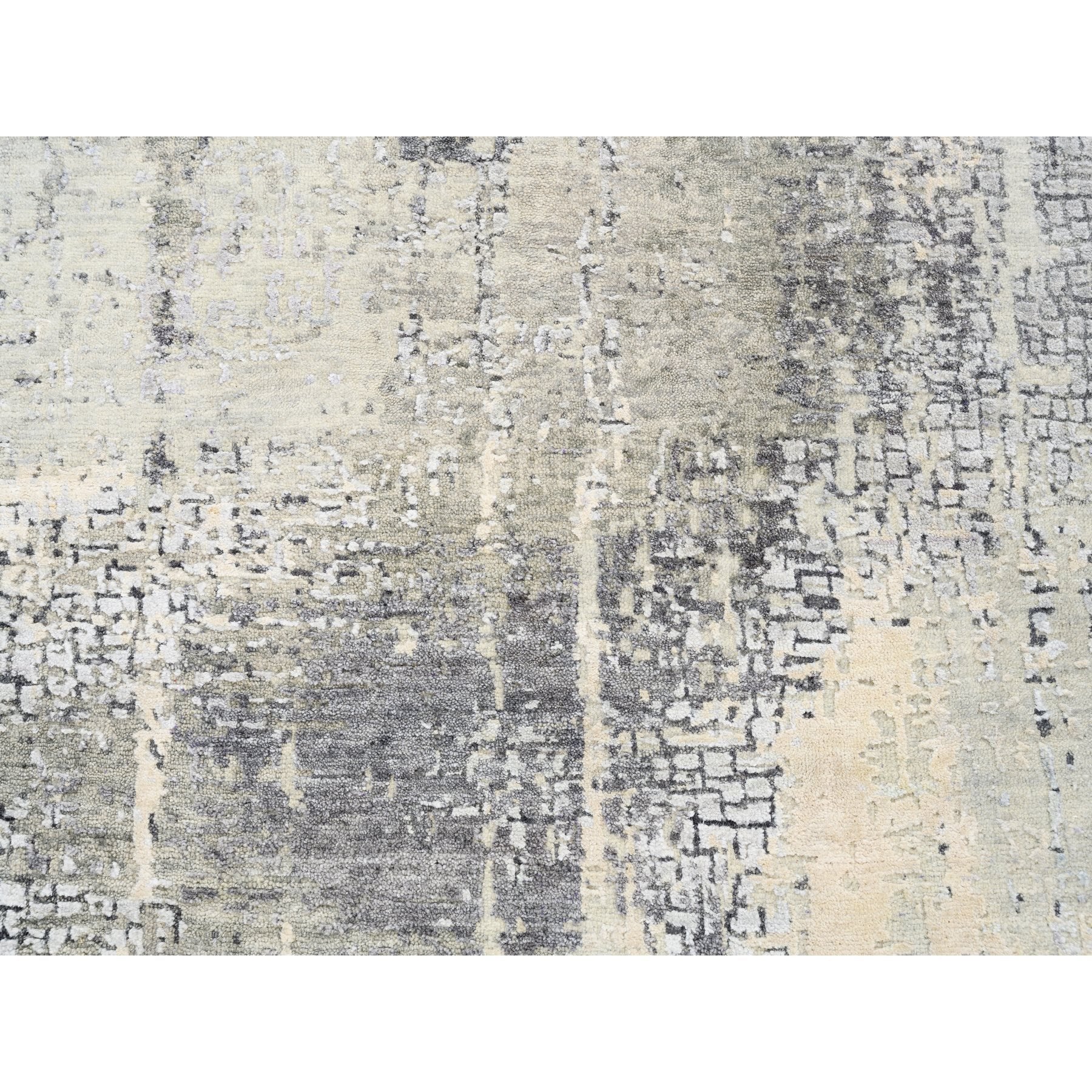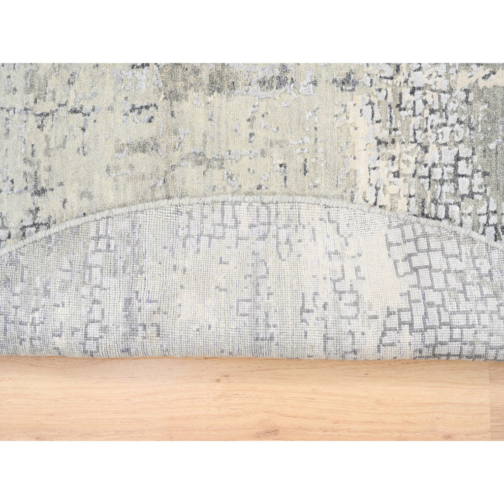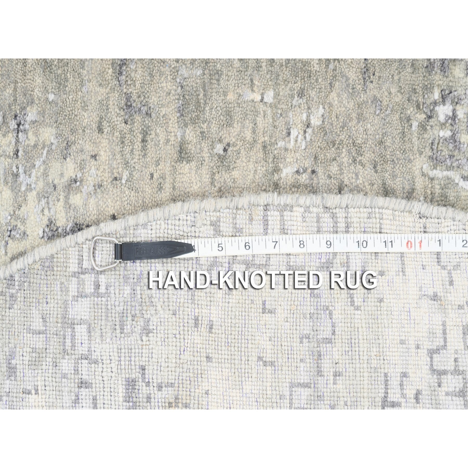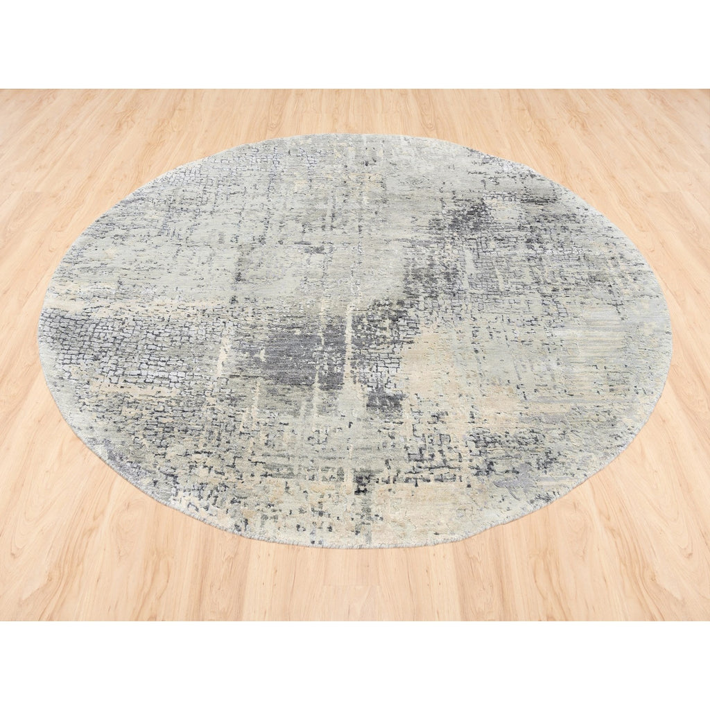 5'10"x5'10" Round Taupe Wool And Silk Abstract With Mosaic Design Hand Knotted Persian Knot Oriental Rug FWR376092