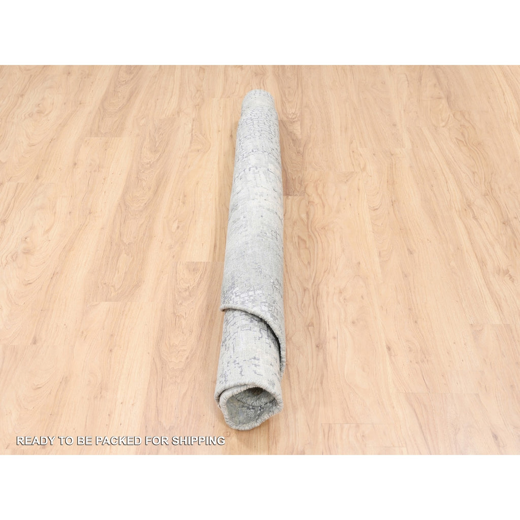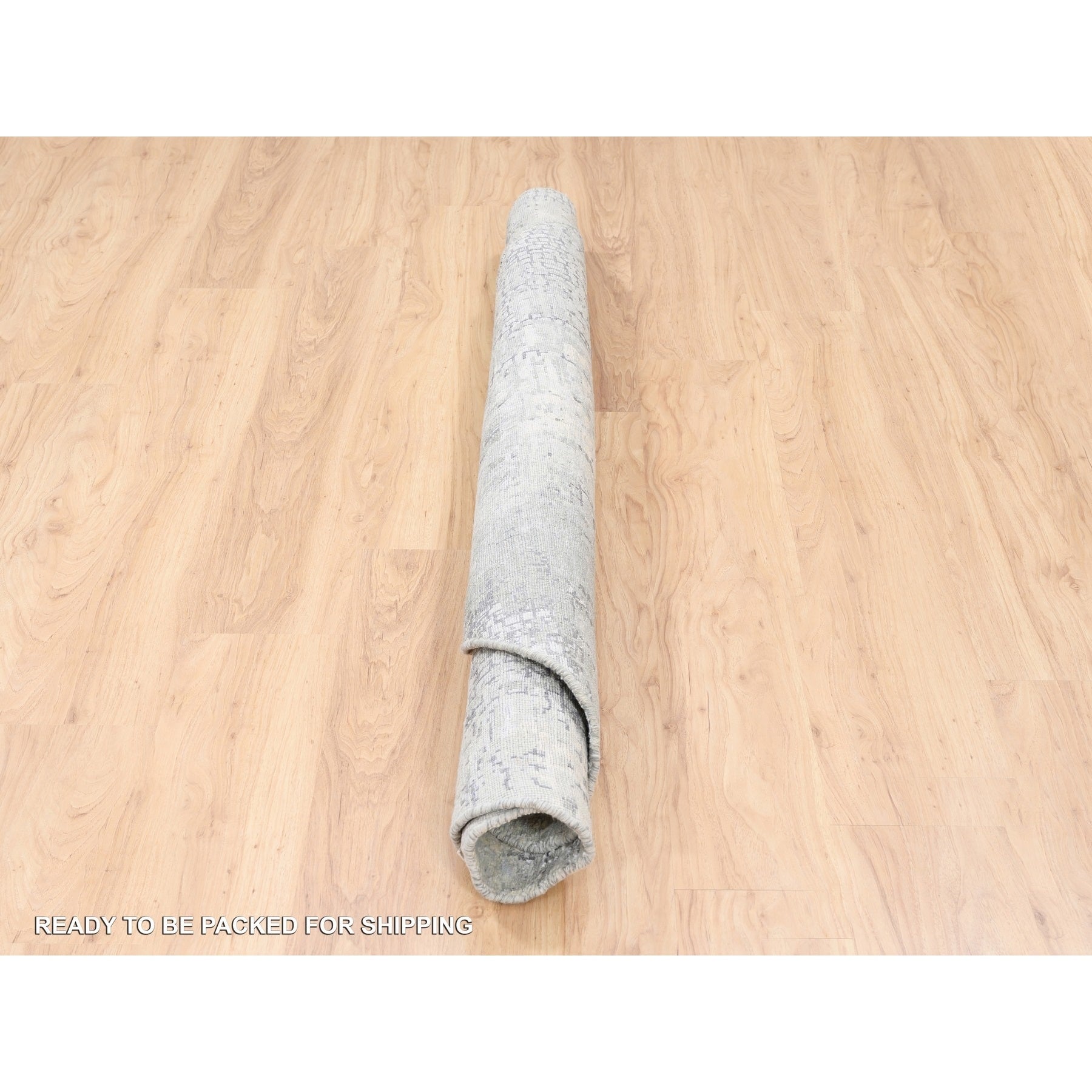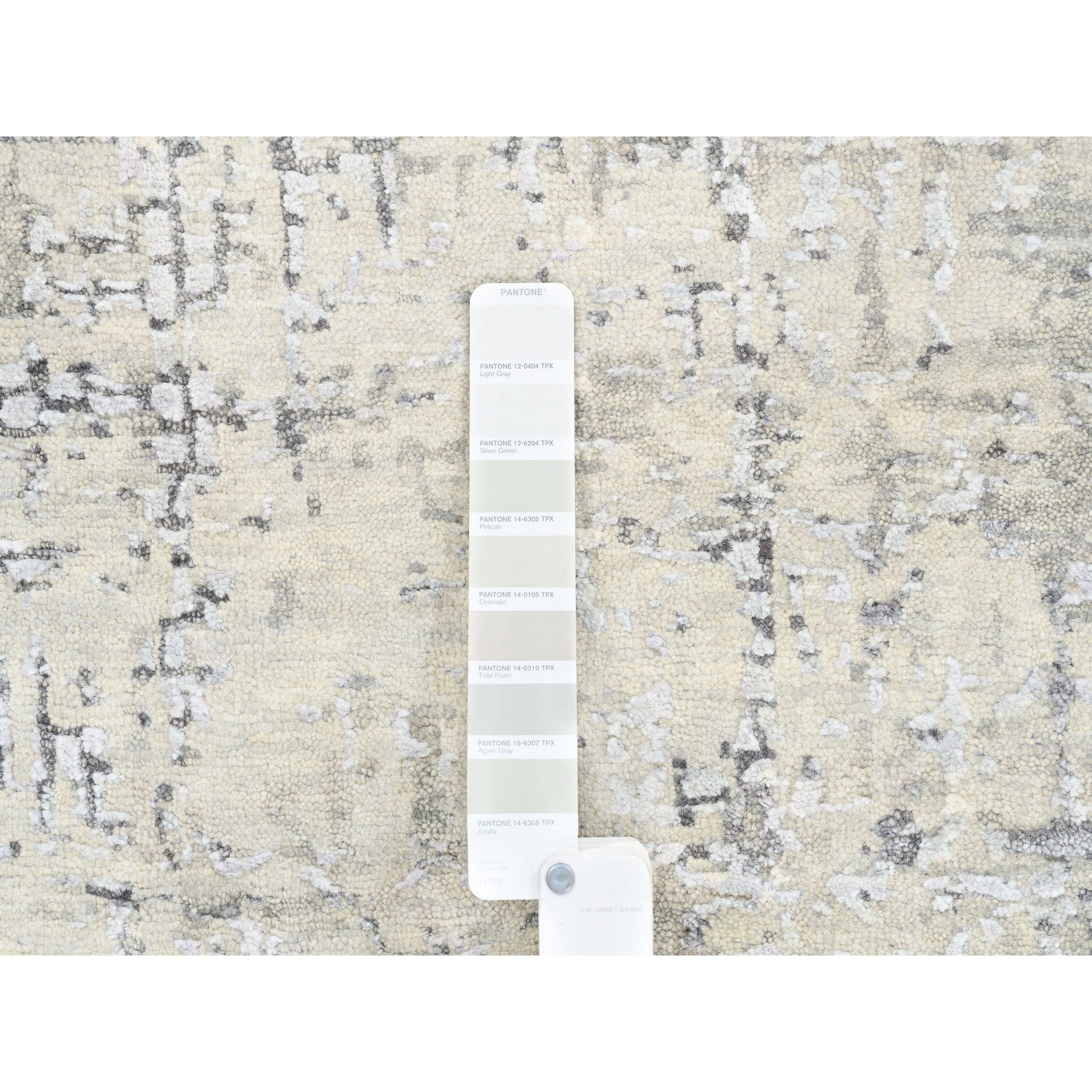 5'10"x5'10" Round Taupe Wool And Silk Abstract With Mosaic Design Hand Knotted Persian Knot Oriental Rug FWR376092