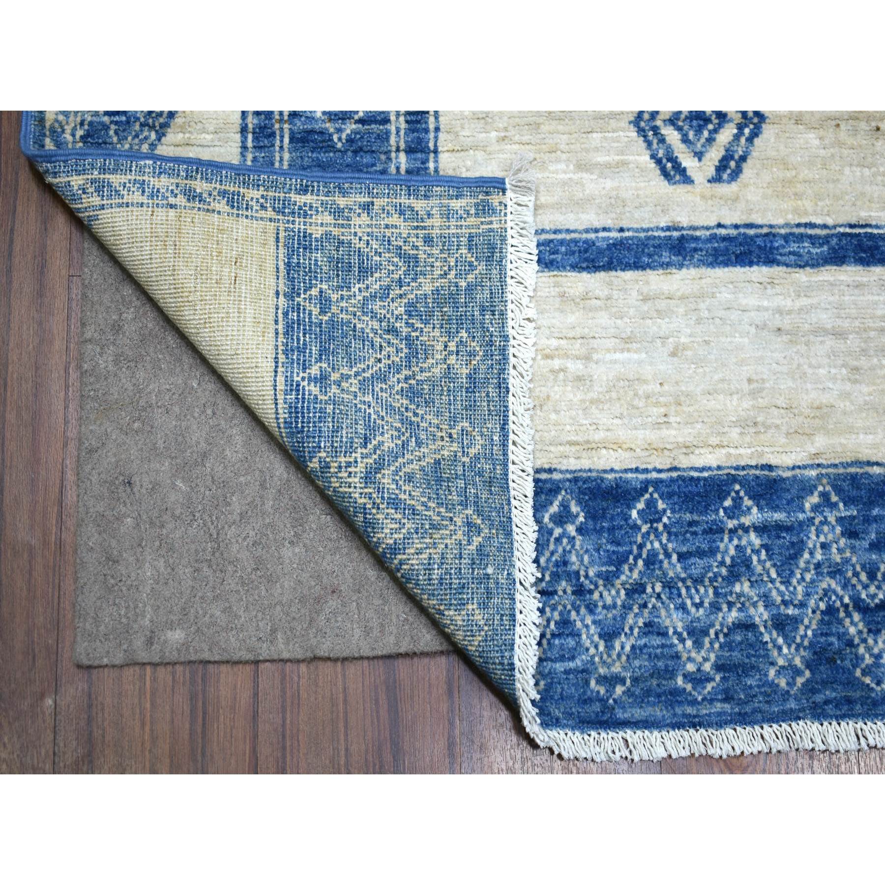 5'10"x8'9" Denim Blue, Fine Peshawar With Intricate Geometric Motifs, Hand Knotted, Densely Woven, Soft And Shiny Wool Oriental Rug FWR425604