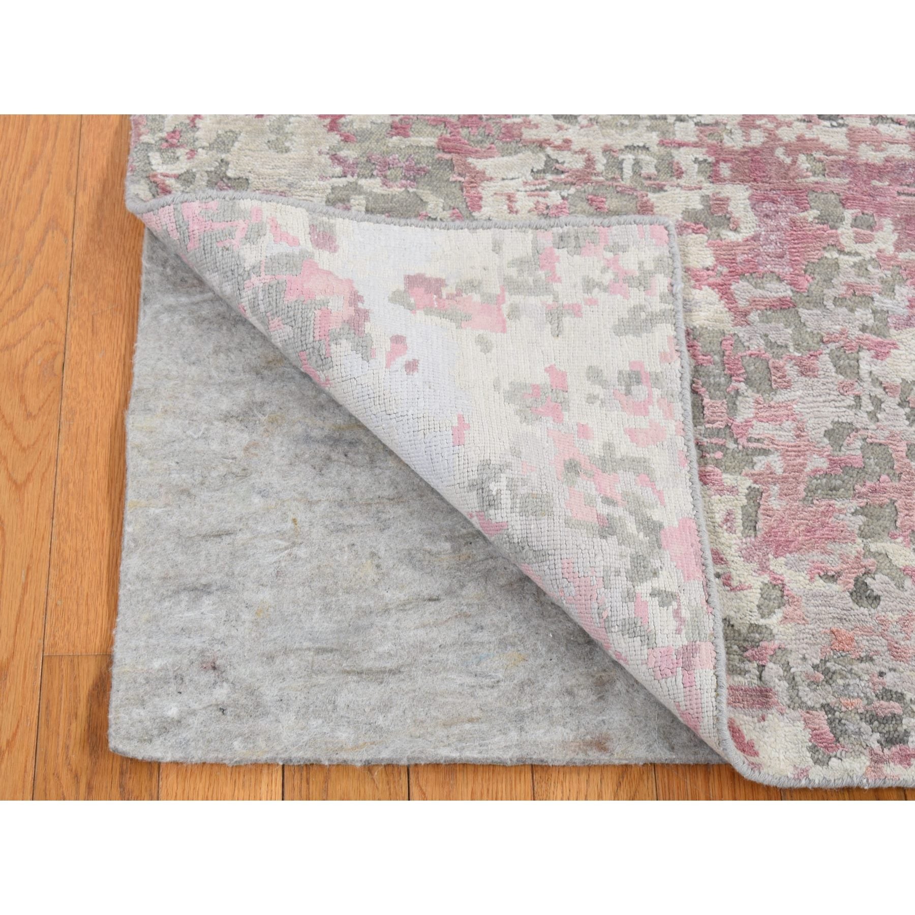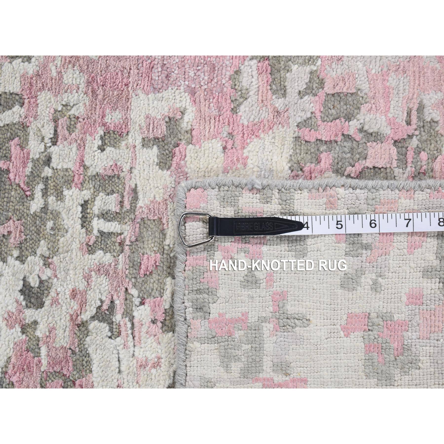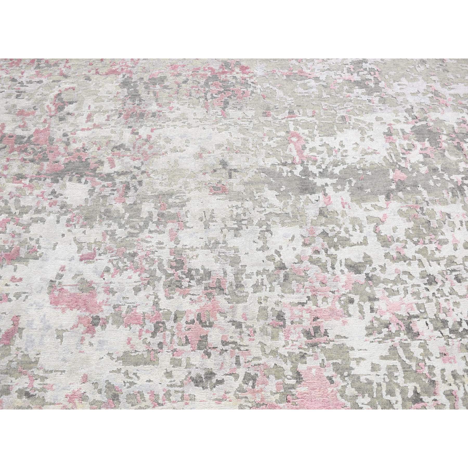5'10"x8'9" Pastel Pink, Hi-lo Pile, Abstract Design, Wool And Silk, Hand Knotted, Oriental Rug FWR485934