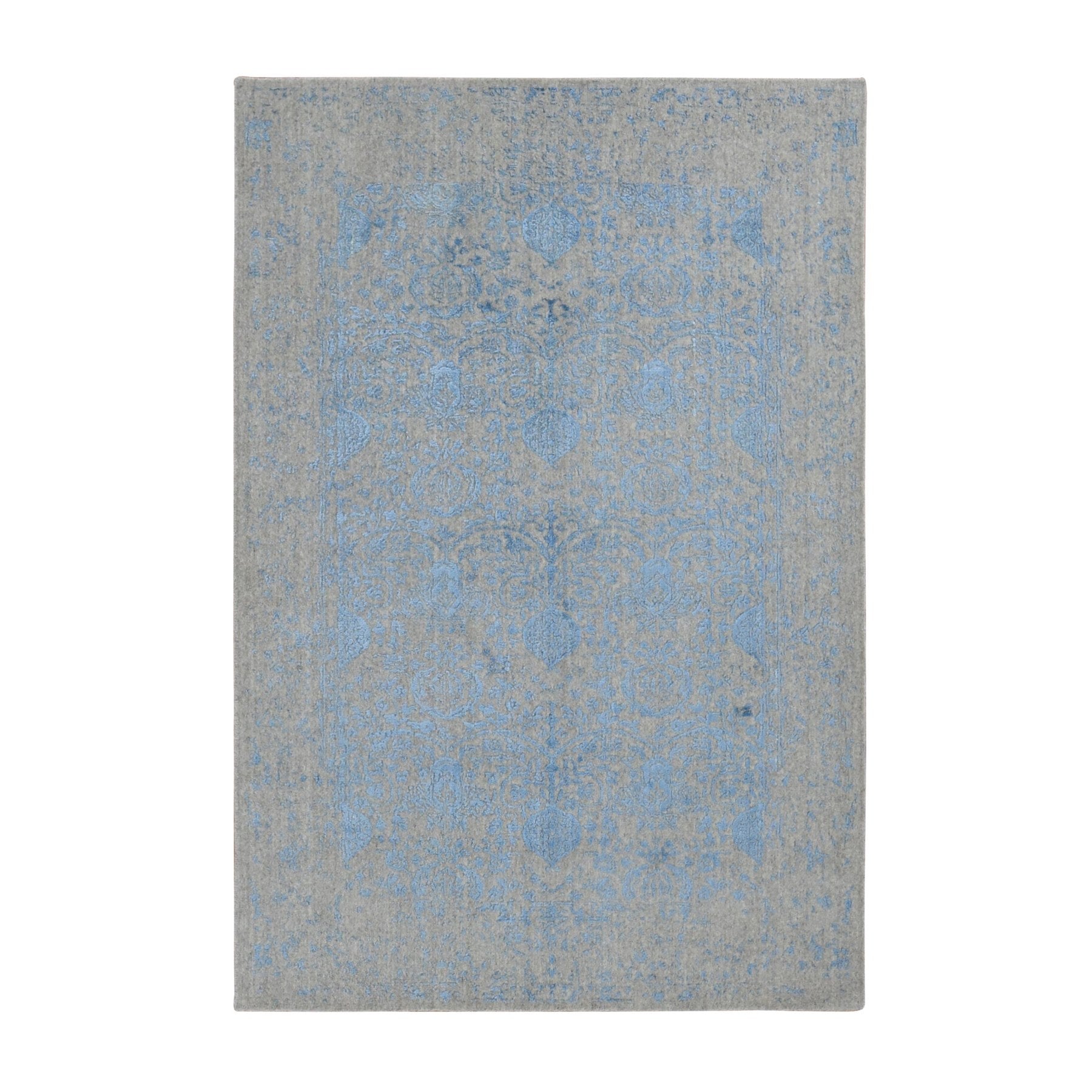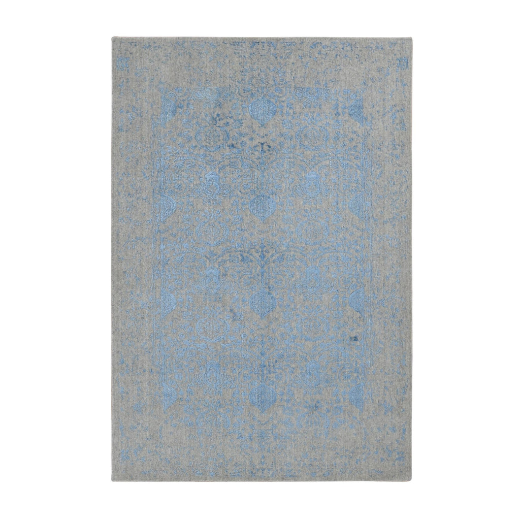 5'10"x8'9" Ruddy Blue, Hand Loomed, Broken Pomegranate Design, Tone On Tone, Oriental Rug FWR522114