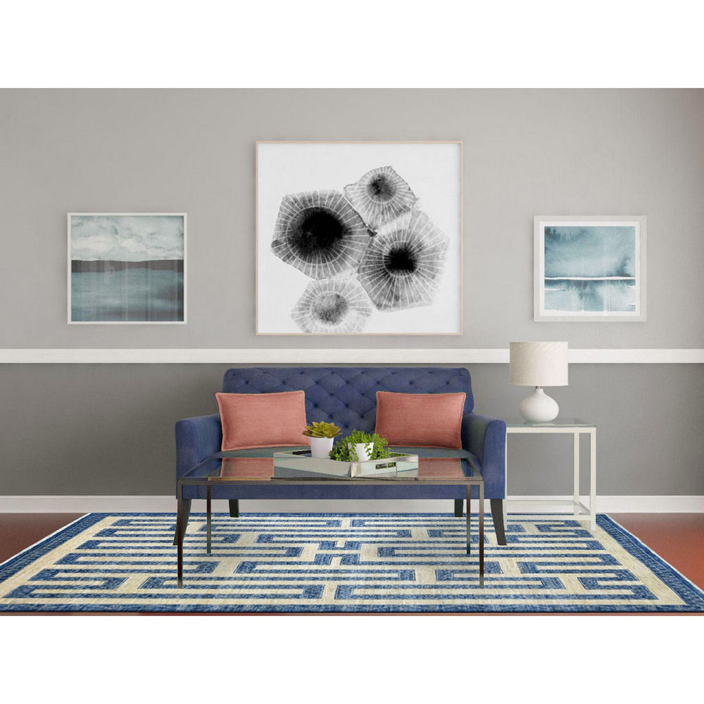 5'10"x8'9" Soft And Pliable Wool Hand Knotted Denim Blue Maze Design With Berber Influence Oriental Rug FWR421860