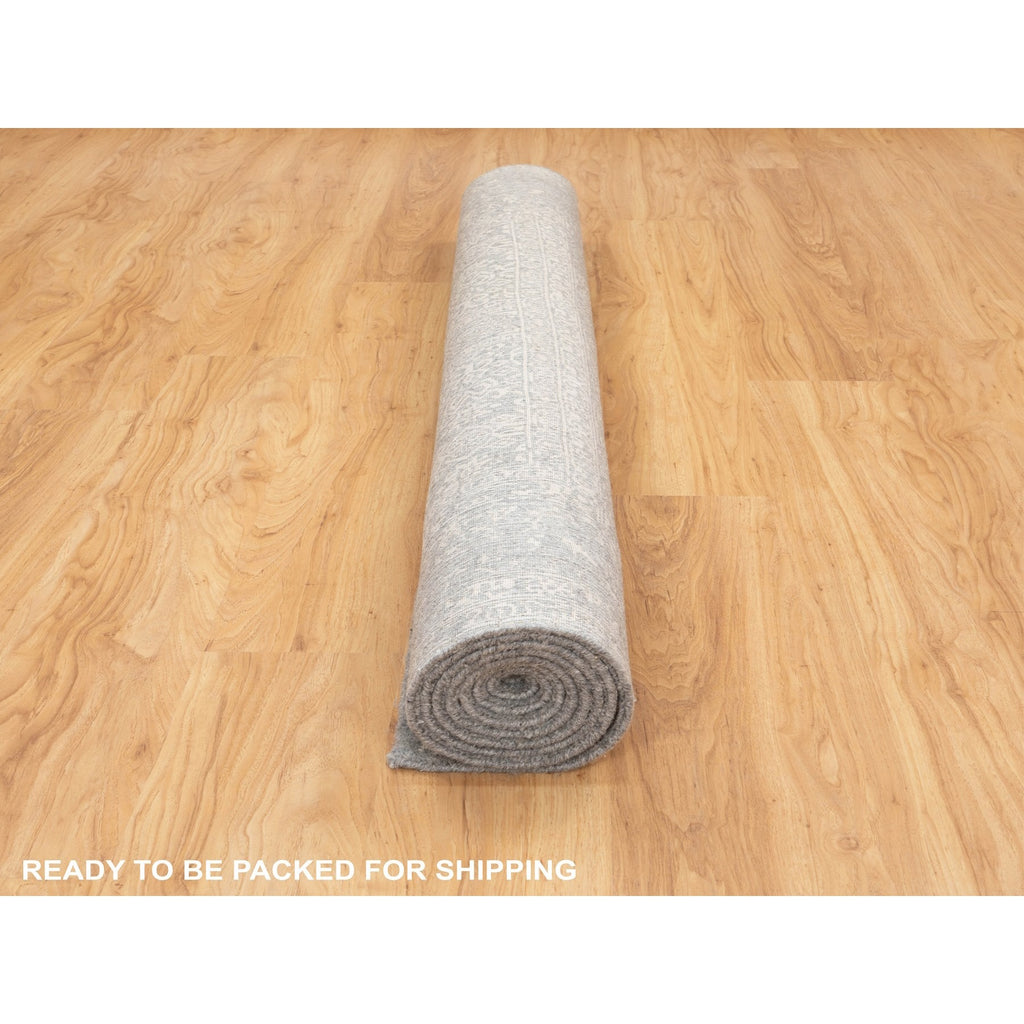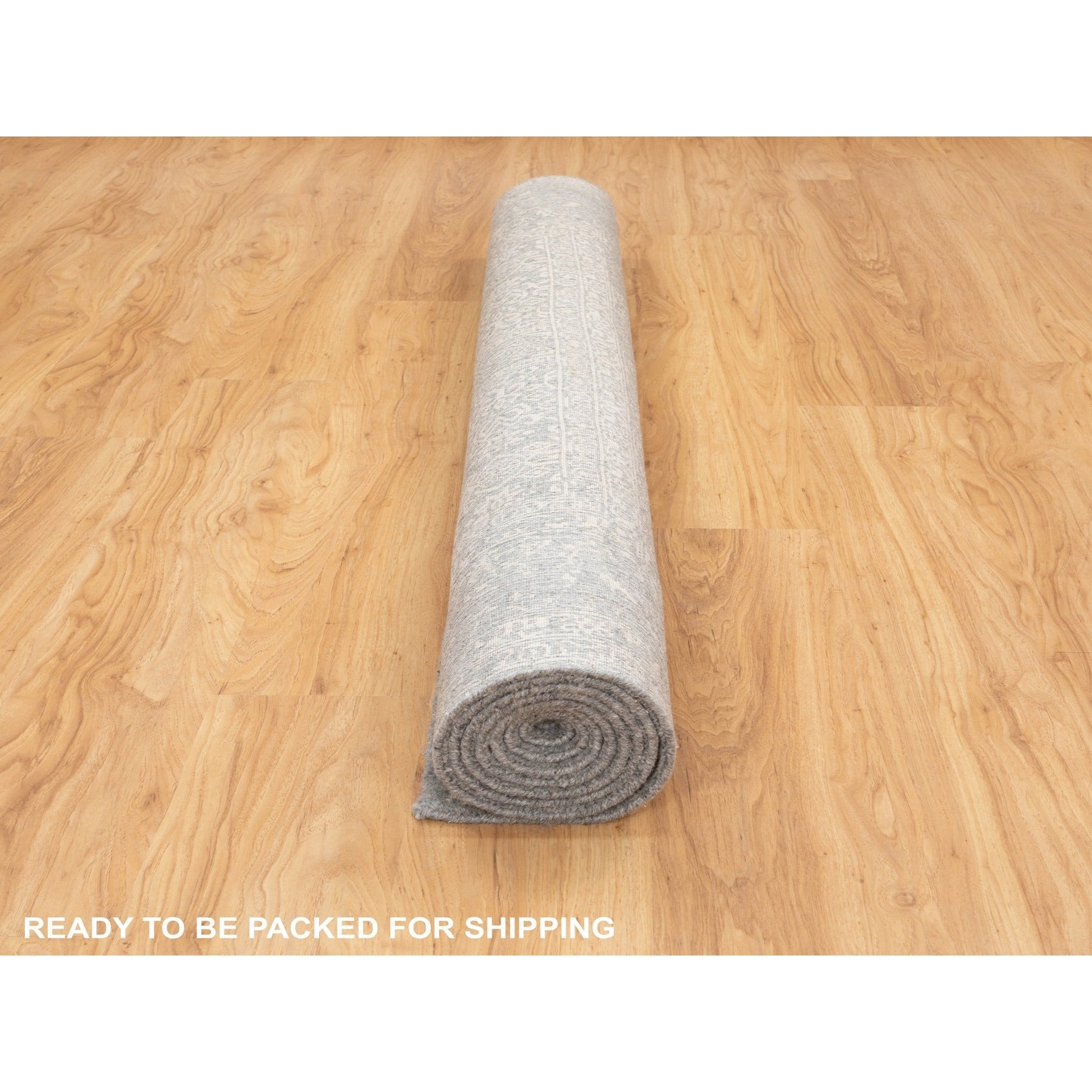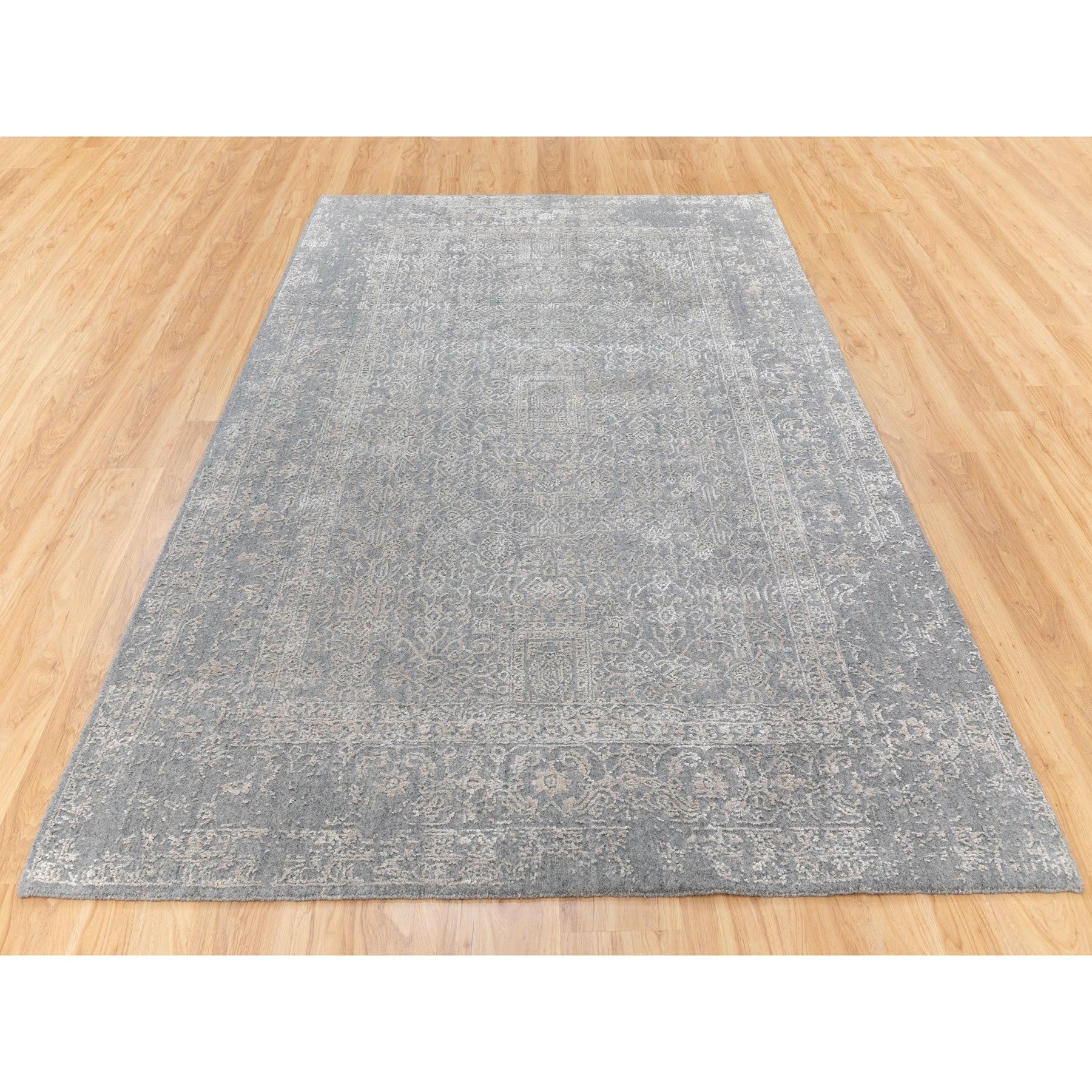 5'10"x9'1" Gray Fine Jacquard Hand Loomed Modern Wool And Art Silk Oriental Rug FWR350454