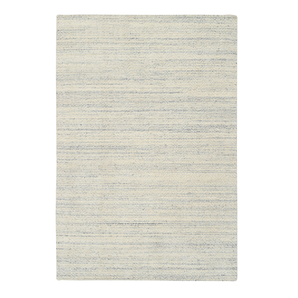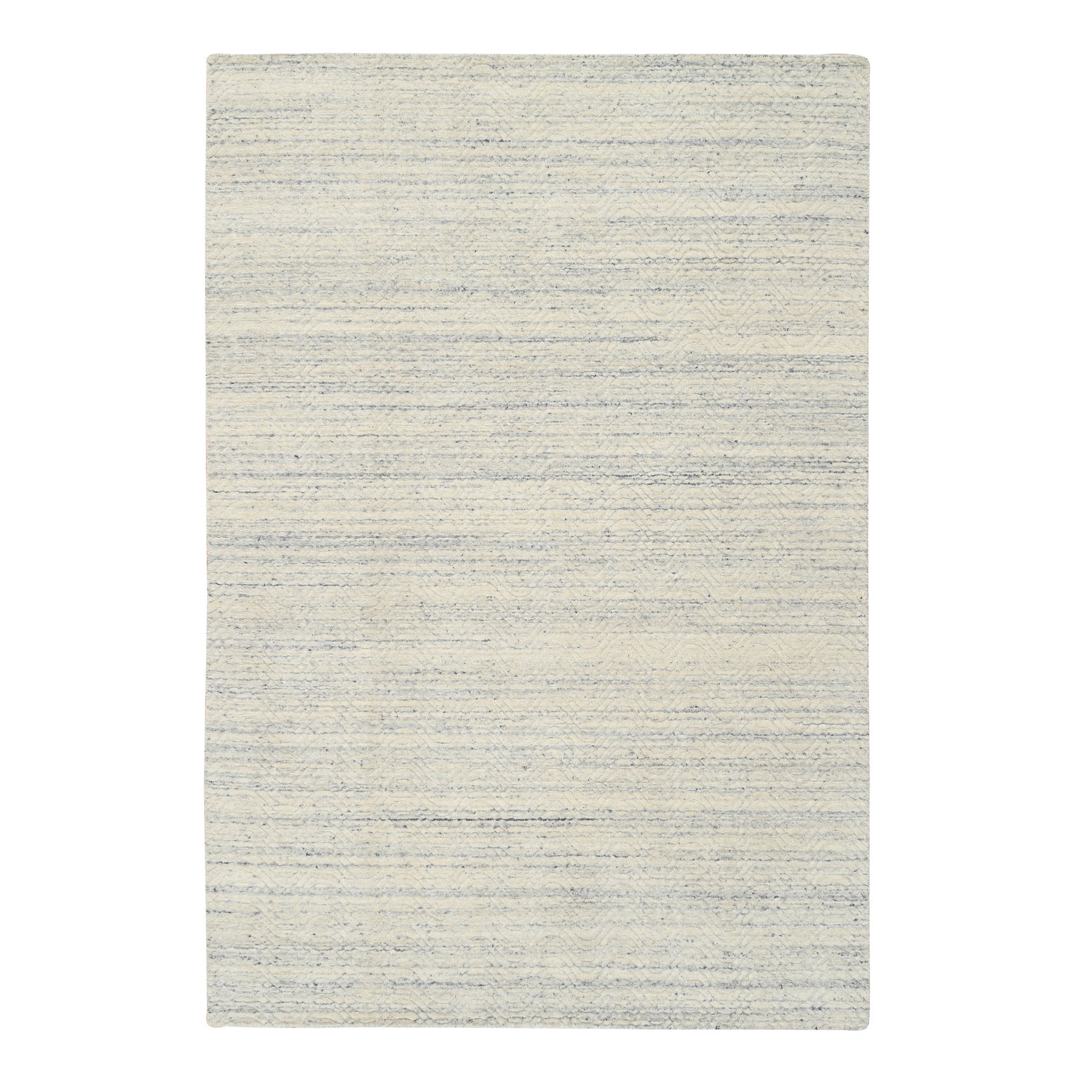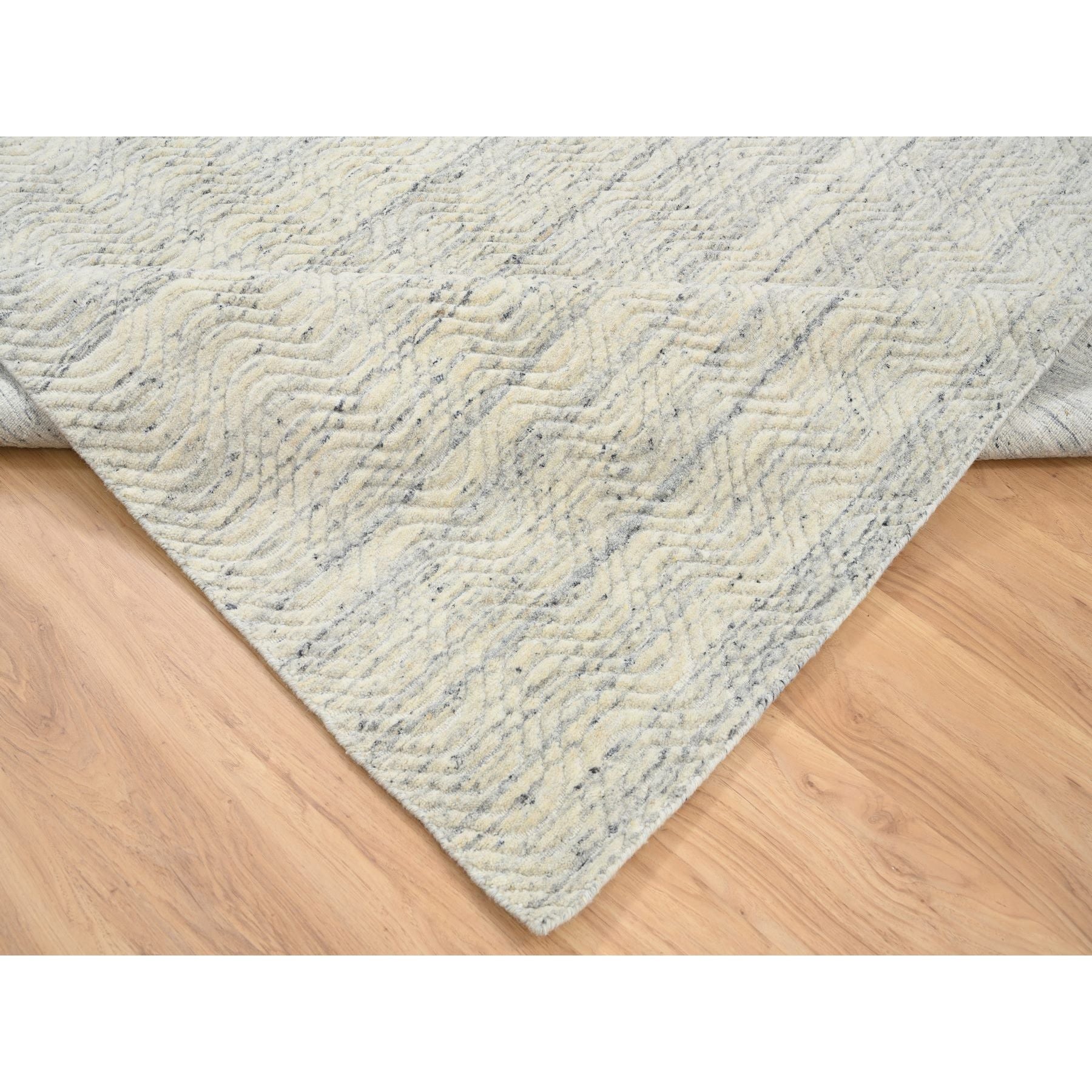 5'10"x9' Beige, Variegated Textured Modern Design, Natural Wool Hand Loomed, Oriental Rug FWR387636