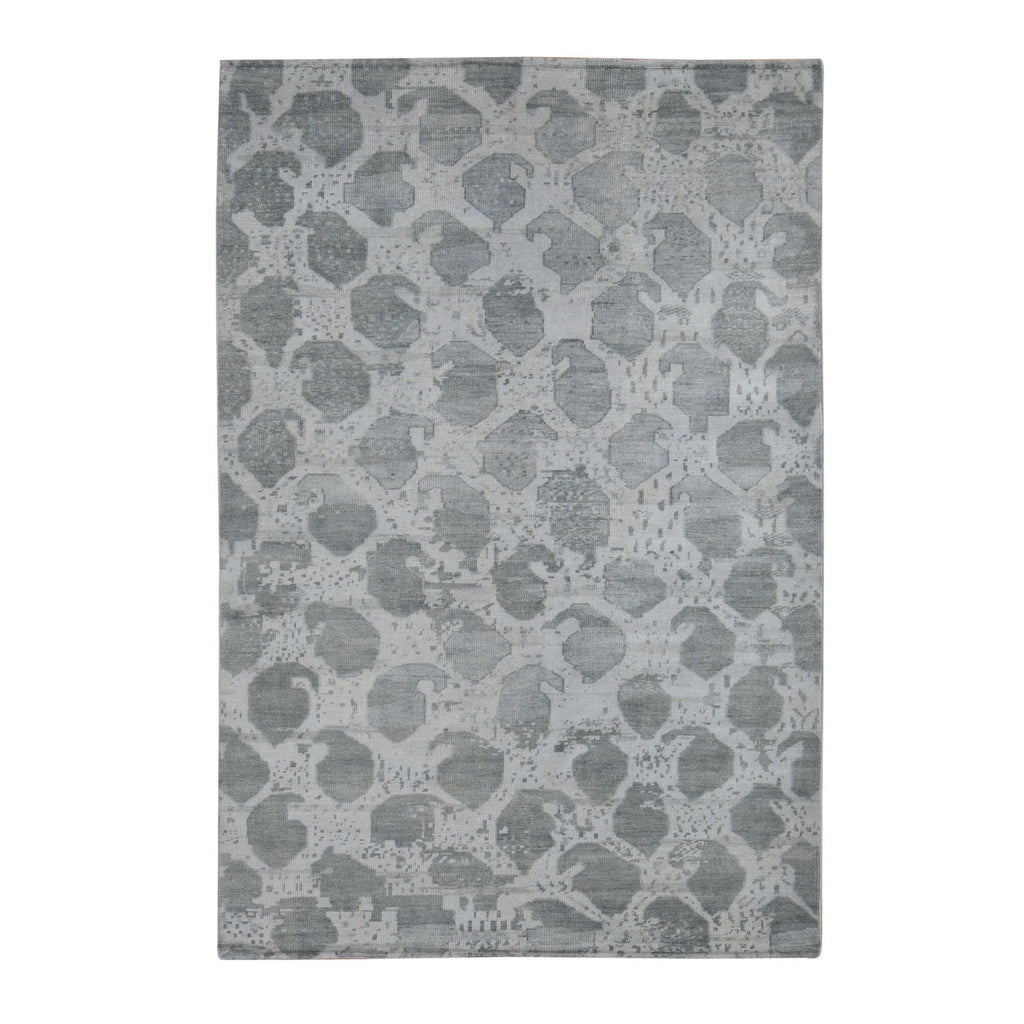 5'10"x9' Gainsboro Gray, Oushak Repetitive Botteh Design With Washed Out Colors, Pure Wool, Hand Knotted, Oriental Rug FWR524562