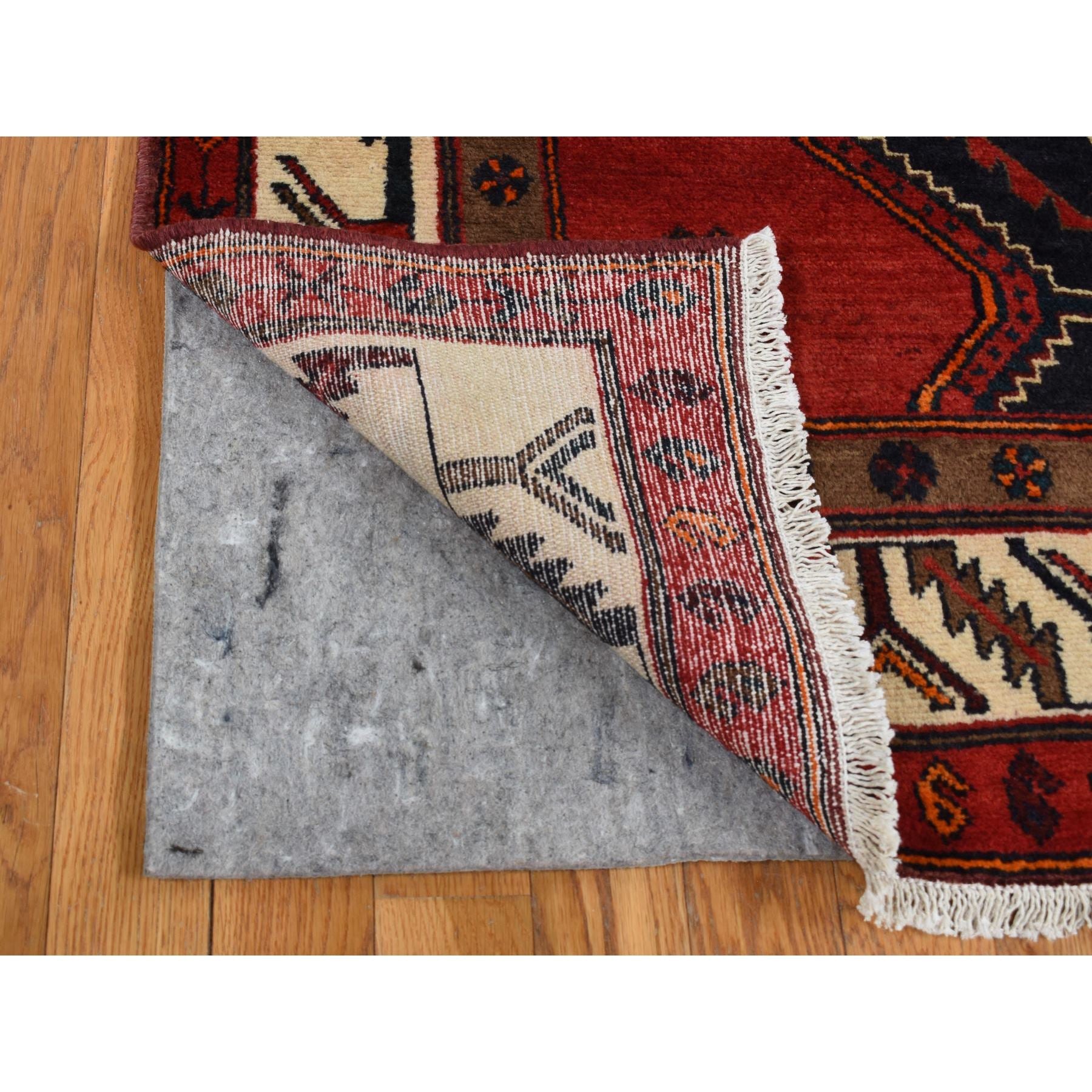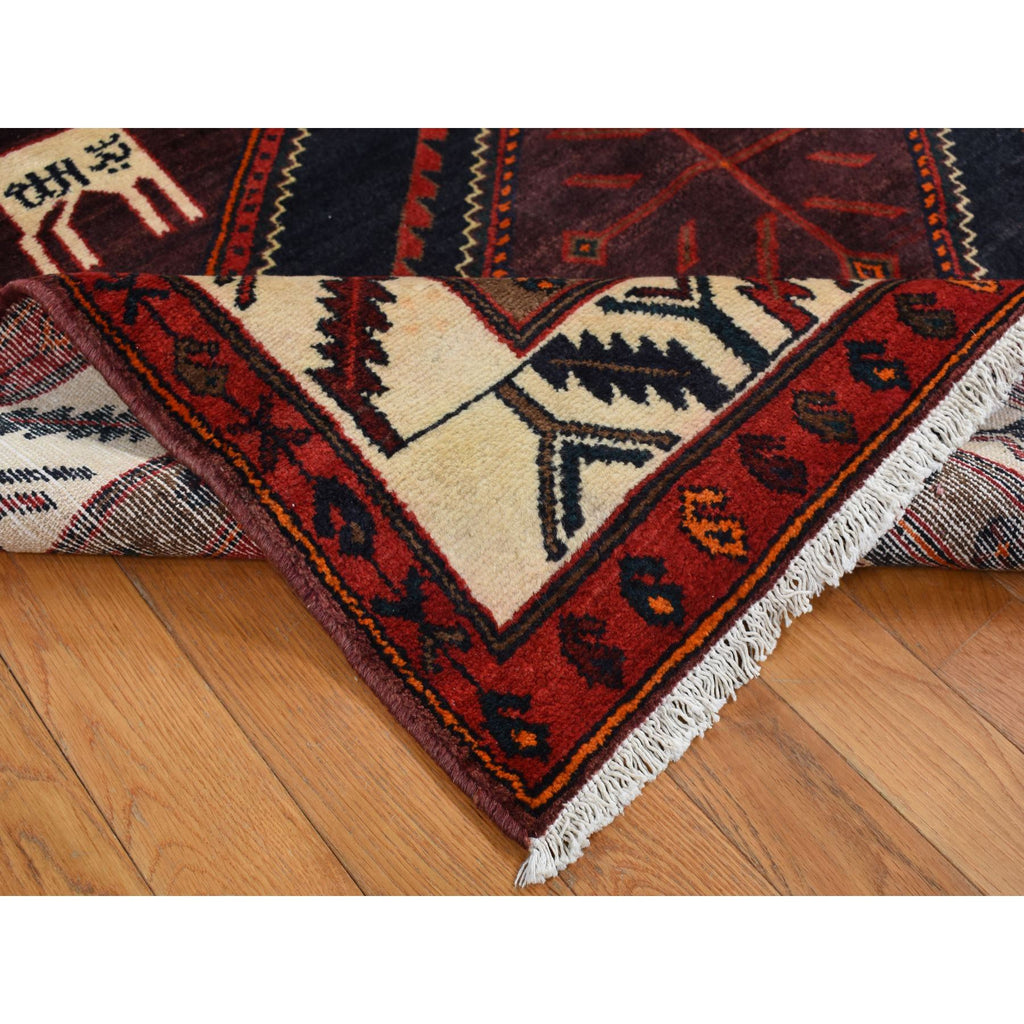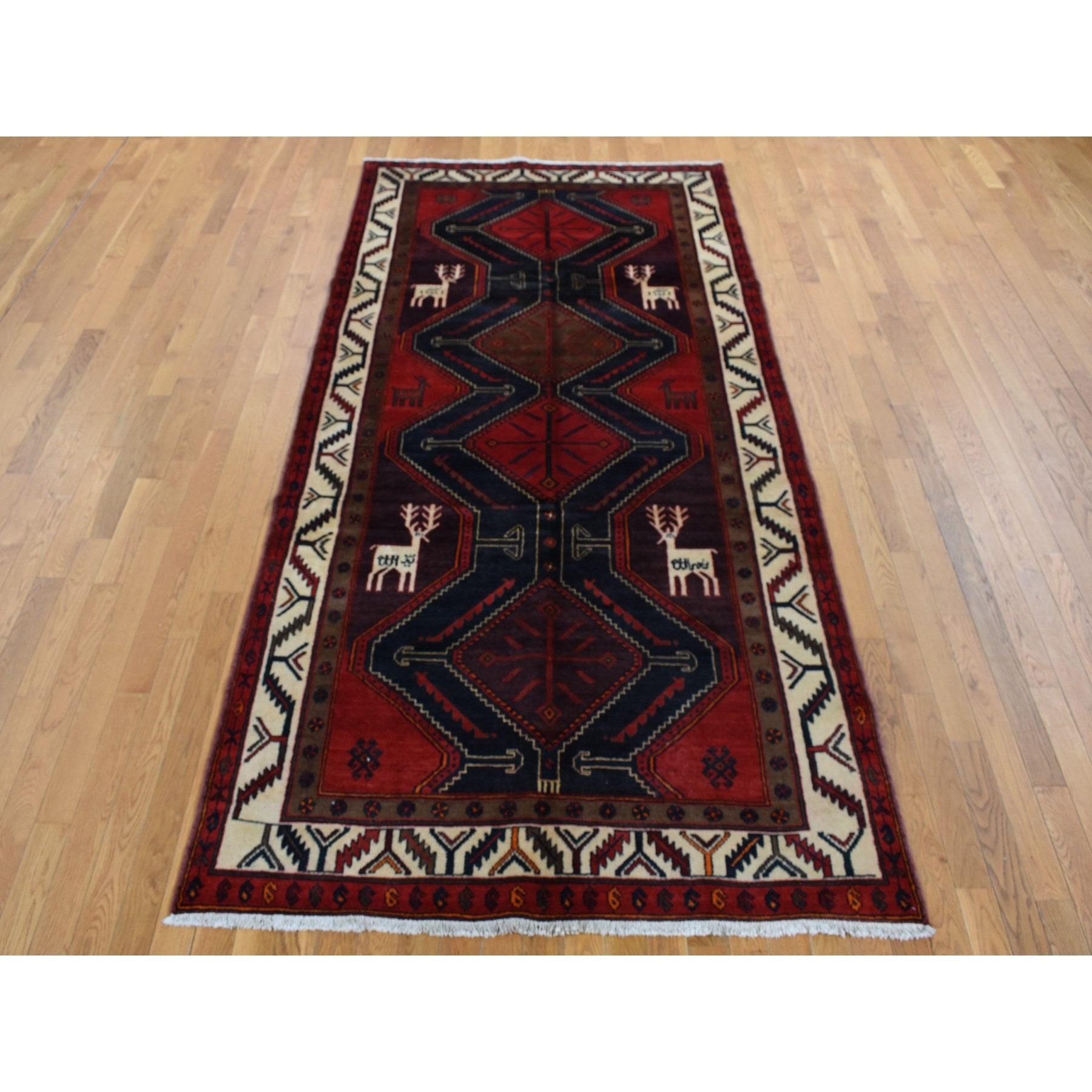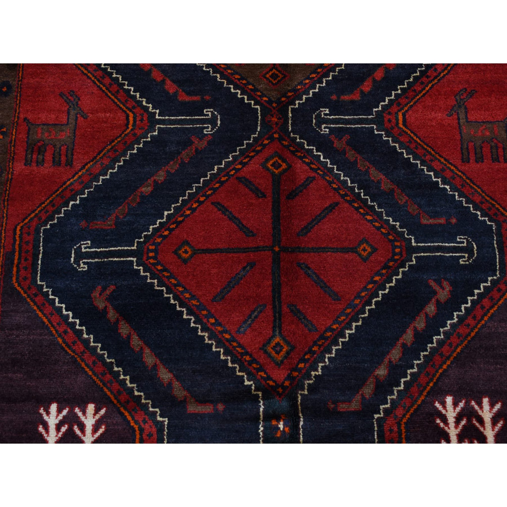 5'2"x10'6" Maroon Red, New Persian With Deer Figurines, Pure Wool, Hand Knotted, Gallery Size Runner Oriental Rug FWR525144
