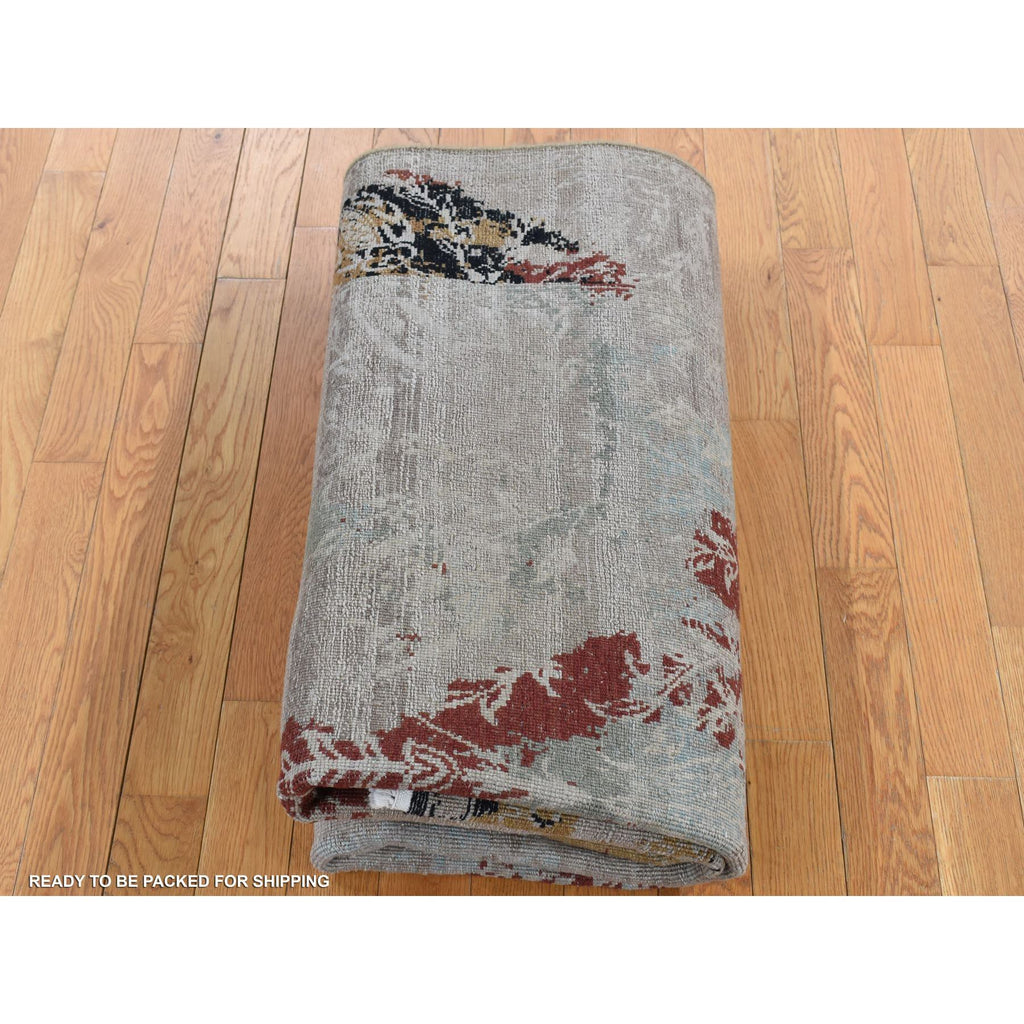 5'2"x7'1" Stone Gray, Broken Tulip Design, Silk With Textured Wool, Hand Knotted, Oriental Rug FWR485310