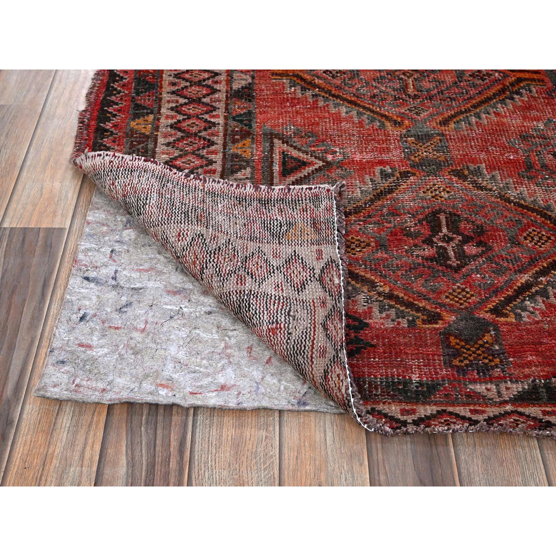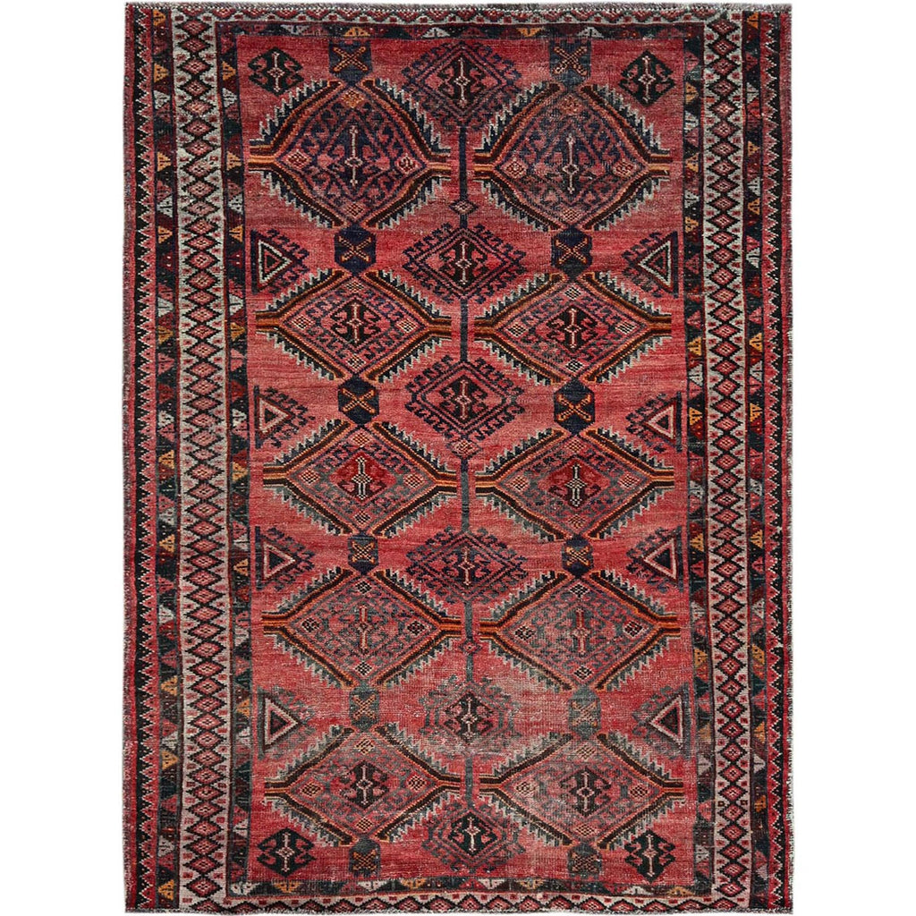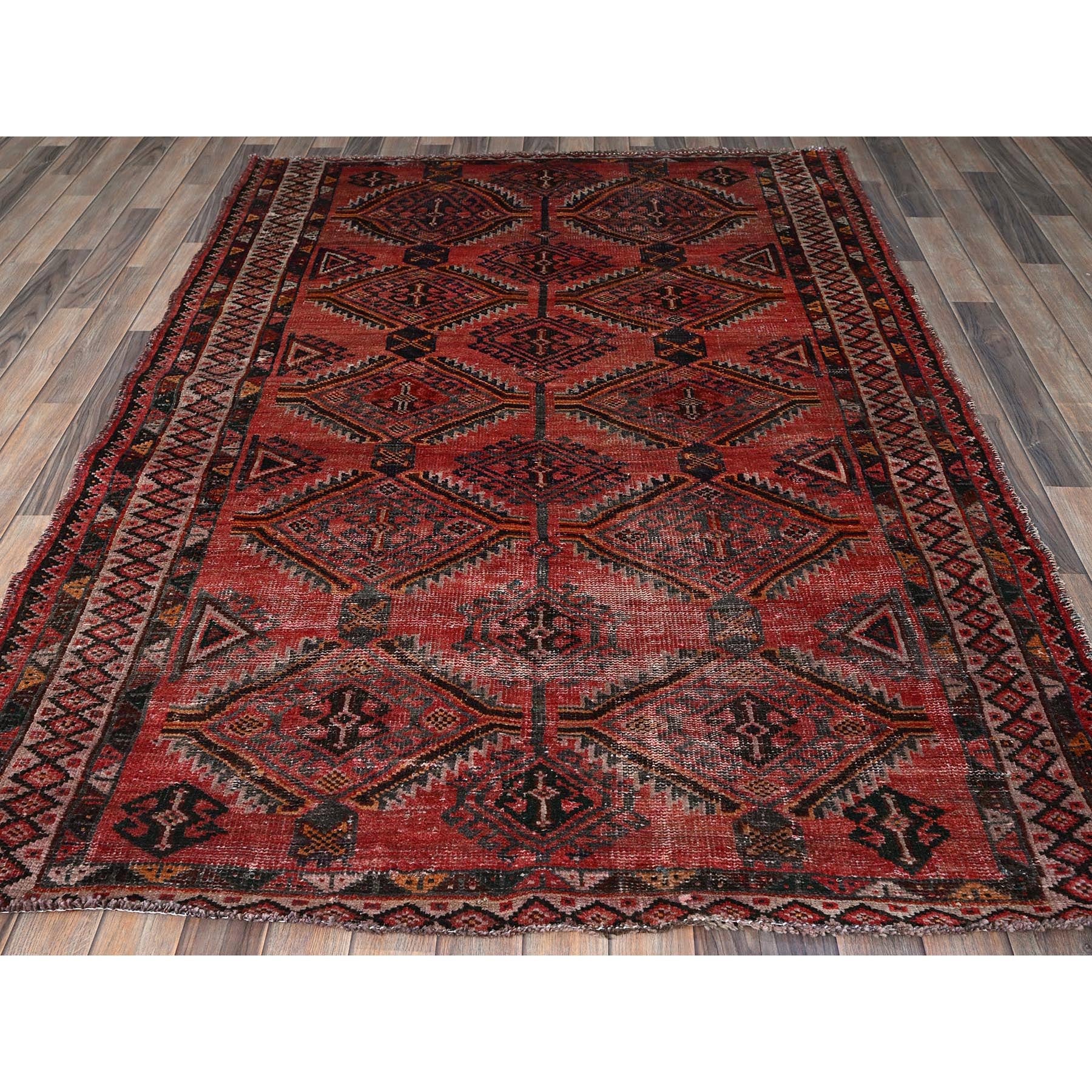 5'2"x7'2" Blush Red, Vintage Persian Baluch With Serrated Geometric Pattern, Worn And Distressed, Shaved Low, Zero Pile, Sides And Ends Professionally Secured, Hand Knotted, 100% Wool, Oriental Rug FWR4854