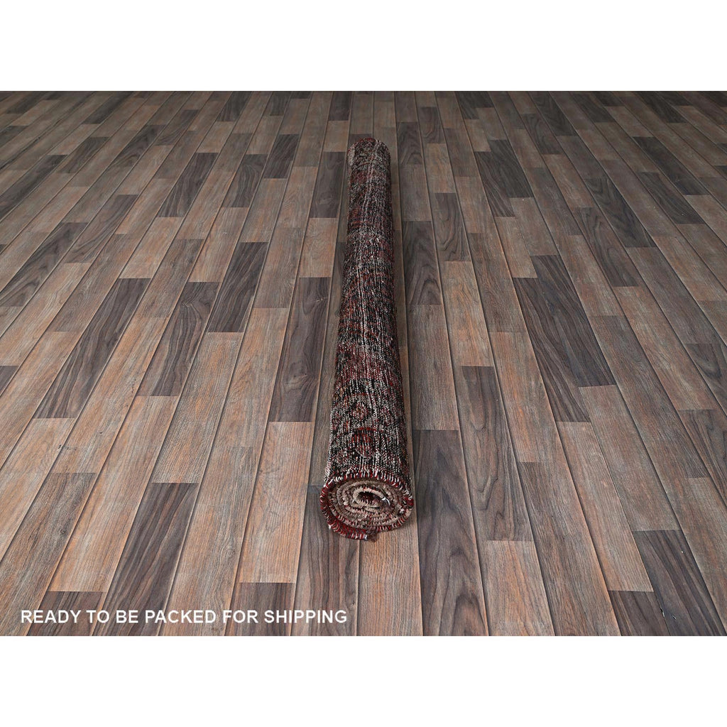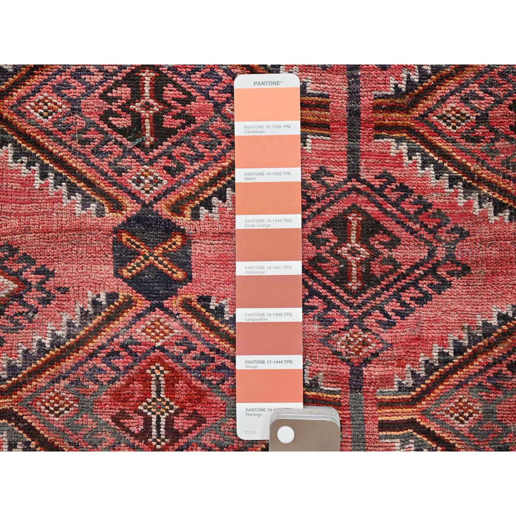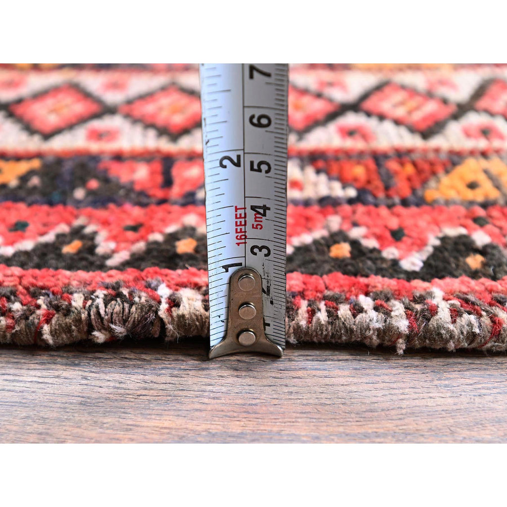 5'2"x7'2" Blush Red, Vintage Persian Baluch With Serrated Geometric Pattern, Worn And Distressed, Shaved Low, Zero Pile, Sides And Ends Professionally Secured, Hand Knotted, 100% Wool, Oriental Rug FWR4854
