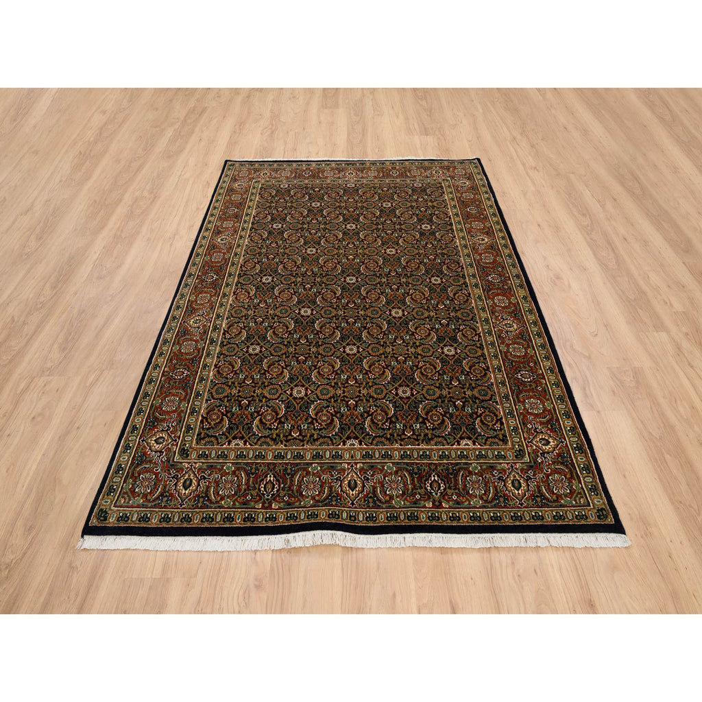 5'2"x7'4" Ink Black, Hand Knotted Herati With All Over Design, 250 Kpsi Dense Weave Wool, Oriental Rug FWR384750