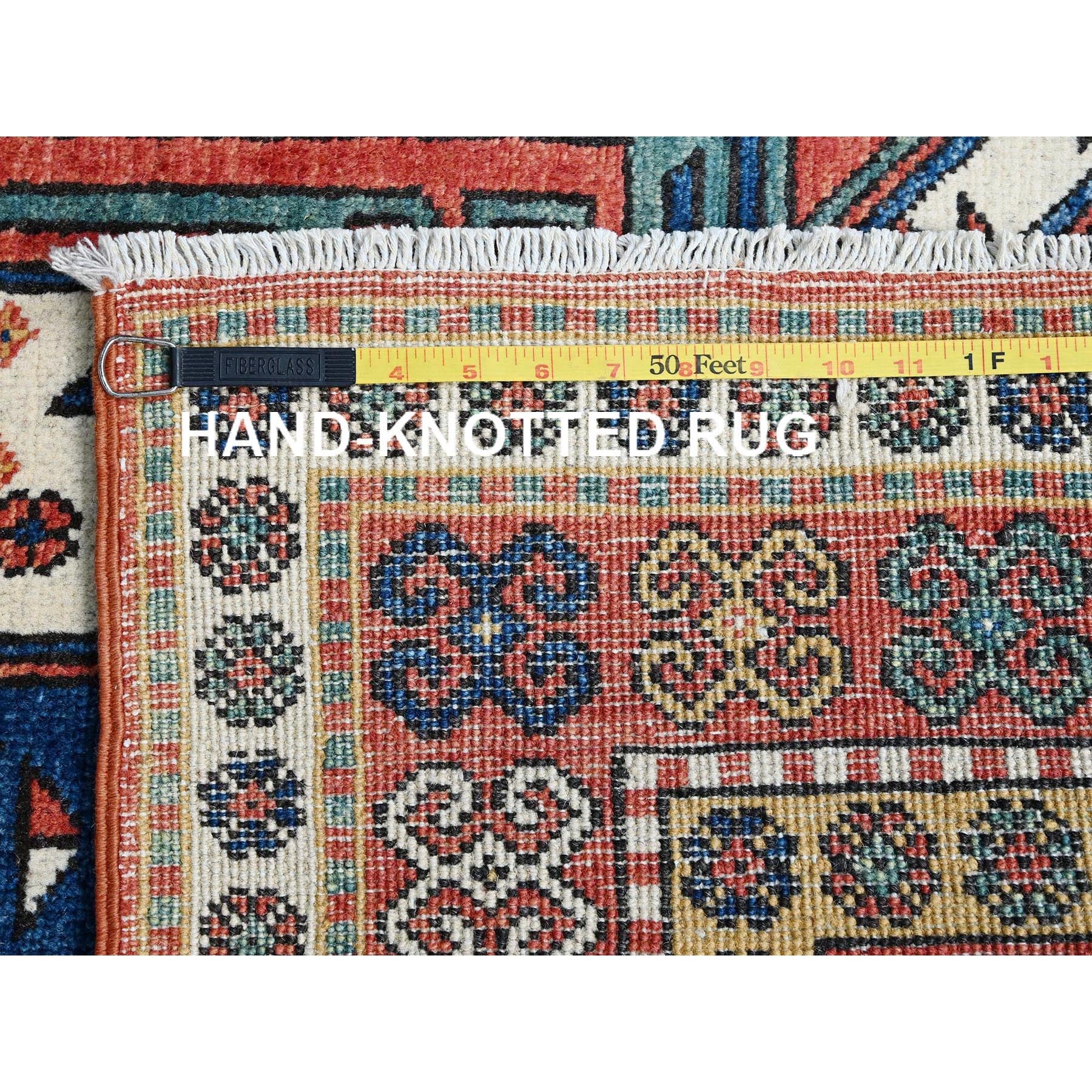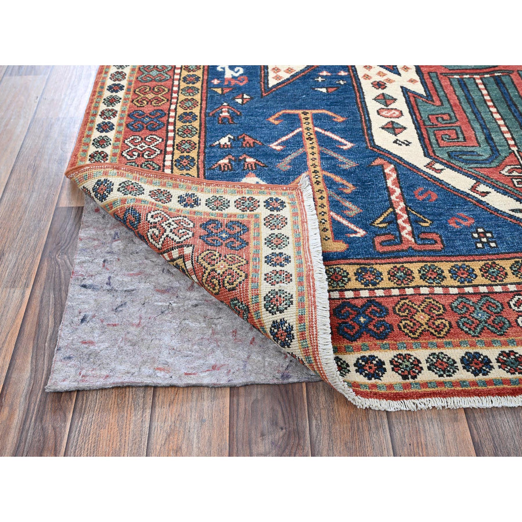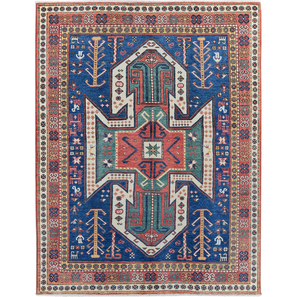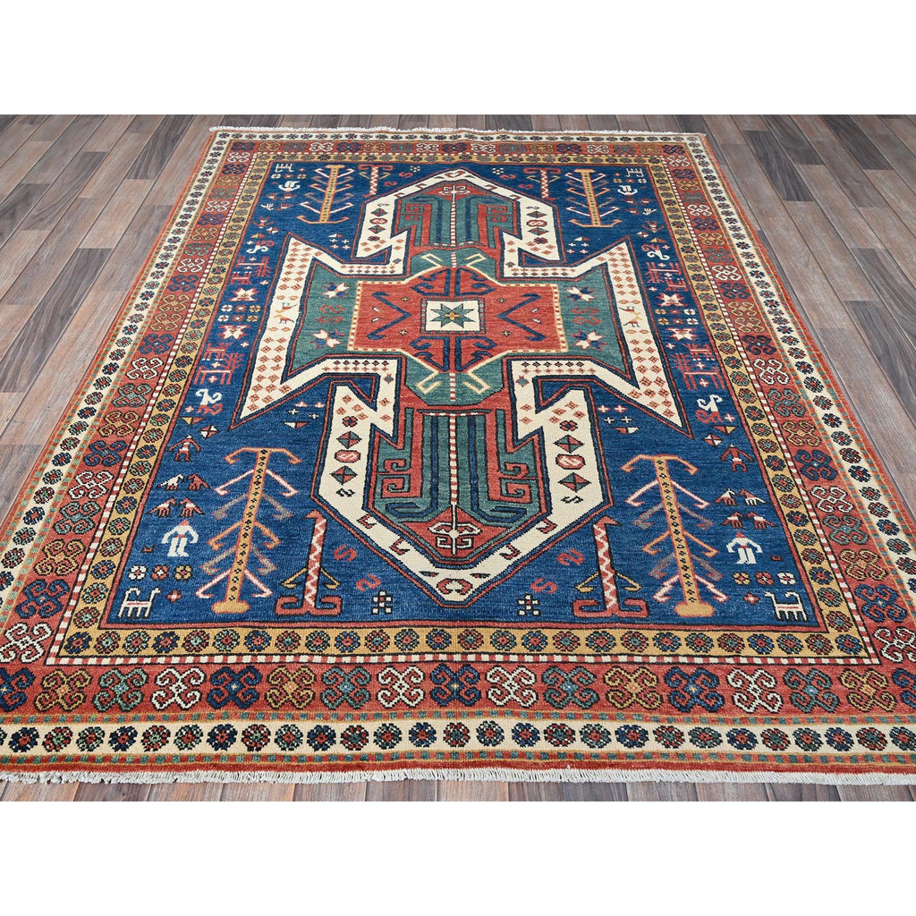 5'2"x7' Imperial Blue, Swan Kazak With Small Animal Figurines, Hand Knotted, Soft And Velvety Wool, Denser Weave, Vegetable Dyes, Oriental Rug FWR3222