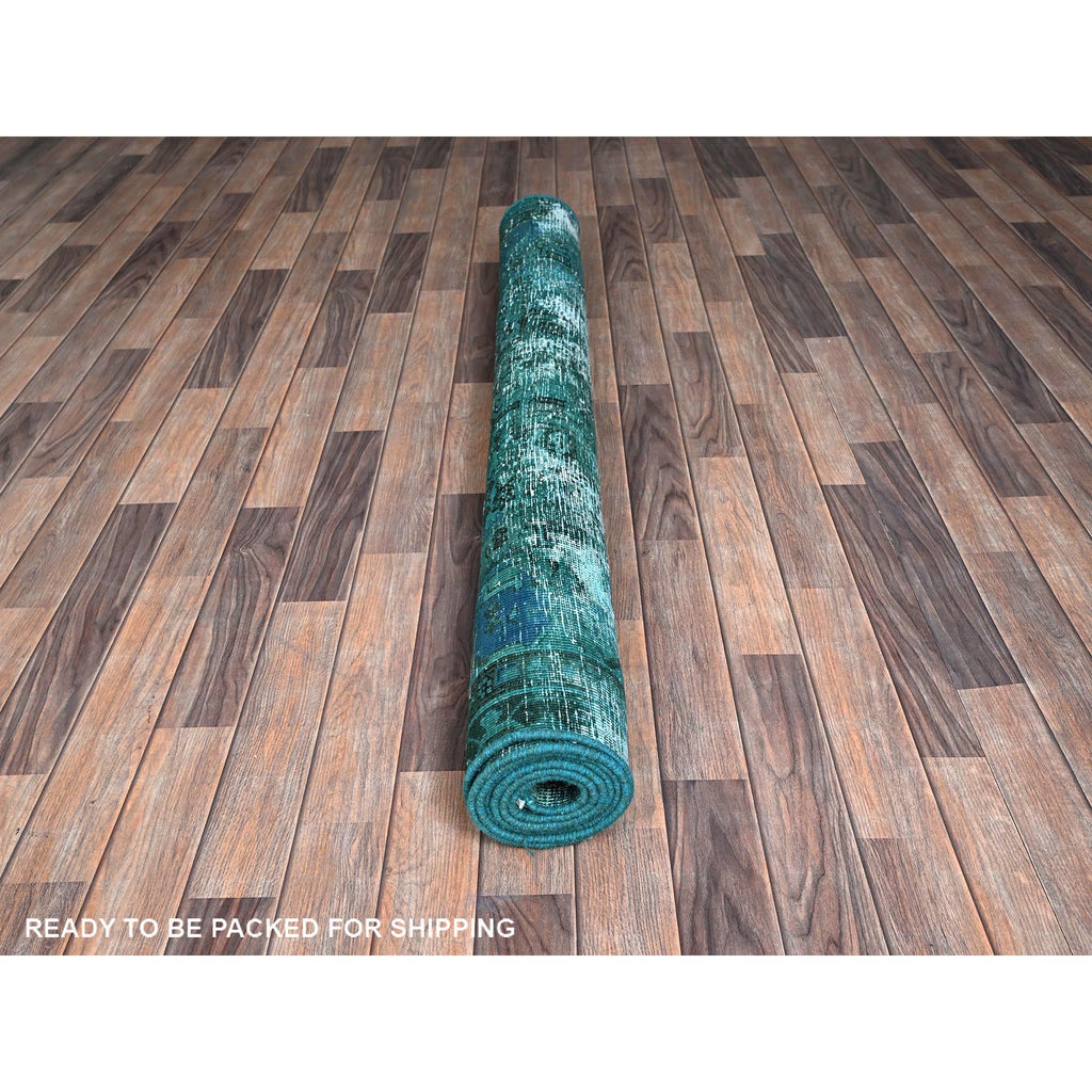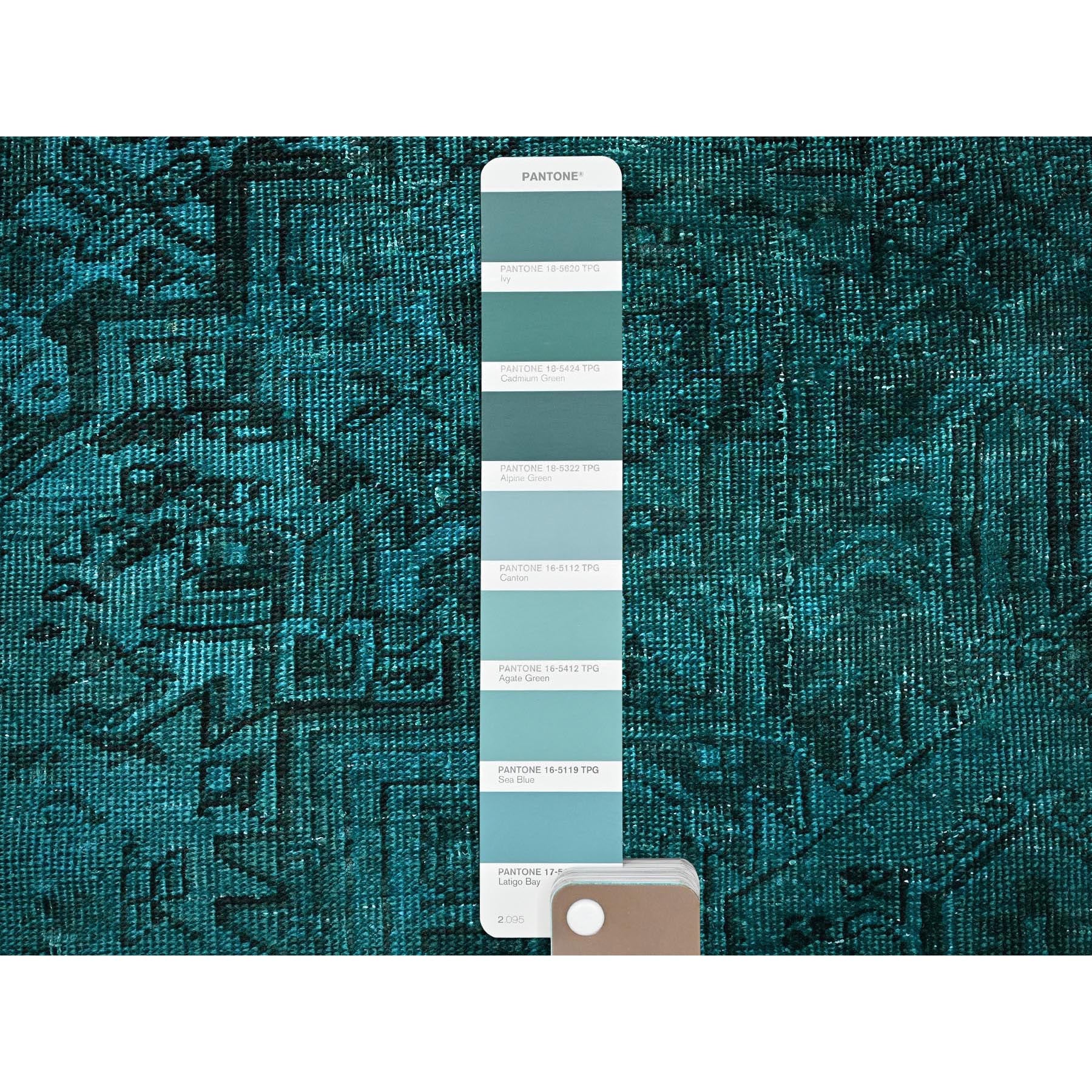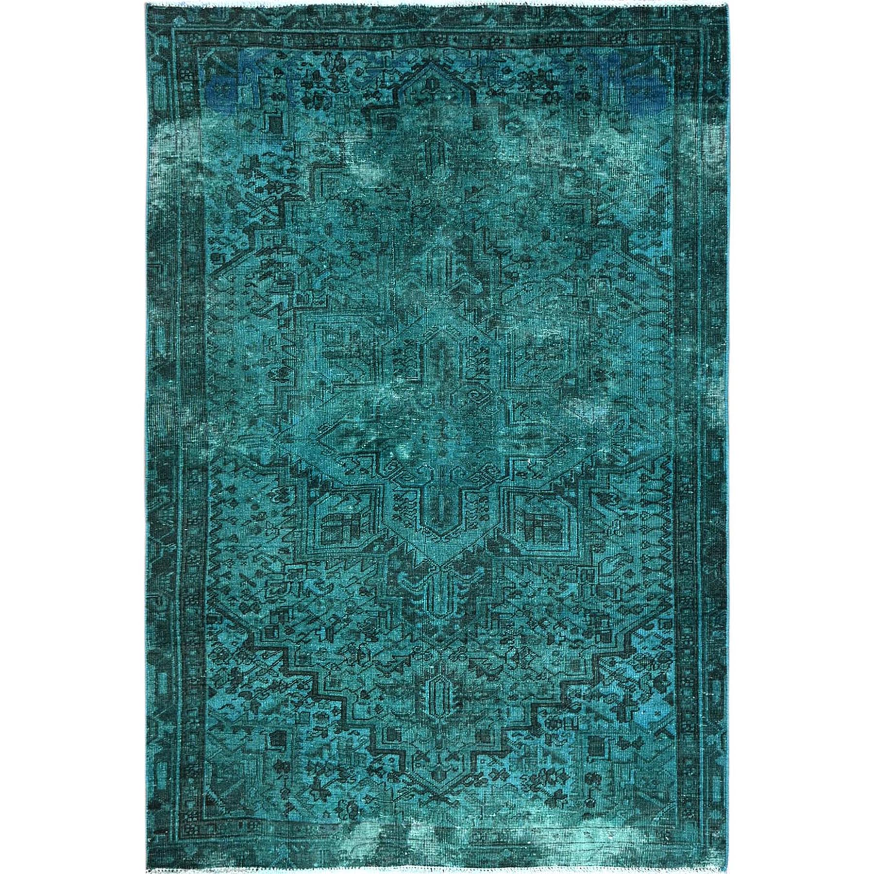 5'5"x8'3" Teal Overdyed, Semi Antique Persian Heriz With Areas Of Wear, Worn Down, Sheared Low, Sides And Ends Professionally Secured, Hand Knotted, 100% Wool, Oriental Rug FWR7728