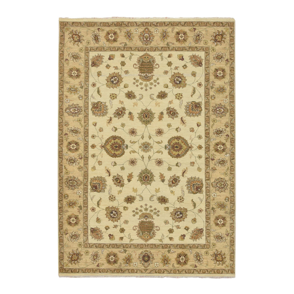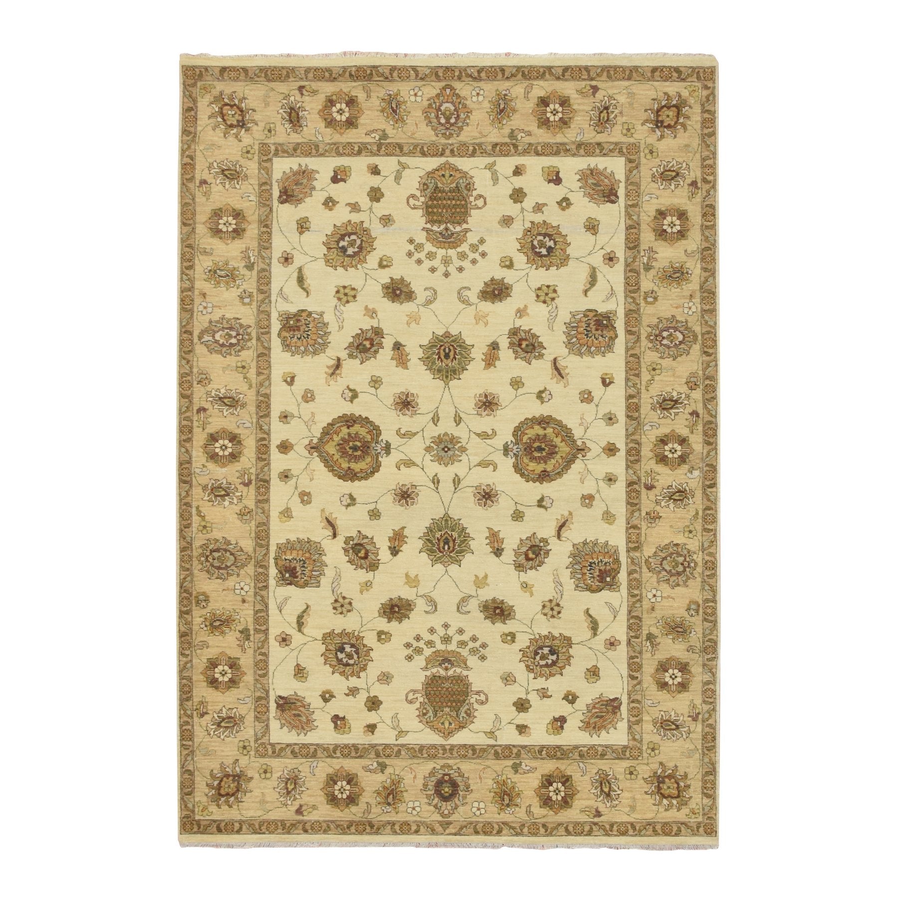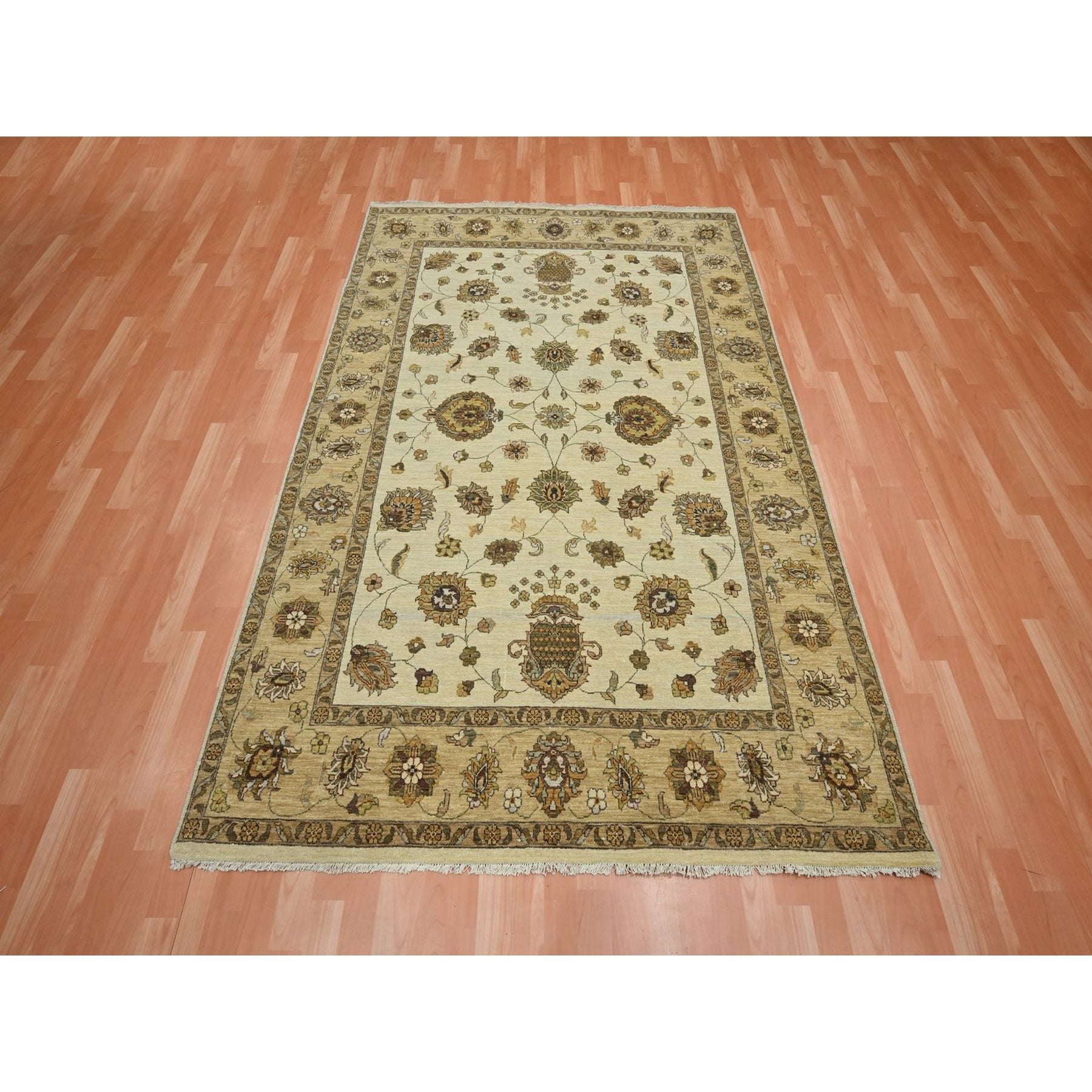 5'6"x8' Boulder Ivory, Agra With Ziegler Design, Colorful Leaf Pattern, Hand Knotted, Pure Wool, Zero Pile, Oriental Rug FWR458154