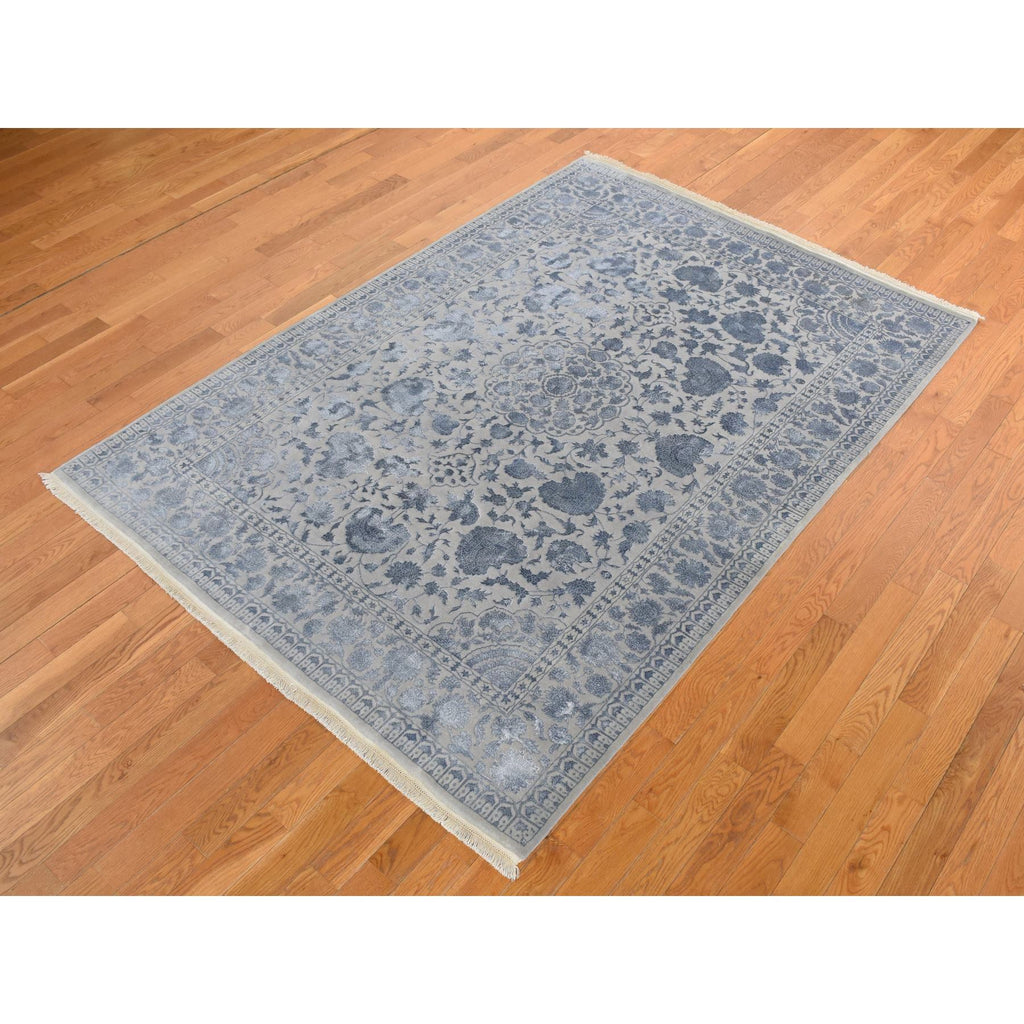 5'7"x7'10" Silk Gray, Kashan, 250 Kpsi, Half Wool Half Silk, Hand Knotted, Soft To The Touch, Oriental Rug FWR485892