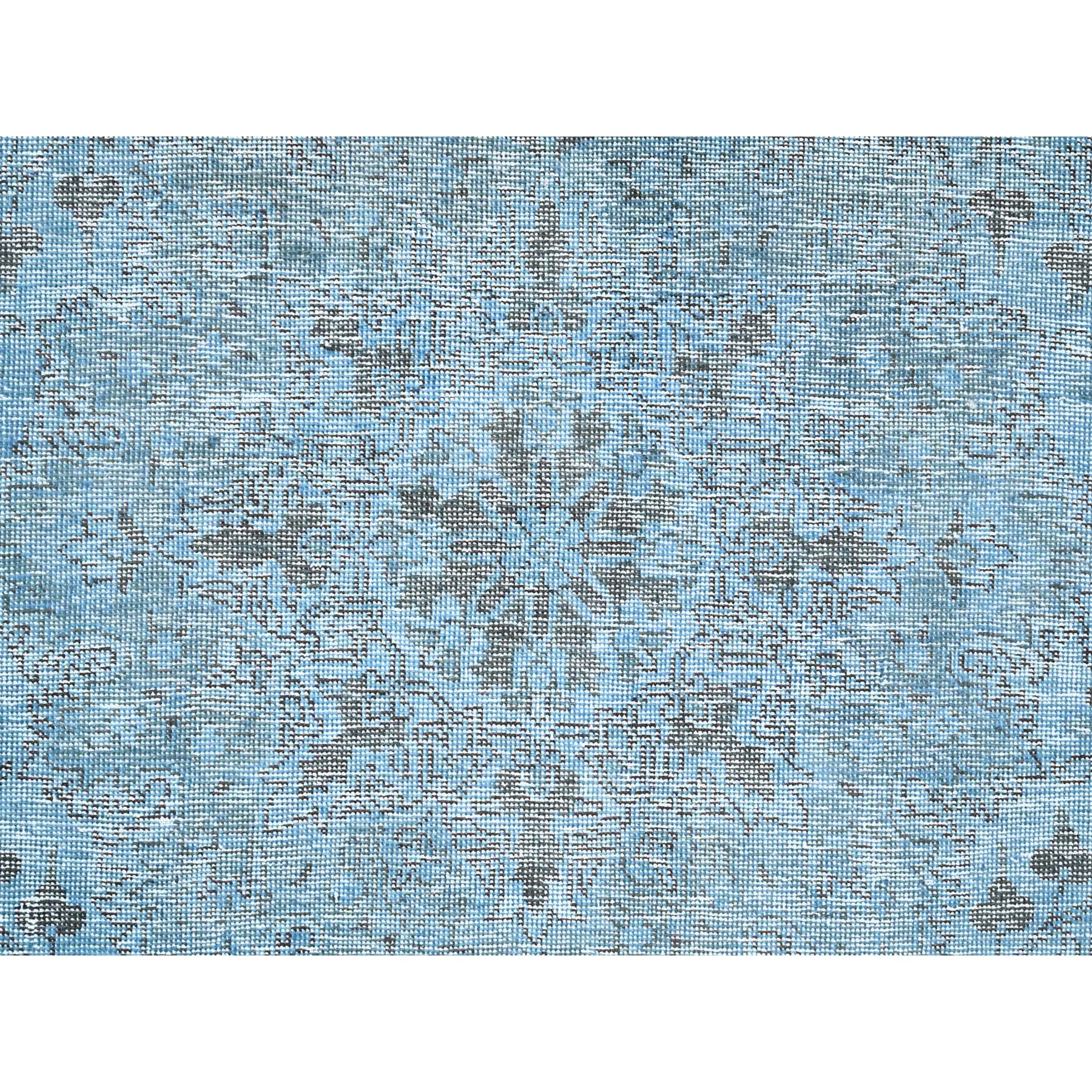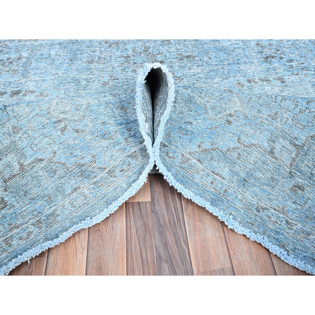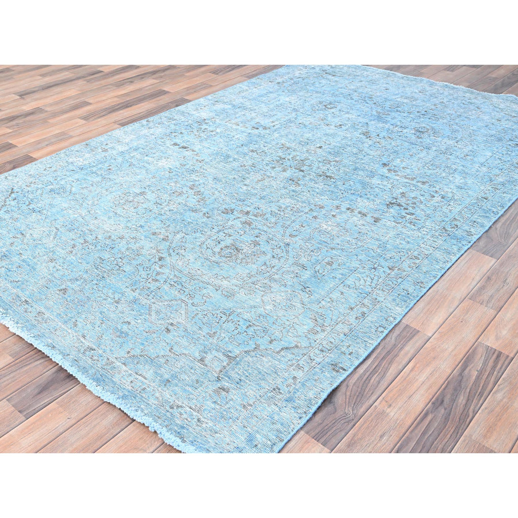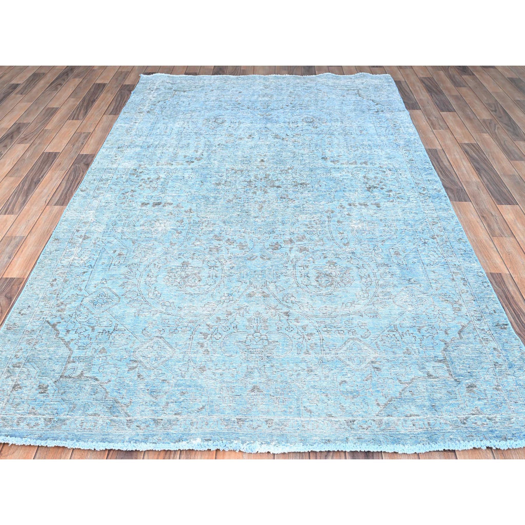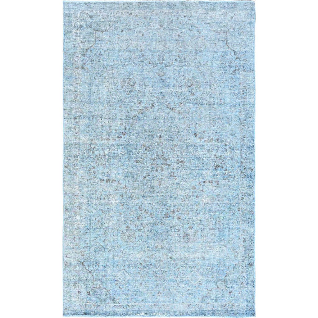 5'7"x9'2" Baby Blue, Vintage Persian Tabriz, Distressed, Cropped Thin, Overdyed, Worn Wool, Hand Knotted, Oriental Rug FWR512400