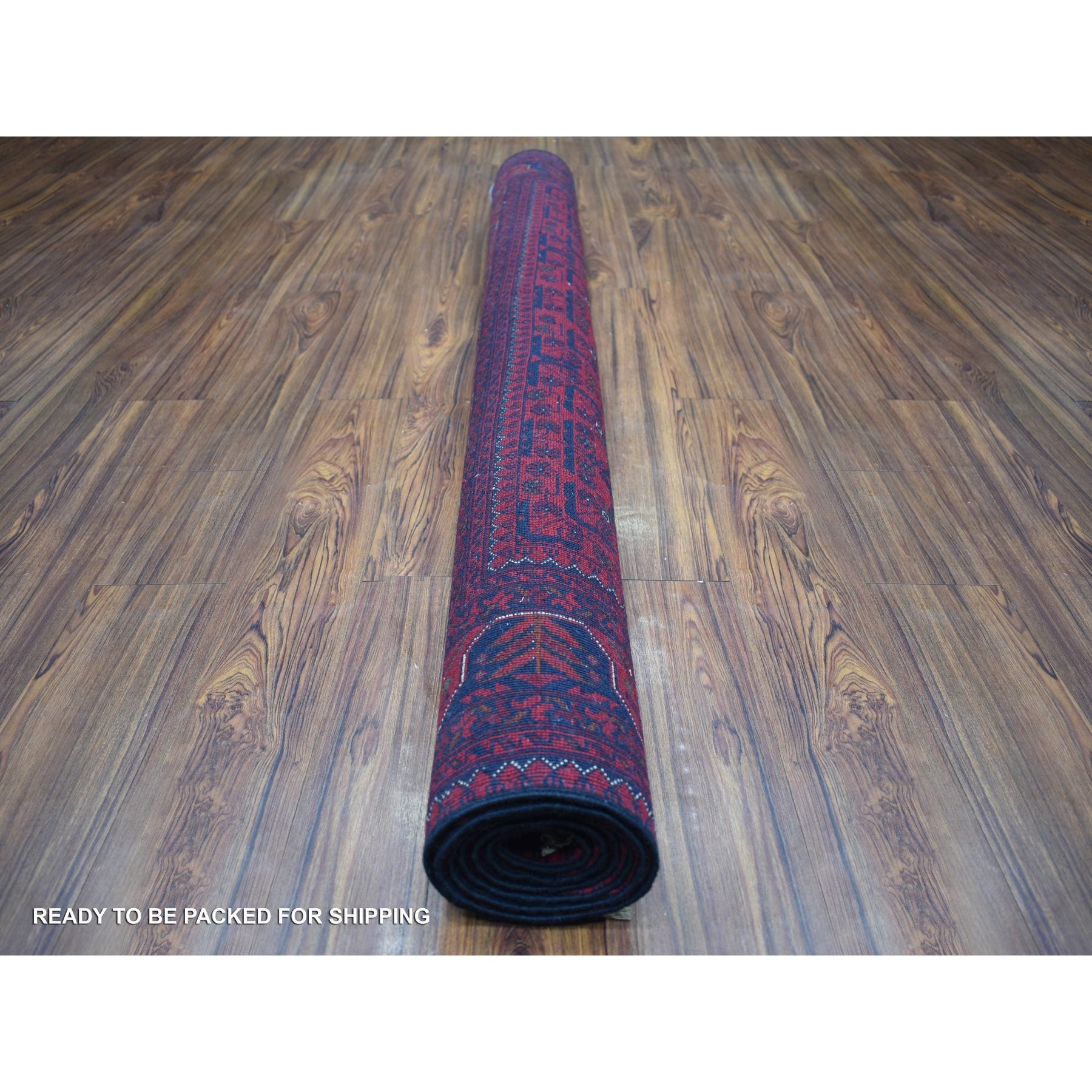 5'8"x7'5" Deep And Saturated Red With Touches Of Blue, Hand Knotted Afghan Khamyab With Geometric Design, Soft And Velvety Wool, Oriental Rug FWR430722