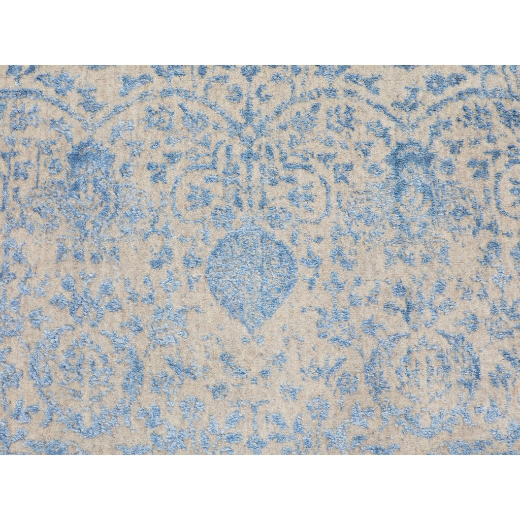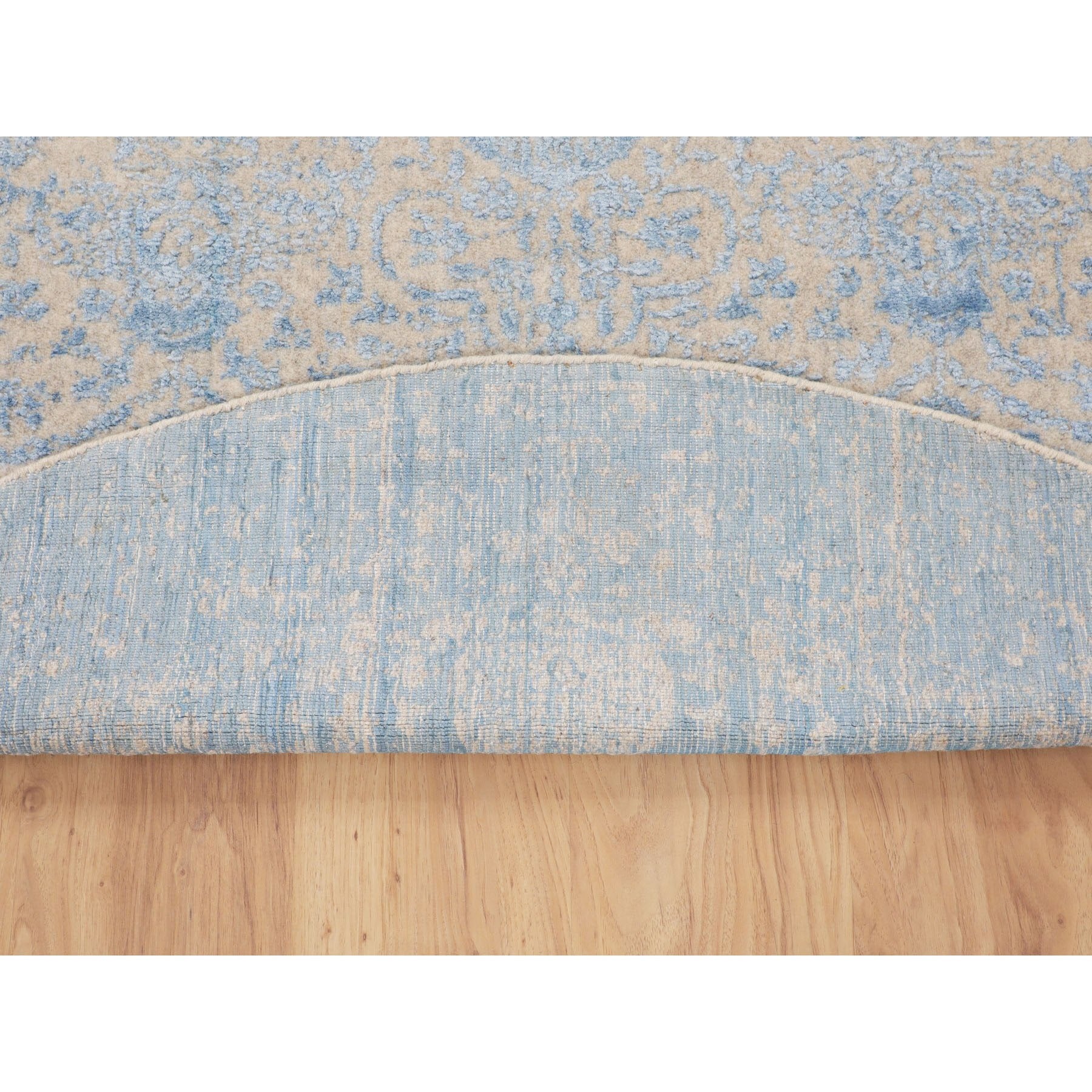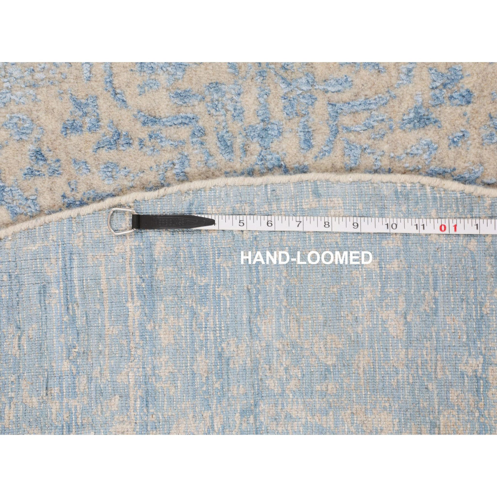 5'9"x5'9" Blue Jacquard Hand Loomed Wool And Art Silk Pomegranate Design Round Oriental Rug FWR348774