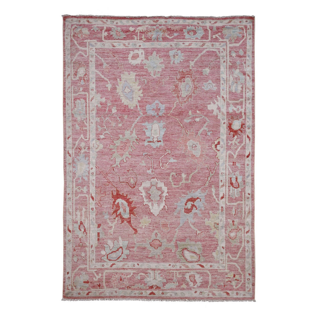 5'9"x8'9" Rouge Pink, Hand Knotted, Afghan Angora Oushak With Large Leaf Design, Veggie Dyes, 100% Wool, Oriental Rug FWR121194