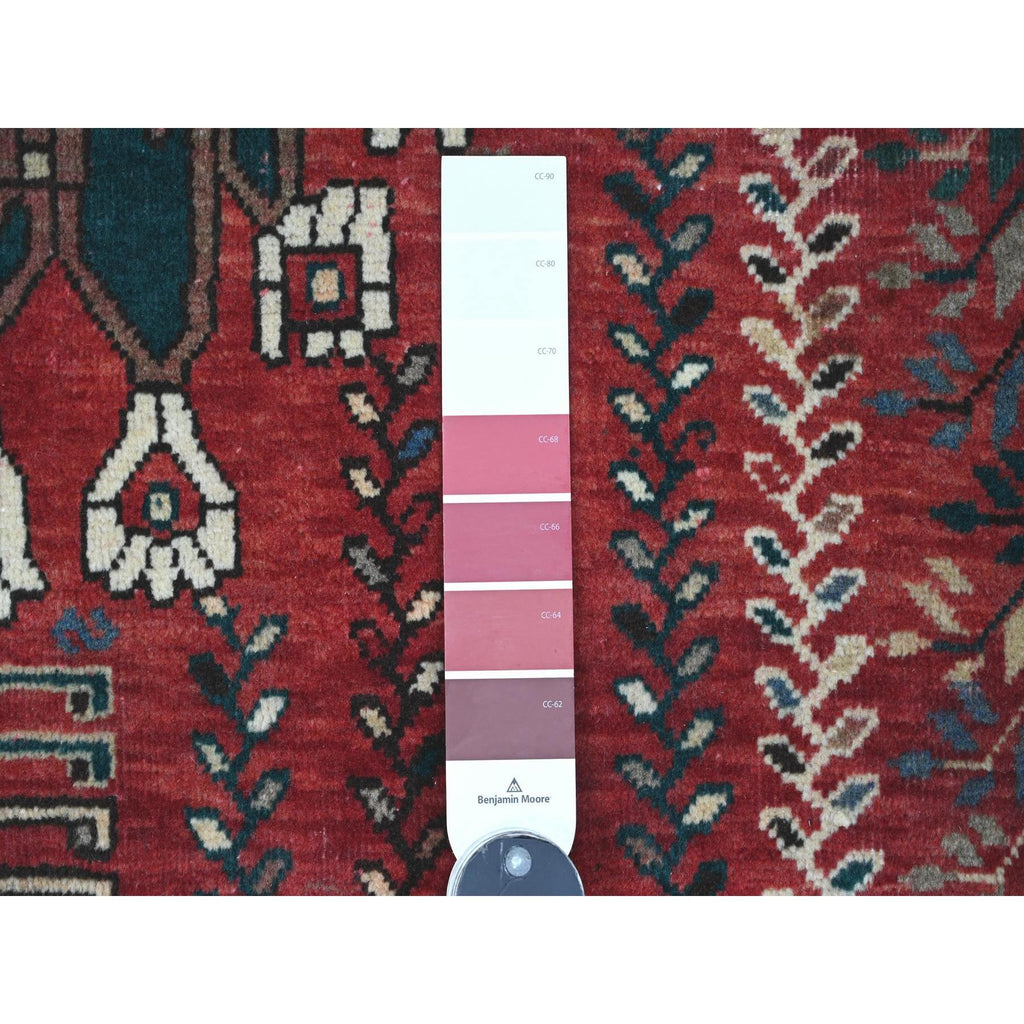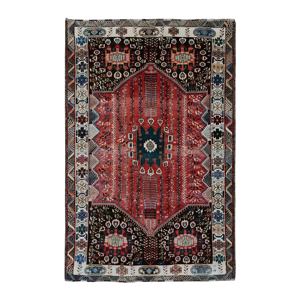 5'9"x9'1" Scarlet Red, Vintage Persian Shiraz With Tribal Design, Good Condition, Clean, Even Wear, Pure Wool, Hand Knotted, Oriental Rug FWR123906